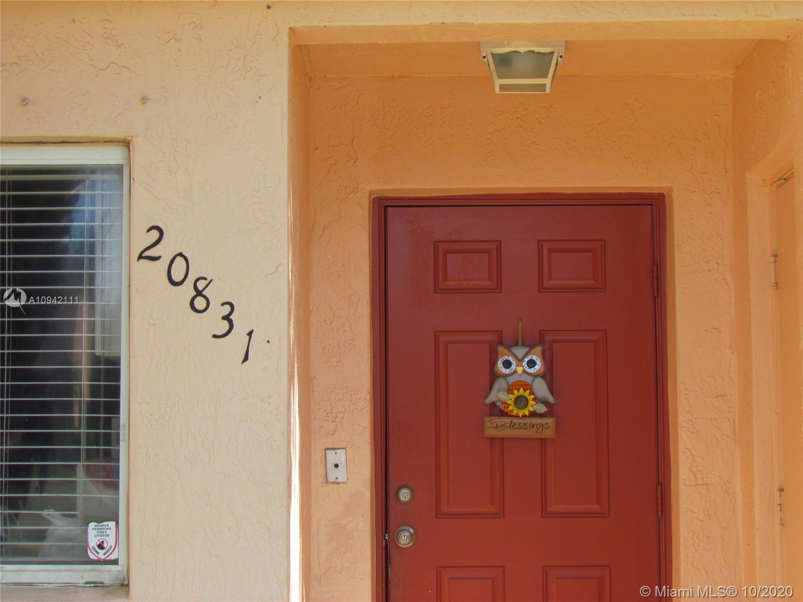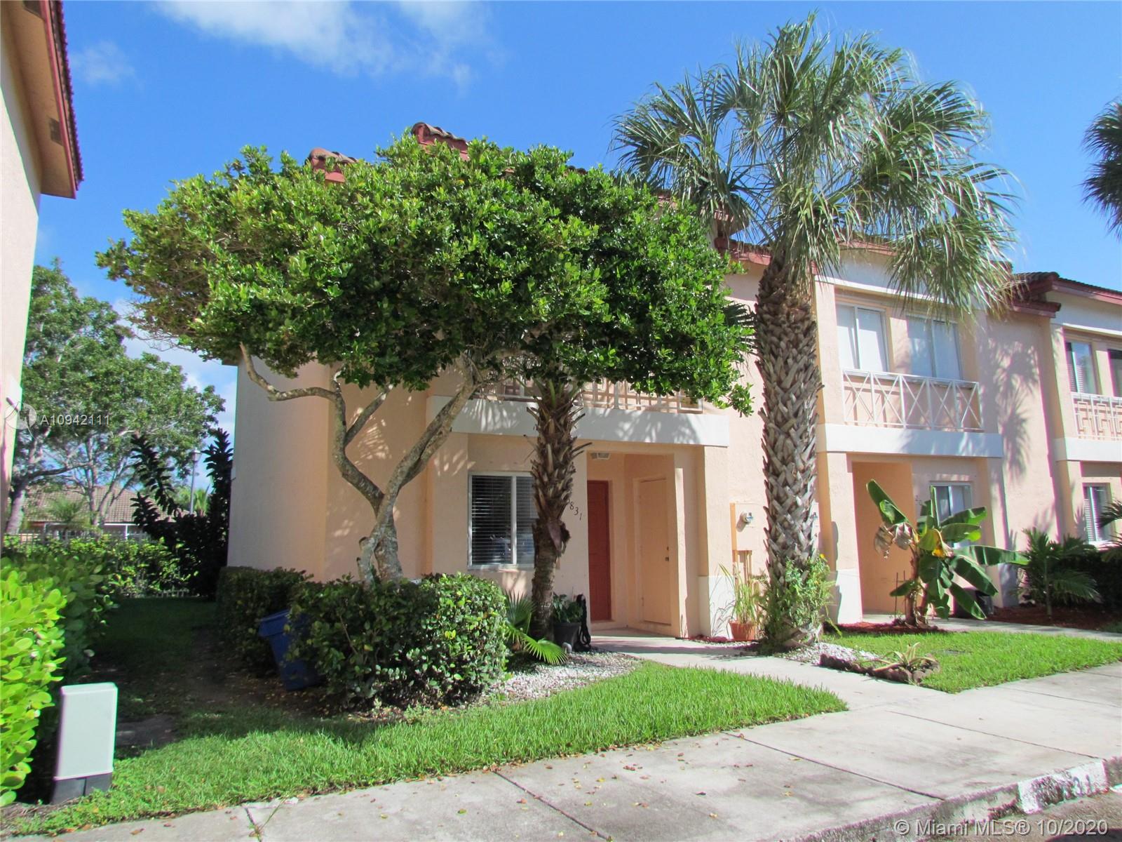 LOCATION, LOCATION, LOCATION. MOVE FAST on this Beautiful spacious 3 bedrooms/ 2.5 bath townhome in Malibu Bay. Lovely open concept and lots of natural light. Ceramic tile on first floor and laminate on 2nd floor. 2 parking spots right in front of the unit. This property is zoned for the best elementary schools in Pembroke Pines including West Broward high school. This is a corner unit with a screened patio and a private backyard with no neighbors. Live in a community with low HOA ($183 monthly). The community offers a pool, tennis courts, lakes, and guarded entrance. Community has lots of guest parking. This is a great investment property or a home for you and your family.