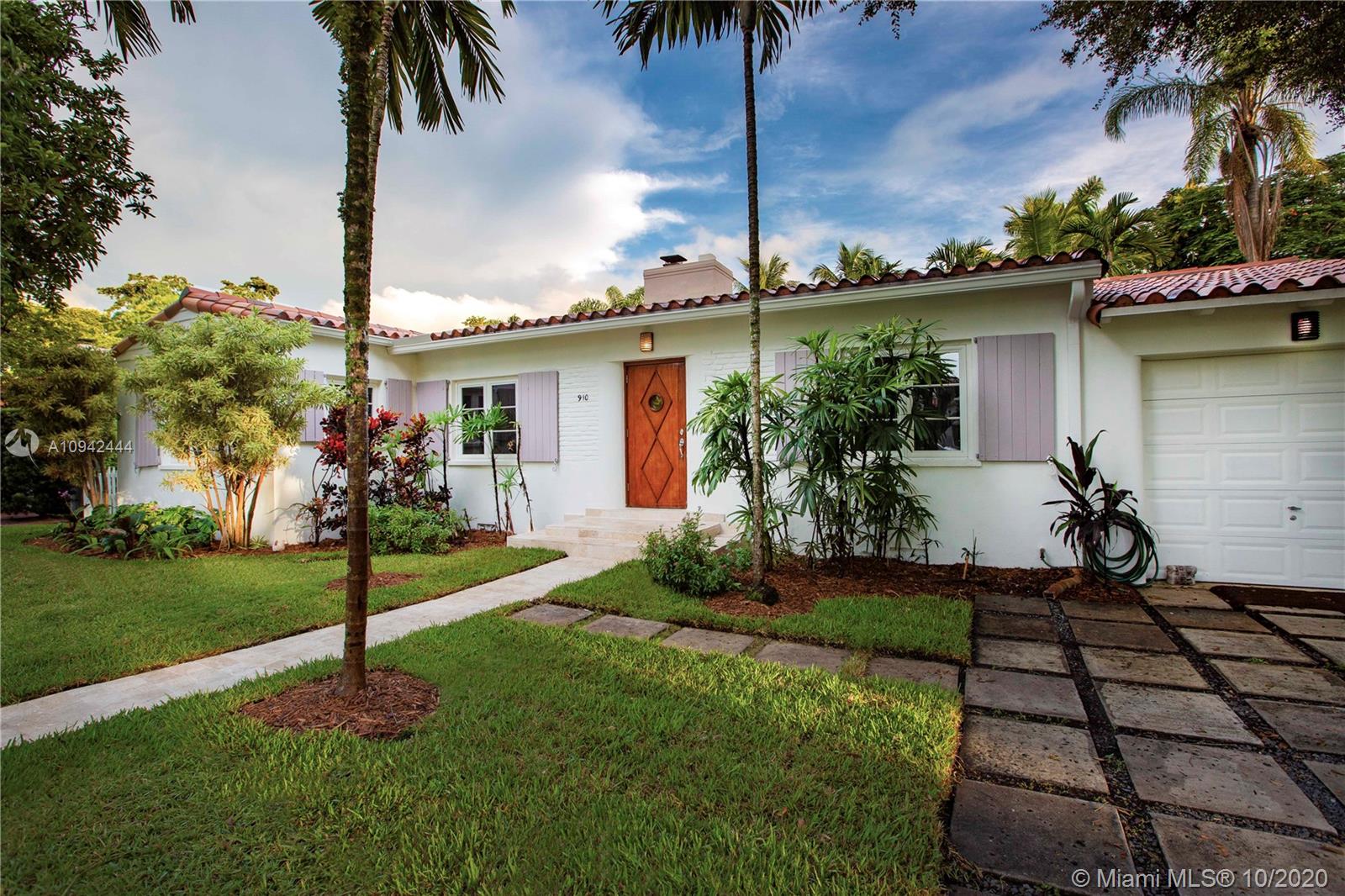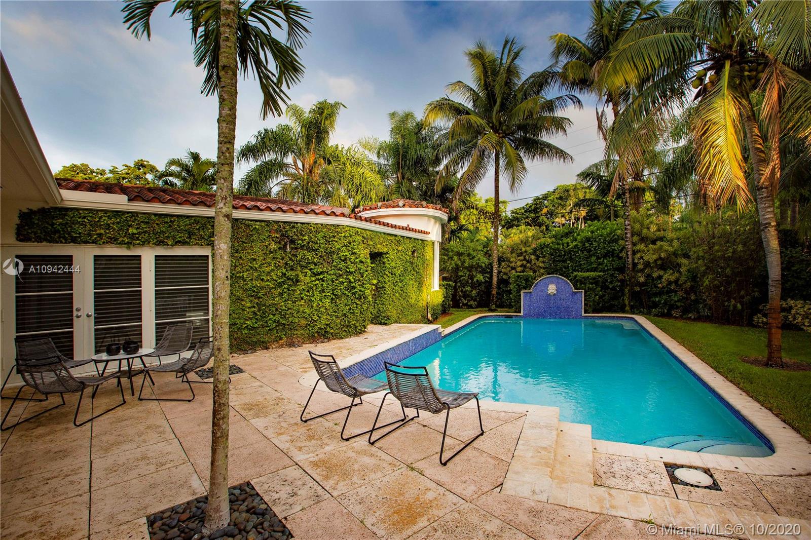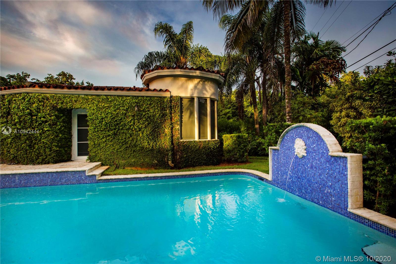 Spectacular deco home just blocks from the Venetian Pool. Fully updated 4-Bedroom 3-bath on a double lot with a large Master Bedroom that includes two walk in closets and a fabulous all marble master bath. Great living areas, hardwood floors throughout, separate dining and living room, working fireplace, and a large kitchen & family room that open via French doors to the beautifully landscaped yard, patio area and resort style pool with a tiled fountain. This is one of the most sought after areas off the Gables, don’t miss it.