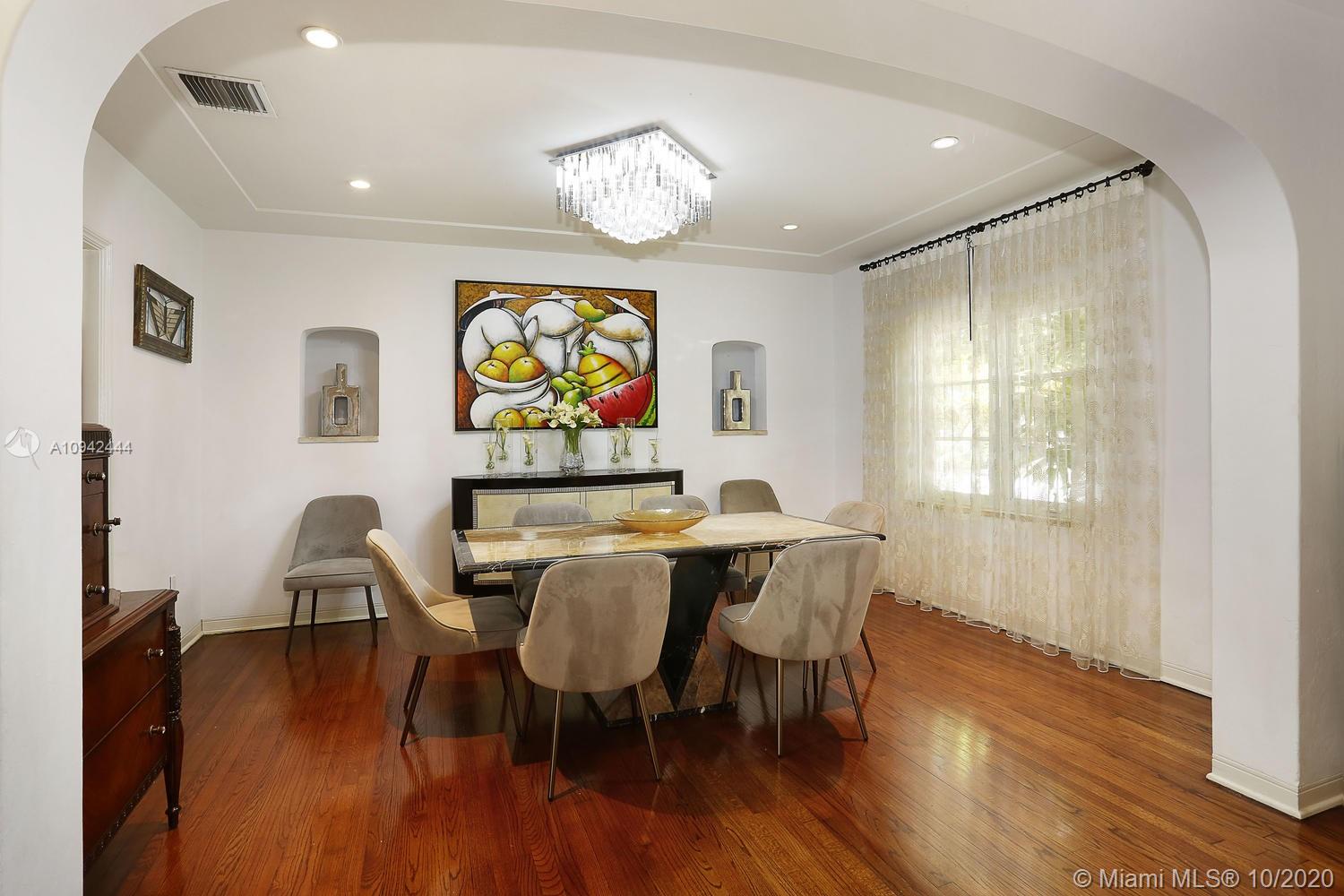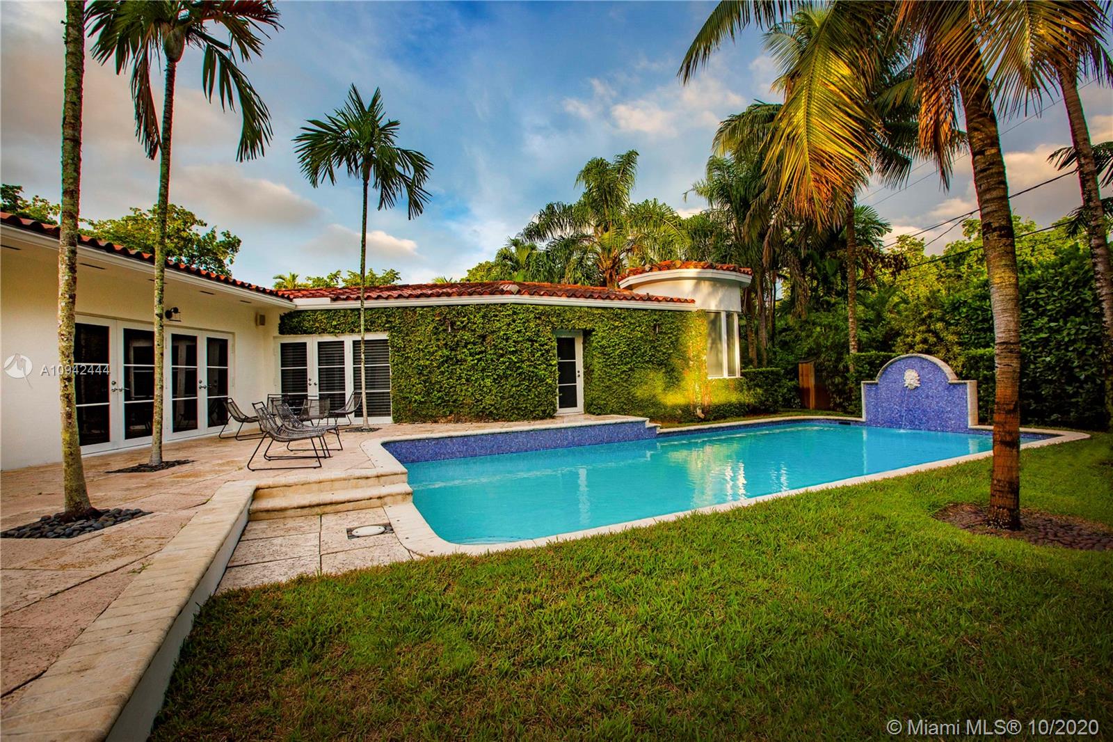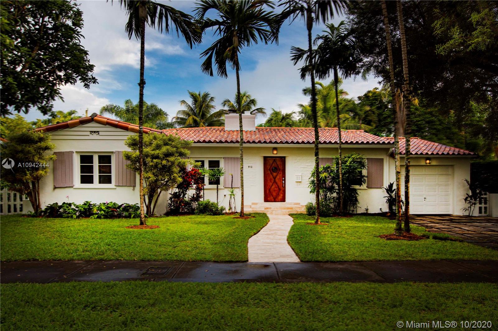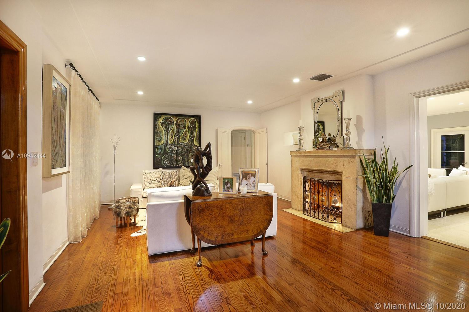 Spectacular deco home just blocks from the Venetian Pool. Fully updated 4-Bedroom 3-bath on a double lot with a large Master Bedroom that includes two walk in closets and a fabulous all marble master bath. Great living areas, hardwood floors throughout, separate dining and living room, working fireplace, and a large kitchen & family room that open via French doors to the beautifully landscaped yard, patio area and resort style pool with a tiled fountain. This is one of the most sought after areas off the Gables, don’t miss it.