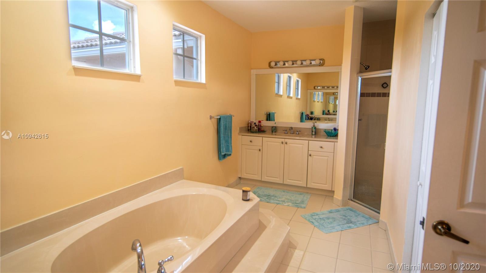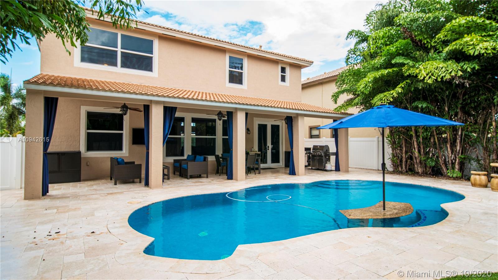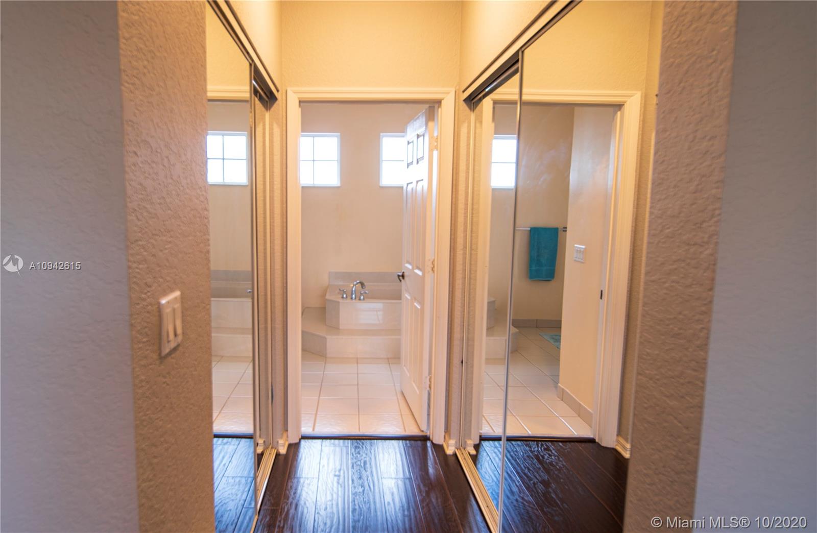 Beautiful corner home with water view on a cul de sac street. New kitchen and new downstairs bathroom. Wrought iron staircase stairs and 2nd floor wood floors. New 24x24 italian porcelain tile in 1st floor. Custom cabinets in laundry room. Air conditioned garage. All new appliances including new tankless water heater and new A/C unit. The pool has been remodeled. All new pool equipment including heater for pool. Travertine backyard with custom 500 sq foot terrace 900 sq artificial turf park. PVC fence whole property. Landscape over 45 palm trees between front and back. 8 car drive way. No house in front or back. Property will not last!