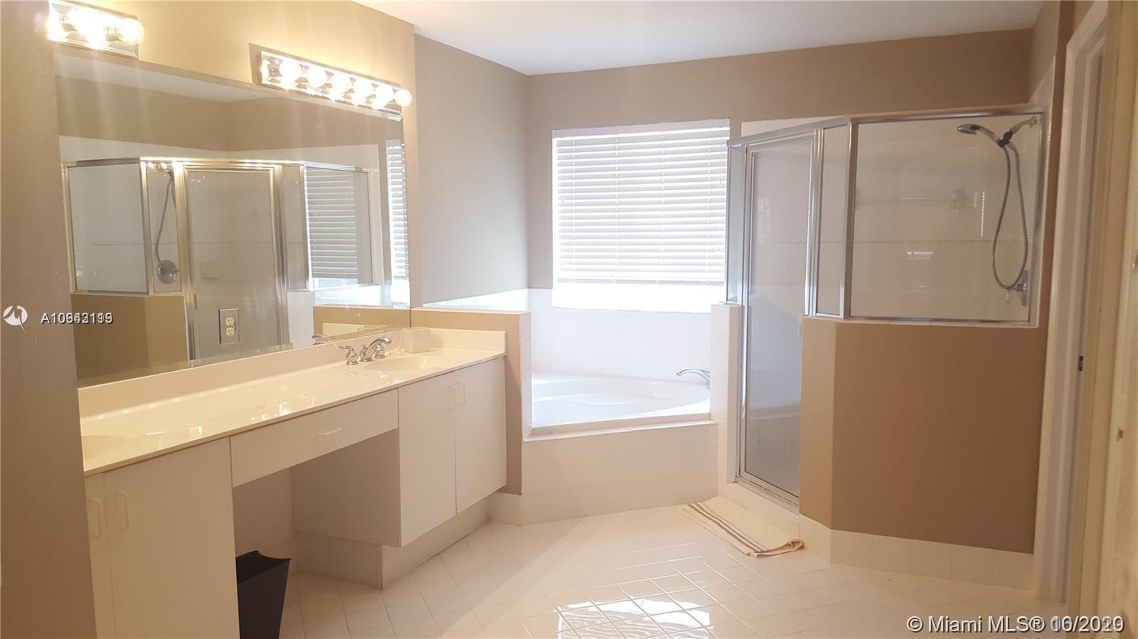 Beautiful 3/3 House in Martinique at Doral Isles, The best community in Doral. This house has a fantastic floor plan with 1 bedroom/1 full bathroom downstairs and 2 bedrooms/2 bathrooms in the second floor, it is in excellent conditions, ceramic first floor, laminate second floor, new exterior paint, new fence, separate laundry area. Doral Isles Club house has amazing amenities like pools, Jacuzzi, gym, aerobics, yoga, basketball. tennis courts, soccer field, walkways are excellent for running