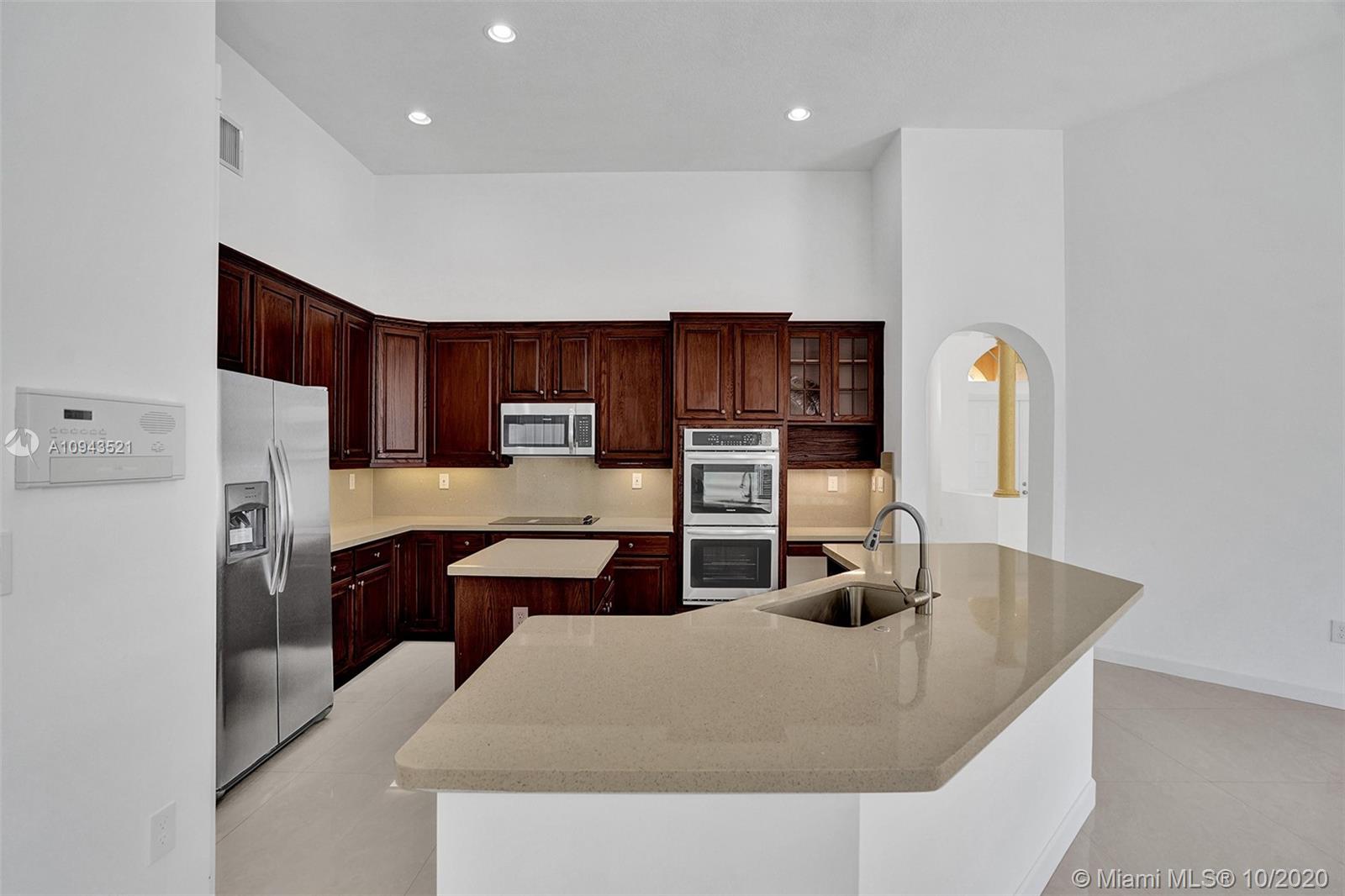MAGNIFICENT "LENOX" MODEL LOADED WITH UPGRADES; CONTEMPORARY HOME FEATURING 4 BEDROOMS + DEN & 3 BATHS * FULLY UPGRADED CHEF'S KITCHEN W/ WOOD CABINETRY, GORGEOUS GRANITE COUNTERTOPS, BRAND NEW SS WHIRLPOOL APPLIANCES INCLUDING DOUBLE OVEN AND REFRIGERATOR, EXTENDED PATIO OVERLOOKING BEAUTIFUL INVITING POOL, PERFECT AREA TO ENTERTAIN YOUR FRIENDS AND FAMILY BEUTIFUL PORCELAIN TILE FLOORS THROUGHOUT HOUSE AND WOOD LOOK FLOORS IN BEDROOMS & OFFICE , SPECTACULAR CHANDELIERS IN FOYER, DINING AND MASTER BATH NEWER HIGH EFFICIENT A/C UNITS ** AND MANY MORE UPGRADES... "EVERYTHING YOU NEED" GATED COMMUNITY W/ AMAZING RECREATION CENTER * HOA INCL CABLE, INTERNET, ALARM & MORE. PICTURES DO NOT SHOW THE MAGNIFICENT HOUSE THAT IT IS.