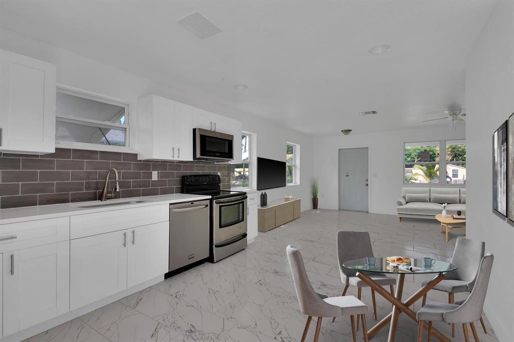 Welcome home to an exceptional opportunity with this totally renovated home with NO HOA. This spacious floorplan features a living room, dining area and a fenced yard. Chef's kitchen features classic white cabinets, granite countertops, a tiled backsplash, high hat lighting and stainless-steel appliances. Relax on the patio overlooking the large, fenced yard. Neutral tile throughout (no carpet!), NEW ROOF, NEW A/C, NEW ELECTRICAL PANEL, ALL new windows and doors, and a neutral grey and white color scheme are just a few of the highlights in this totally updated home. Located close to beaches, the marina, the intracoastal, shopping, dining, entertainment, downtown West Palm Beach, and hospitals. SELLER WILL PAY 3% FOR BUYERS CLOSING COSTS