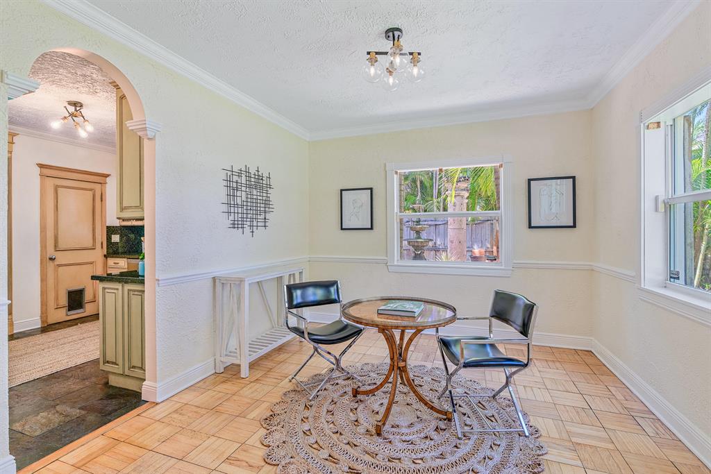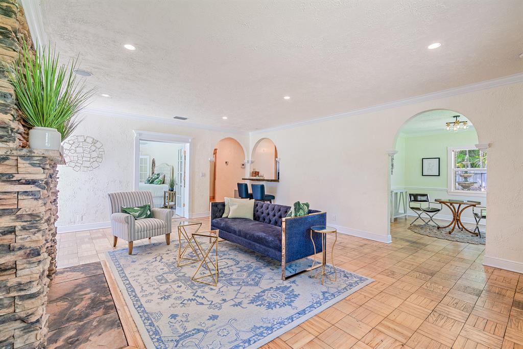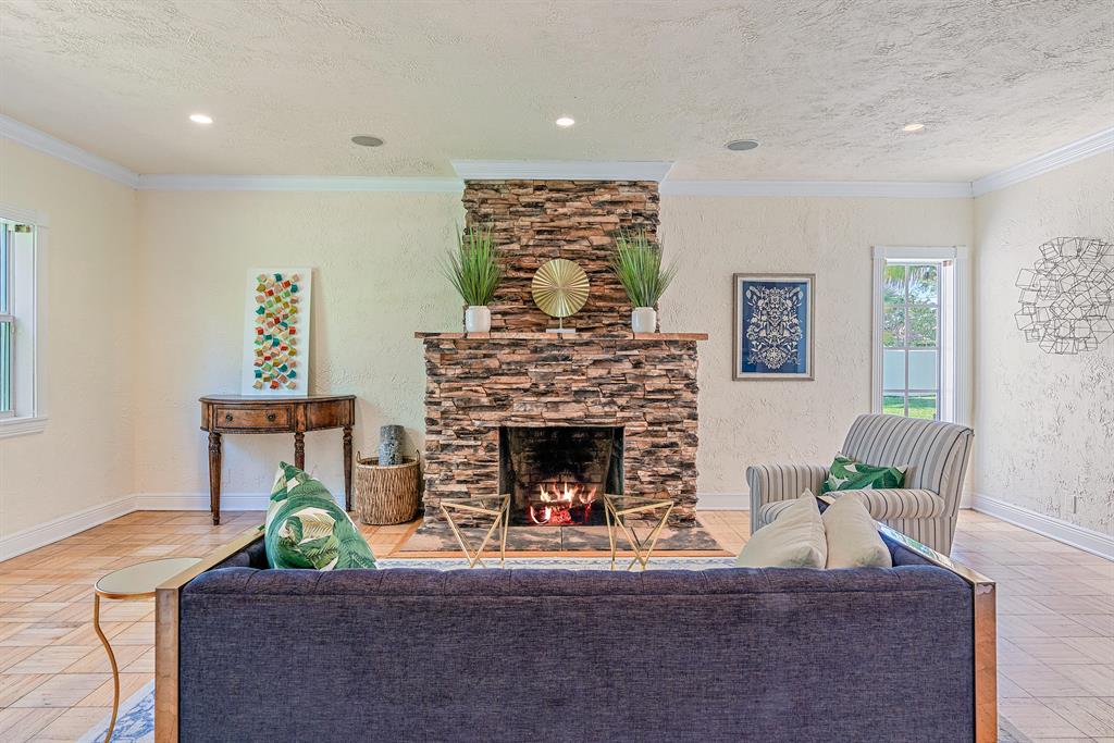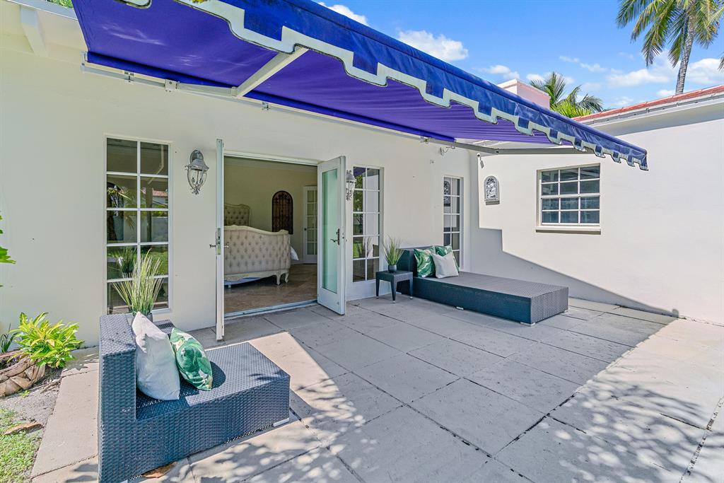 Presenting Rancho Guiana: located on one of the most desirable streets in the 'South of Southern' district with wide tree lined streets and just steps from the intracoastal. Situated on a massive corner lot just shy of 12,000 square feet, this mid- century home embodies the best of the outdoor-indoor lifestyle. Double doors from the master lead out to a covered patio overlooking generous green space with ample room for a pool. On the west side of the property is paved Chicago brick with the fountain as a focal point creating the most peaceful garden.