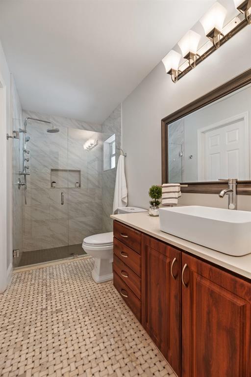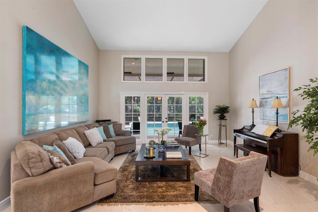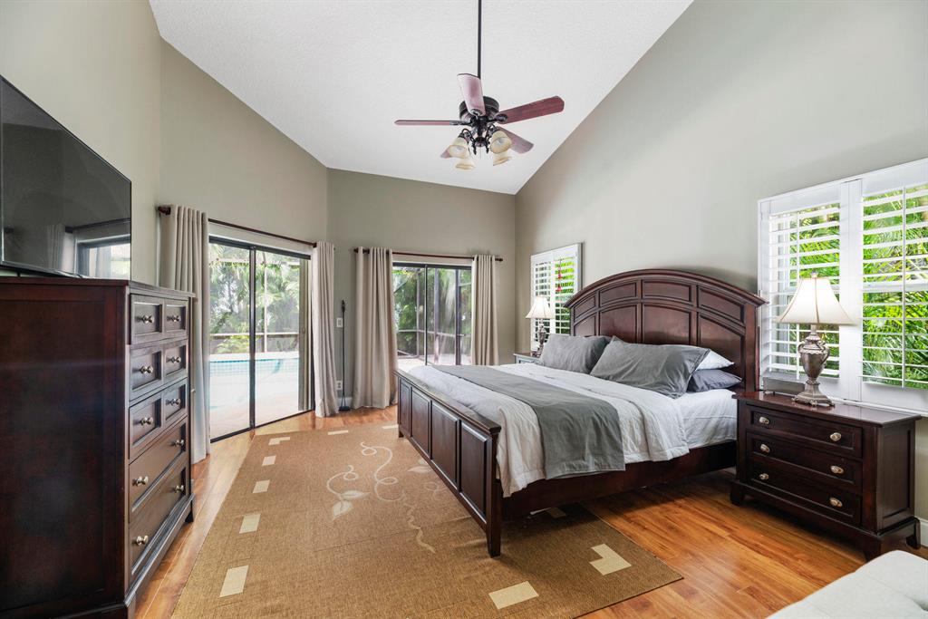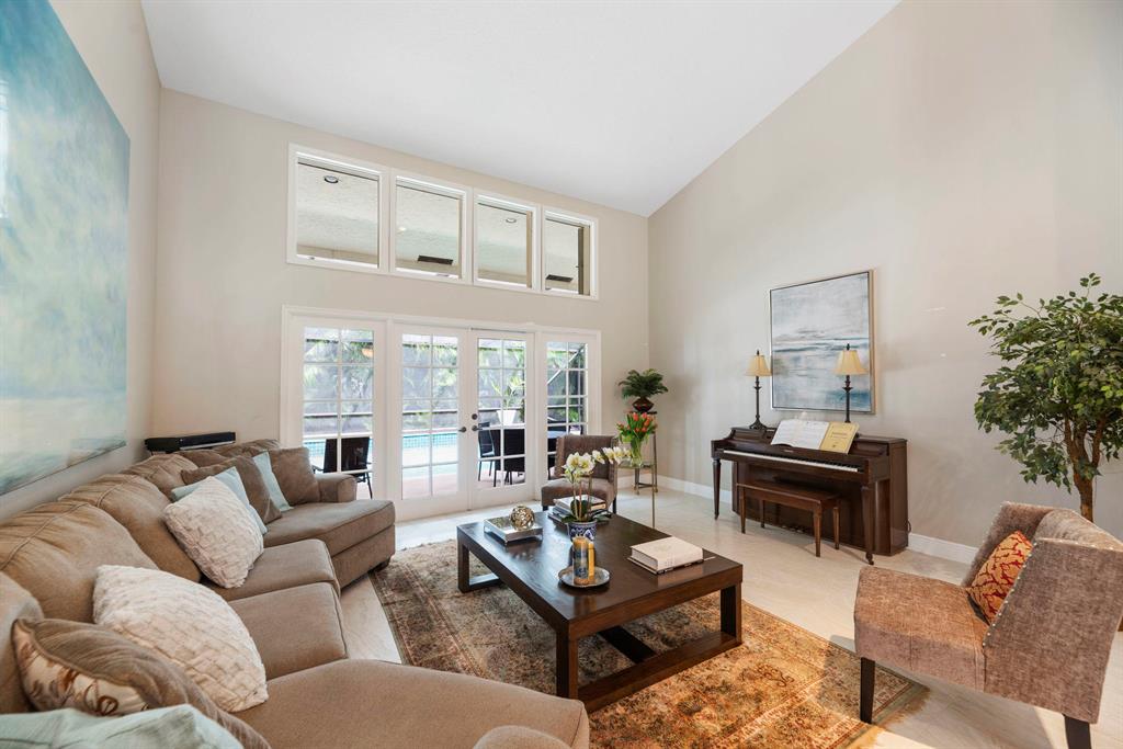This 4 bedroom 3 bath pool home is beautiful! It sits on more than 1/4 of an acre in the Cloisters - a highly desirable gated community in Central Boca. With over 3000 sq feet on ONE level, this split floor plan home is bright, tastefully updated & meticulously landscaped. It has the best of all worlds - High ceilings, screened in patio, impact windows and shutters, gourmet kitchen with granite countertops and stainless appliances, updated bathrooms, a huge family room with French doors, a large master suite overlooking the pool, lots of storage, solar power (reducing electric bill), tile floors, recessed lighting, breakfast bar that seats 4 & a fireplace. In the Verde School district too! A/C 2017, Water Heater 2015, and Roof 2005- Walk to shop and dinner -See the 3D virtual walk through!