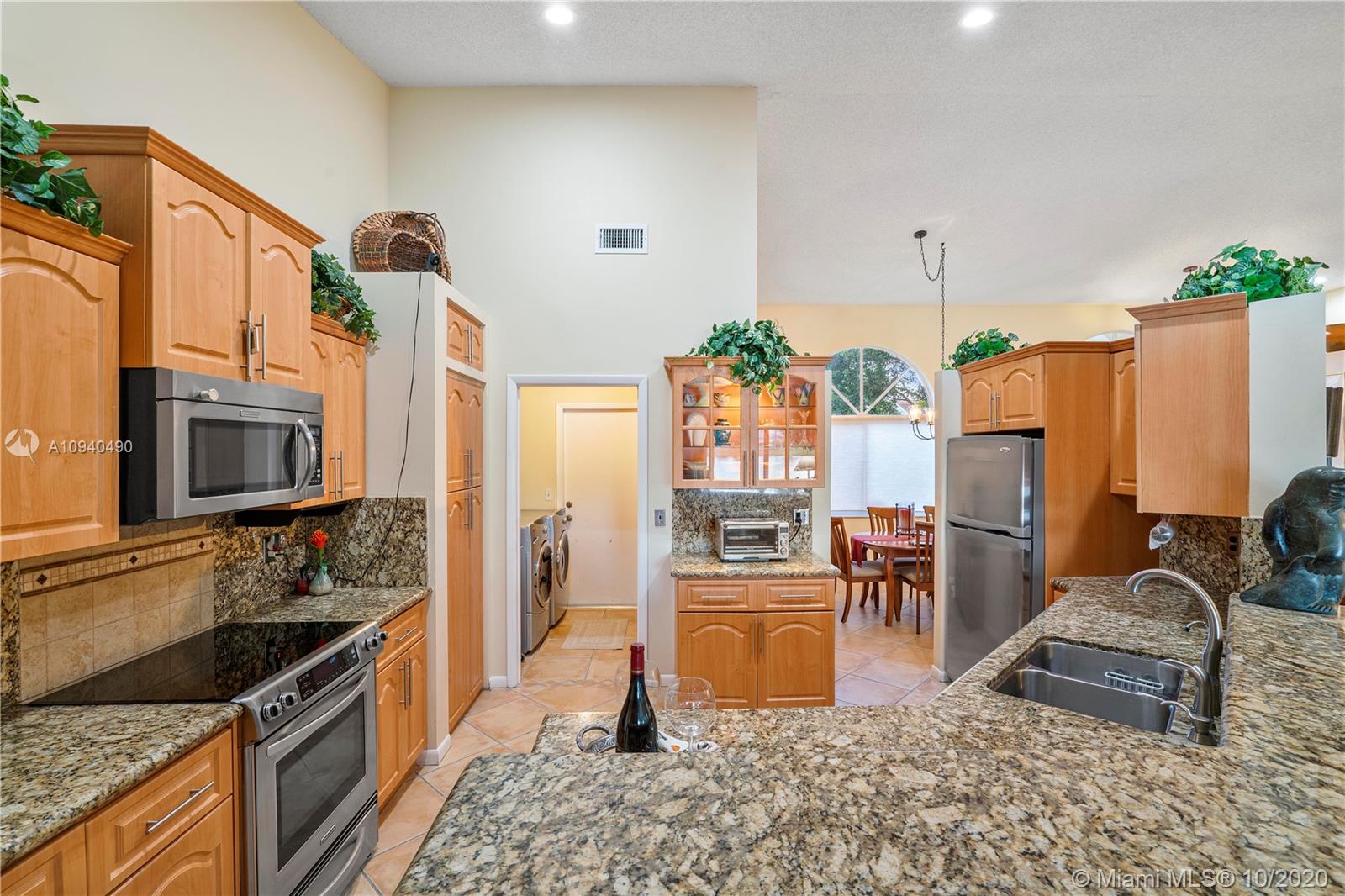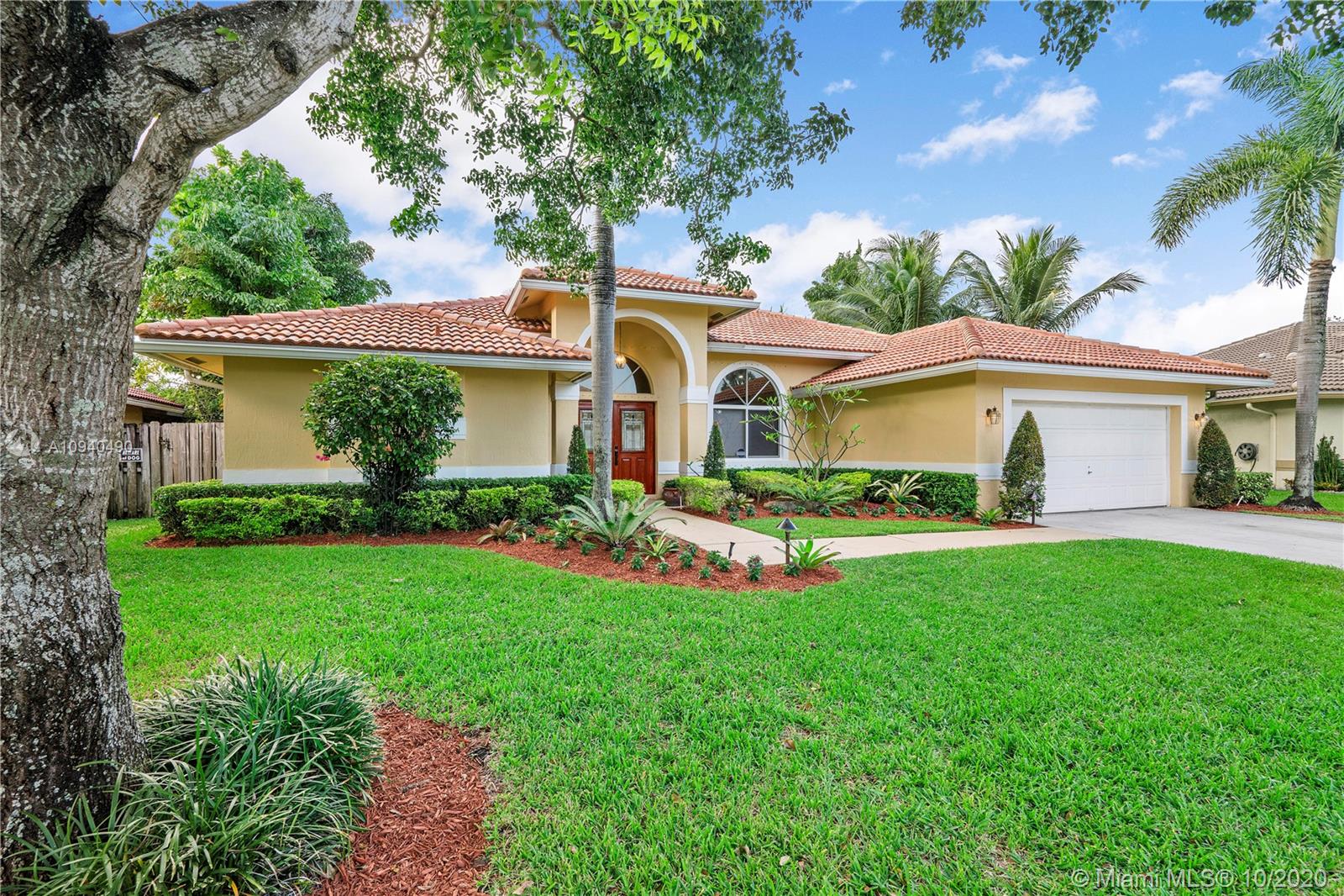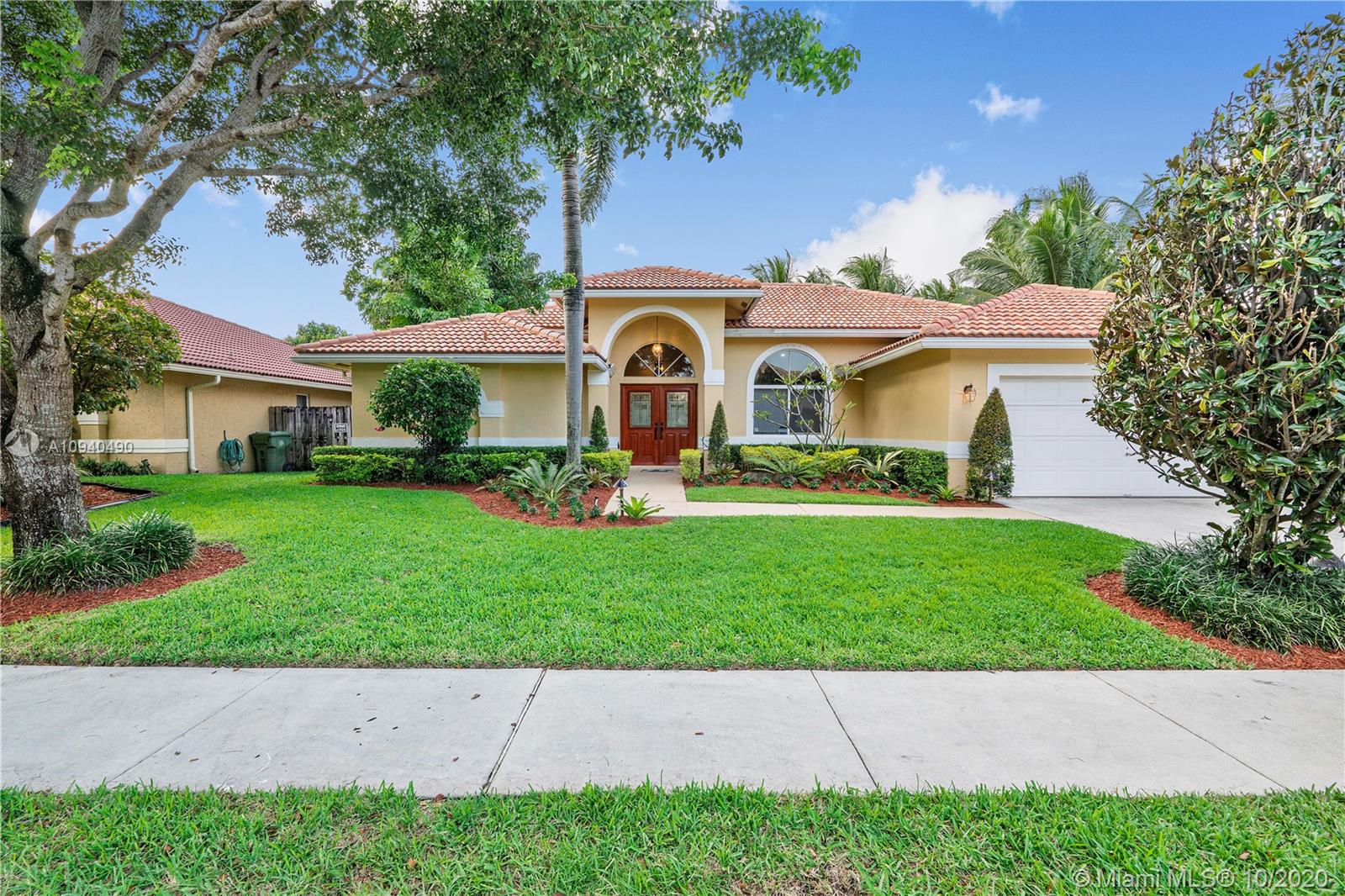 Tropical Oasis! 3 Bed / 2 Bath Pool Home W/2 Car Garage On A Waterfront Lot Located In Prestigious Emerald Lake Estates. NEW Roof 2016. Open Layout Has Vaulted Ceilings. Living, Dining, And Family Rooms. Diagonal Tile. Custom Kitchen Features Granite Countertops & Backsplash, SS Appliances, Recessed Lighting, Plenty Of Cabinets, Breakfast Bar, & Pantry. Master Suite Overlooks The Pool/Lake & Has His & Her Walk-In Closets. Large Master Bath With Dual Wood Vanities, Custom Mirrors, Frameless Rain Shower & Roman Tub. Hall Bath Has Custom Wood Vanity W/Granite Countertop, Upgraded Lighting & Shower. GE Front Loading Washer & Dryer. Private Backyard Has Screened Porch, Open Patio With Heated Salt Water Pool W/Auto Cleaner, Travertine Pavers, Avocado Tree & Tropical Landscaping. Must See!