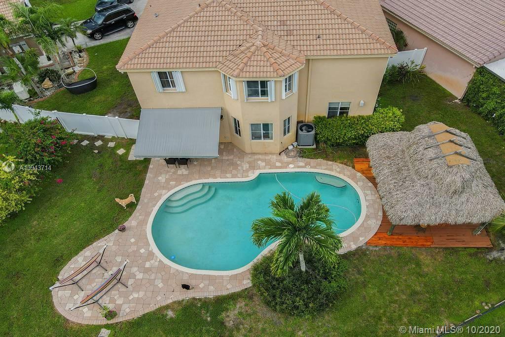 Magnificent 4 bedroom 2.5 bath **POOL HOME ON THE WATER** is situated on a pie lot (10,823 SF) in The Village of Harmony Lakes in Davie off of Hiatus Road! All 4 bedrooms and 2 bathrooms on second floor with laminate floors and first floor has tile with 1/2 bathroom! Eat in kitchen very open with natural light, A/C replaced in 2017, inside laundry room! Amazing backyard with a freeform pool, chickee hut with electric, fenced yard with a tropical oasis and beautiful views of water in your private backyard- perfect for outside living and entertaining! Located in a top school district, easy access to I-595! Guarded highly sought out community! Community offers pool, tennis courts, BBQ & pavilion, and racquet ball! Only available property!