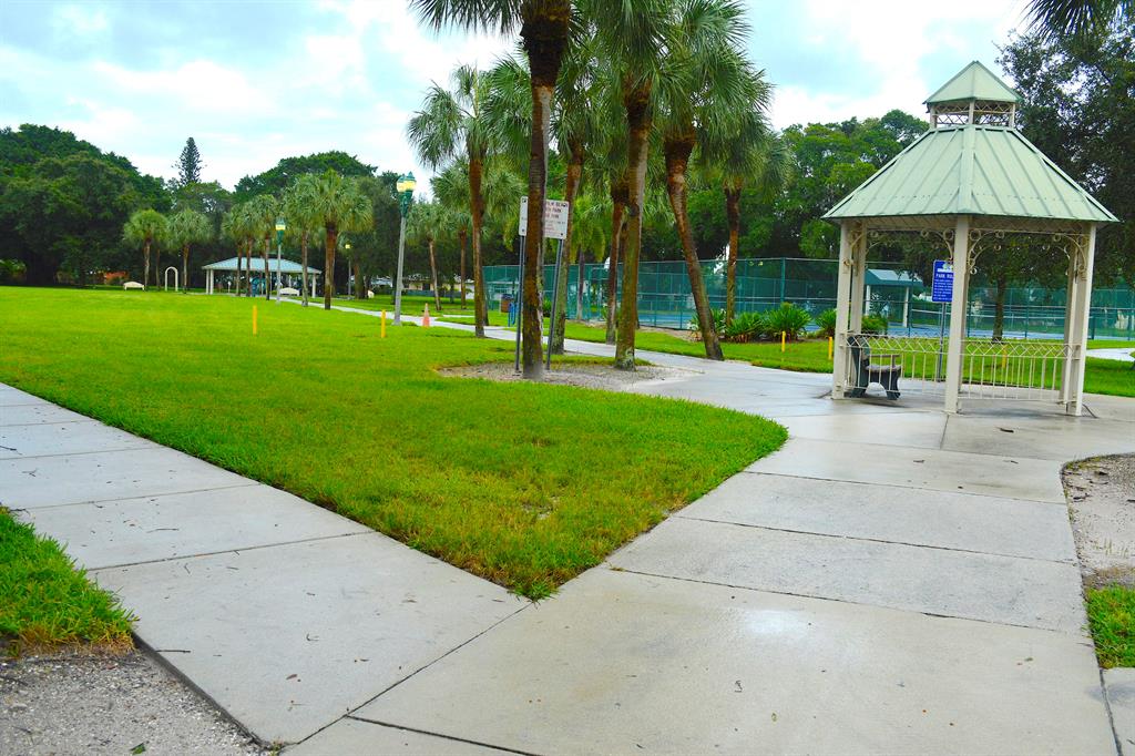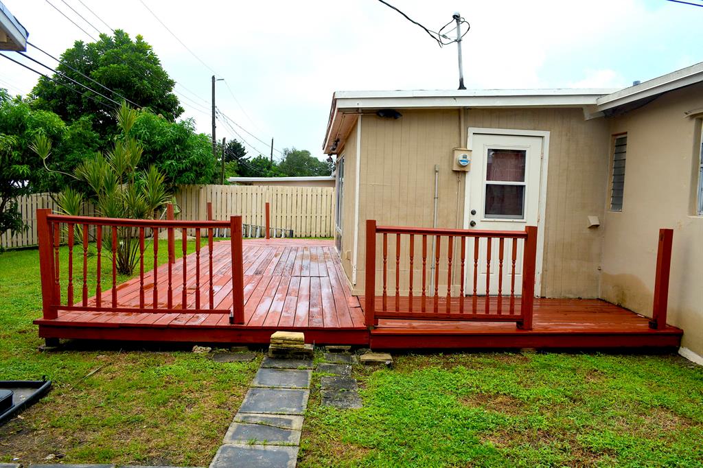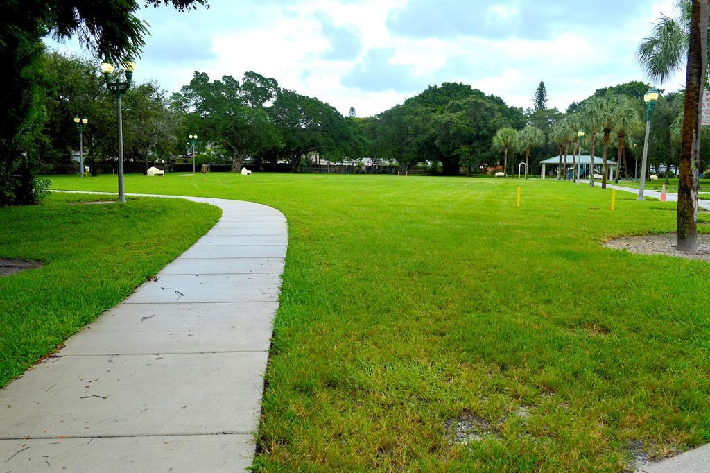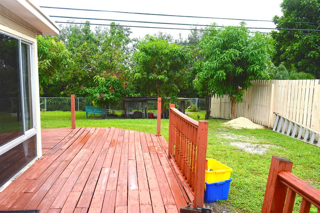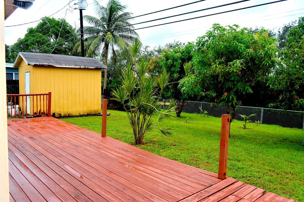 Well kept home in neighborhood with no HOA. Home is located on lush tree lined street across from a beautiful park. Large backyard with canal in the back, fruit trees and wrap-around deck. Sprinkler system pump water from the canal. Great location. Close to shopping, bus, train, Restaurants etc. Property is approximately 2 miles from the waterfront and Downtown. Also close to I-95 and Turnpike.