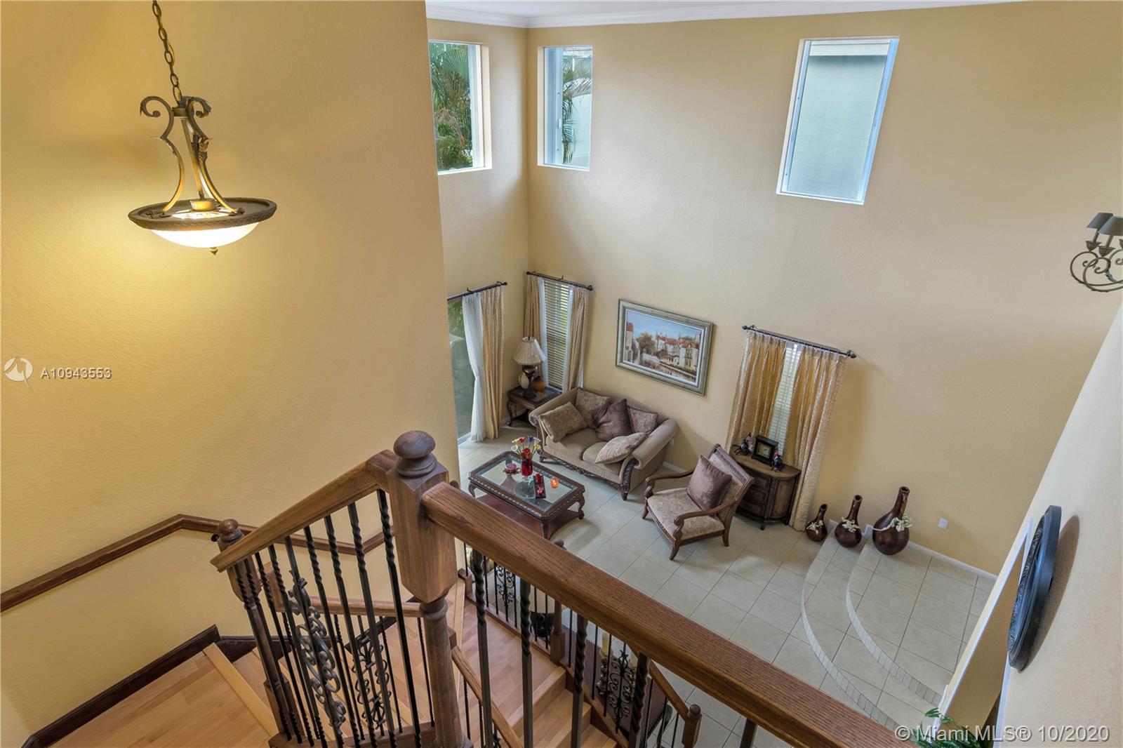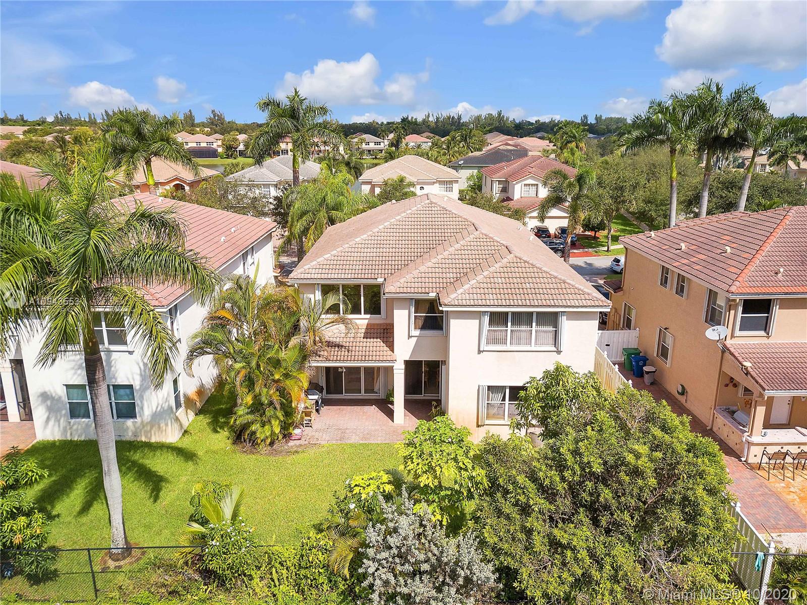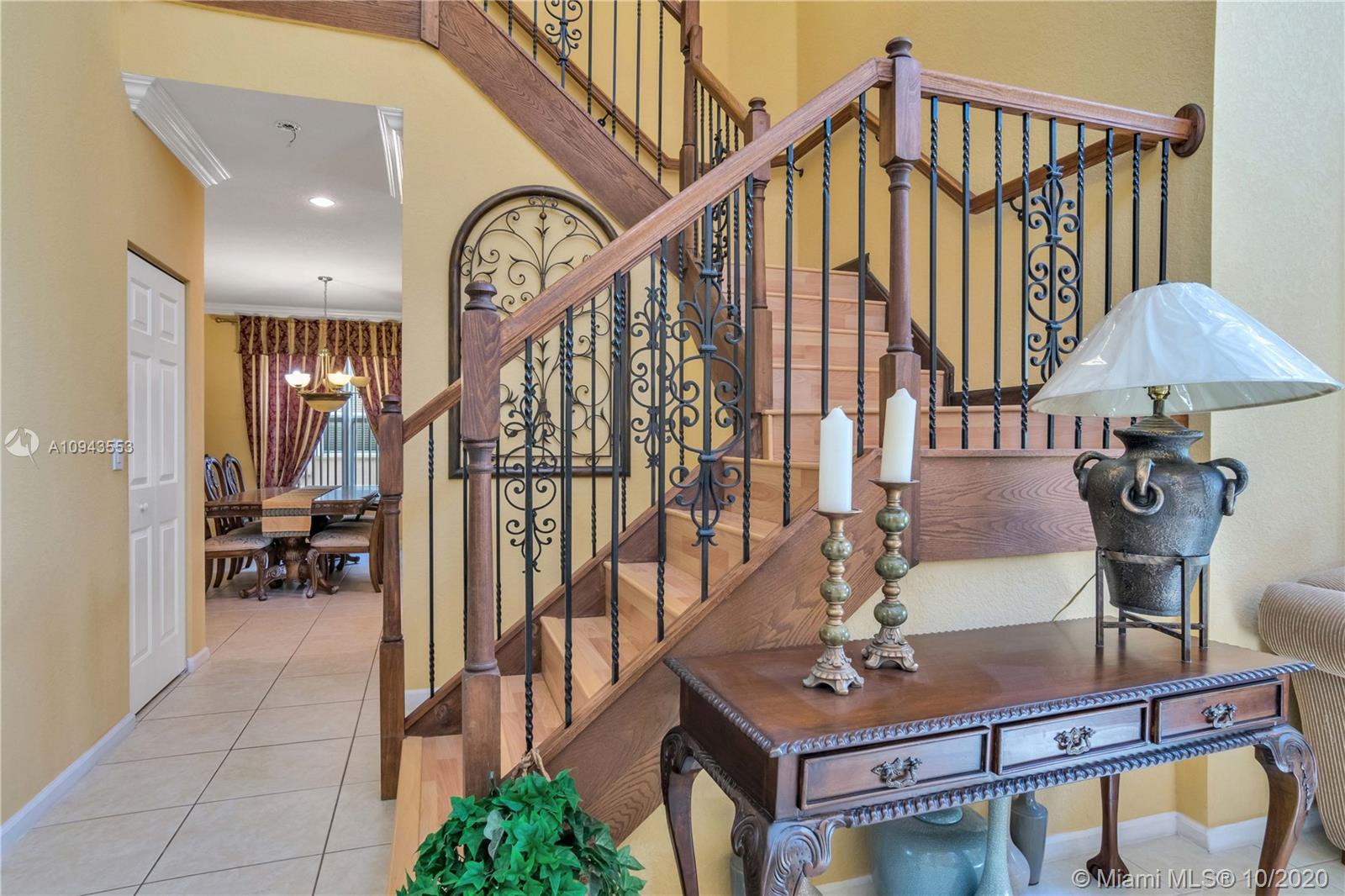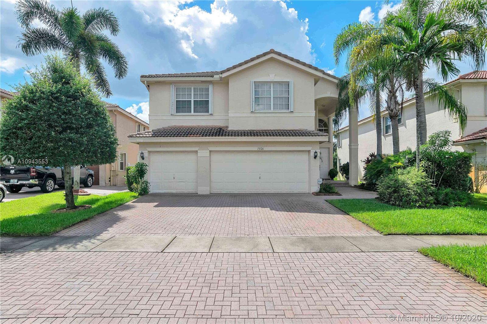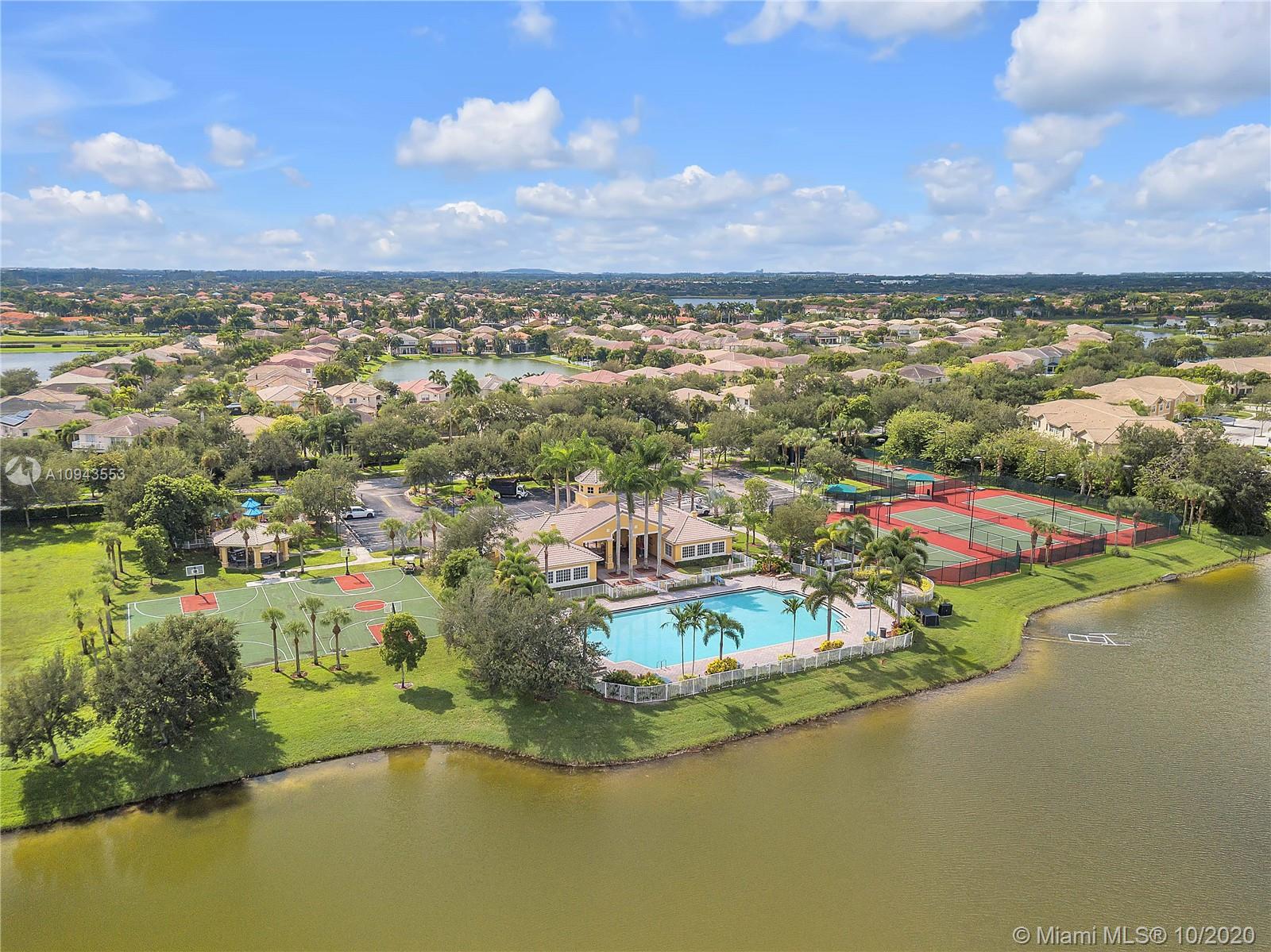 Superb 2004 waterfront 5 bedroom, 3 bath home in manned-gated resort community of Silver Falls. Upgrades throughout including gorgeous wood, wrought iron style stairs, gourmet eat-in kitchen w/ top wood cabinetry, corian counters, stainless steel appliances, breakfast bar. Huge master suite w/ spacious sitting area ready for double duty as extra den/office/refuge. No carpet, newer A/C, accordion shutters. Covered patio overlooks fenced, tropically landscaped yard, canal, open space behind. Resort style club house w/ pool, fitness center, tennis, basketball courts, party room for your celebrations. Great location for easy commutes in every direction. Close to highways, shopping, midway between Miami and Ft. Lauderdale airports. Full bedroom and bath down stairs currently configured as den.