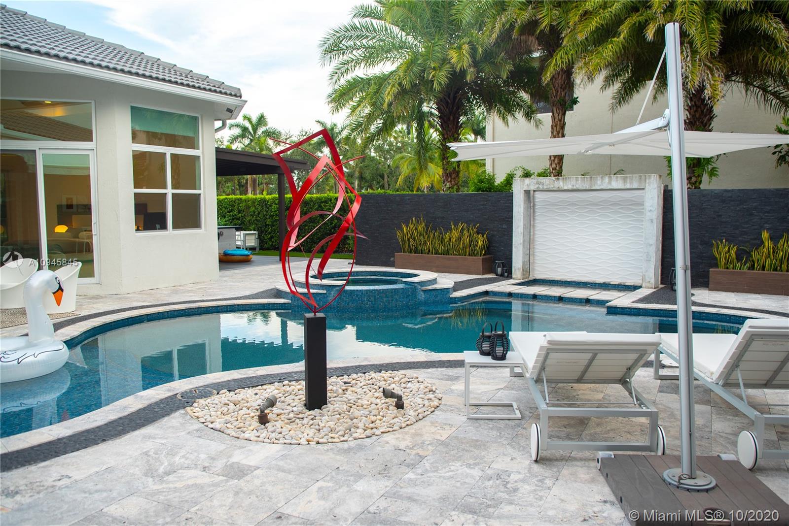 Luxury courtyard home with lake views located in Weston Hills Country Club. Completely renovated with every detail in mind, this home offers that secluded and tranquil retreat both indoors and outdoors that buyers crave today. Stunning curb appeal with an ample entrance that leads to a spacious living room, boasting an open floor plan that connects most common areas.The main house features 4 beds,4 1/2 baths and a huge loft. Guest house offers 1 bed/1 bath and wet bar. State of the art Kitchen with custom Italian cabinetry, quartz countertops, Miele appliances and a large kitchen island. Masterfully designed outdoor space with heated saltwater pool and fully equipped outdoor kitchen,ready for entertaining overlooking the lake.Impact windows&doors. A must see resort-style home in Weston.