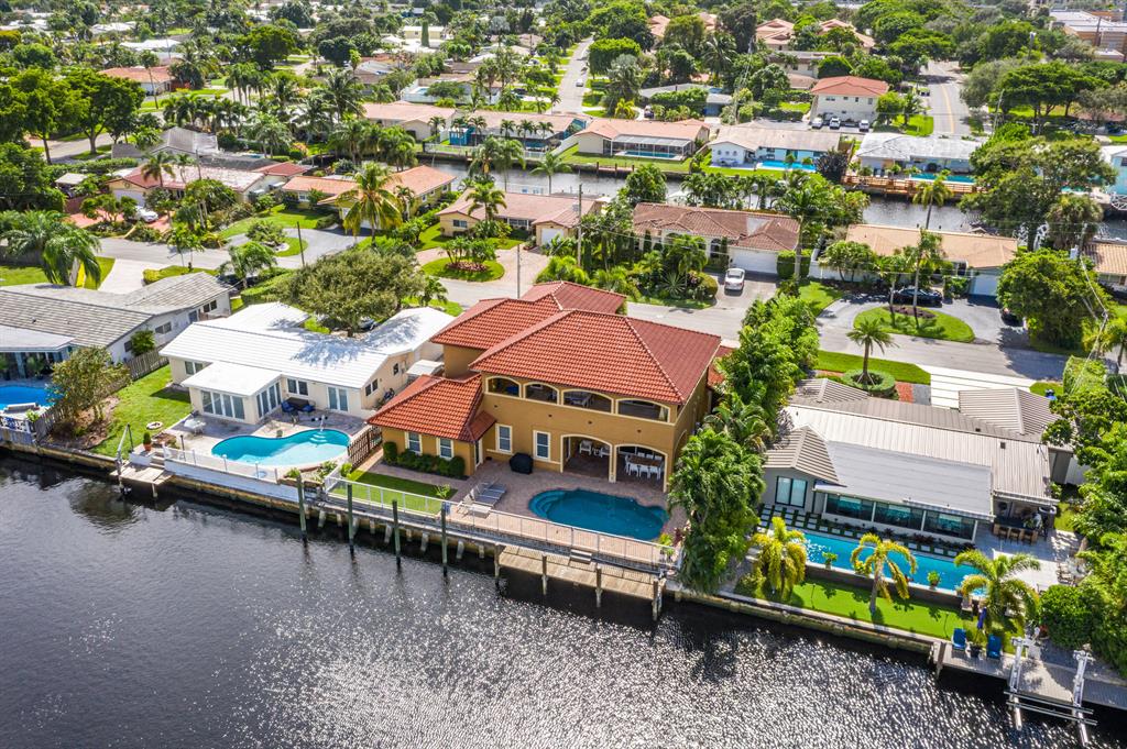 Approved vacation rental with more than 175k annual potential. Set in Coral Ridge Isles on 75 feet of water frontage and ocean access. Renovated in 2019, this spectacular two-story concrete pool home features 6 bedrooms, 4.5 bathrooms, Master suite on the first and second level. No detail was spared during the construction of this home. Some say it was ''over built''. Movie theater and office converted into bedrooms easy to reconvert. 19,000-gallon heated pool. Sea wall was redone in 2016. Hurricane resistant doors & windows, Underground irrigation system (sprinklers), Propane gas line for grill and kitchen, plumbing connected to two outside Rinnai tankless water heaters. Dual zone AC/heat each with separate AC/Heat pumps for each floor. 75k worth of furniture included in the sale.