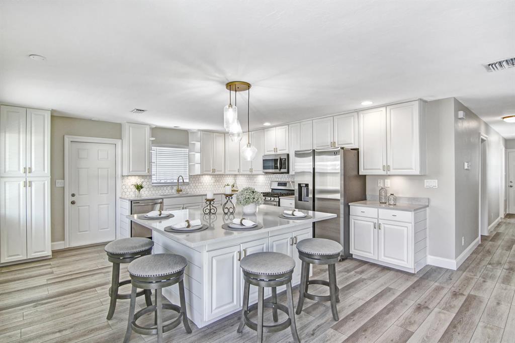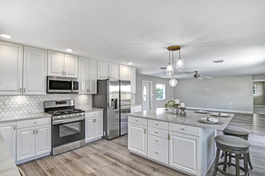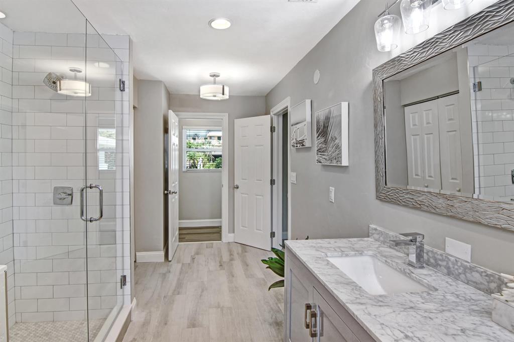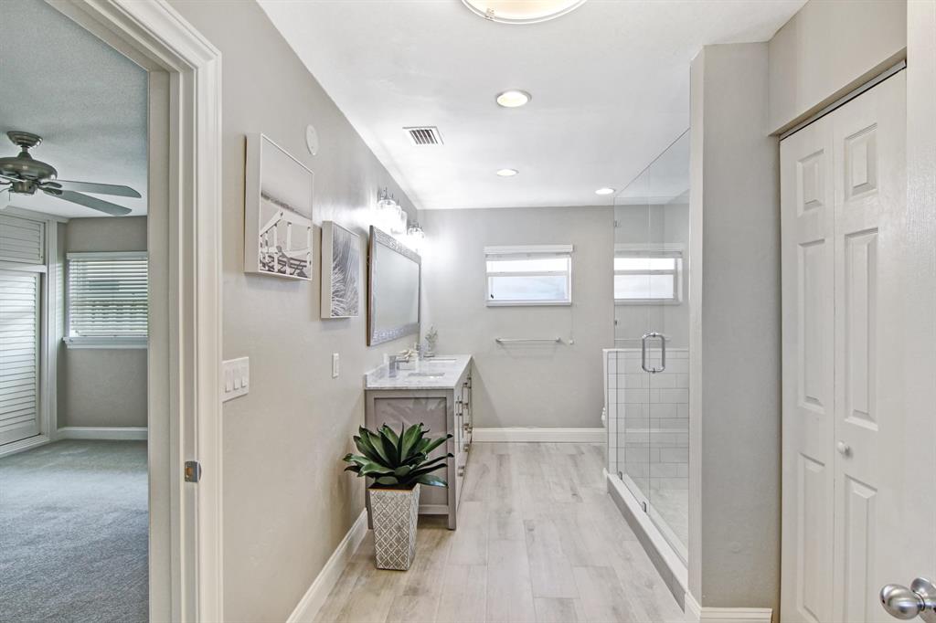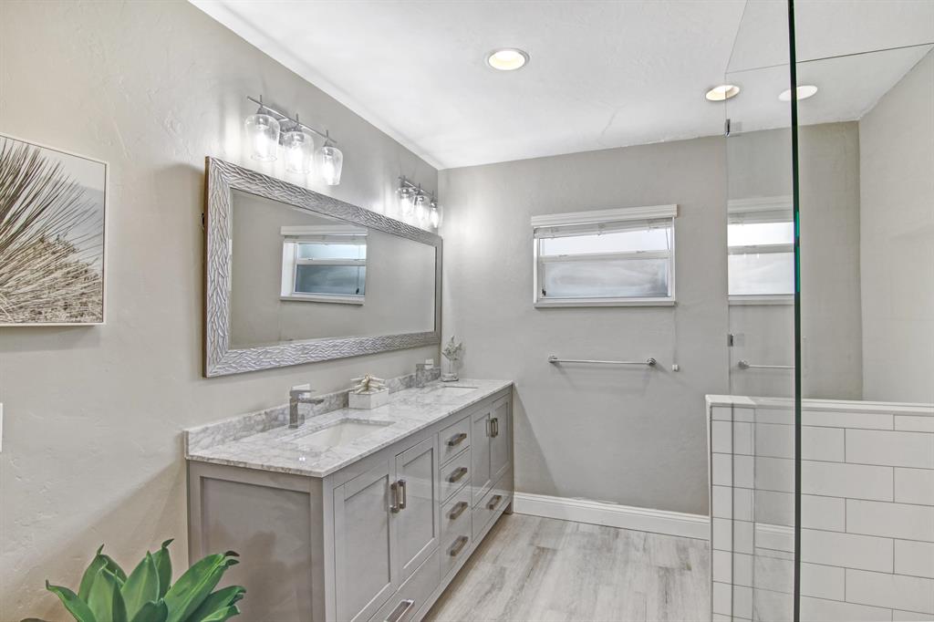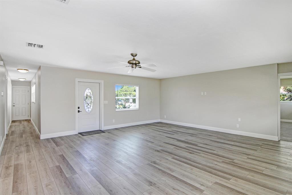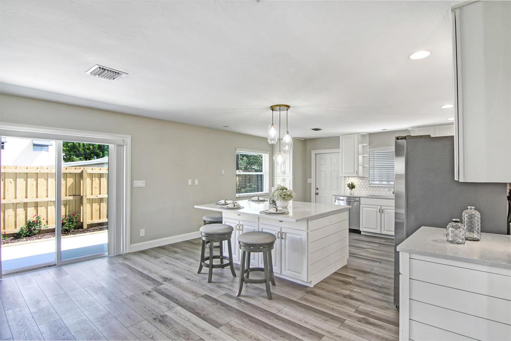 This is the home you've been waiting for in Northwood! Located on a quiet street East of Flagler Drive at the end of the cul de sac. Walking distance to the dog park and Manatee Lagoon. This 2 bedroom 2 bath home is completely remodeled. New impact glass windows, kitchen, bathrooms, floors, carpet and paint. Built with concrete block and a two car garage with added space for laundry and more storage. This home has very little maintenance and fenced for added privacy. Very spacious and open floor plan with 1,571 living square feet and 2,187 total square feet. A rare find with a 2 car garage!
