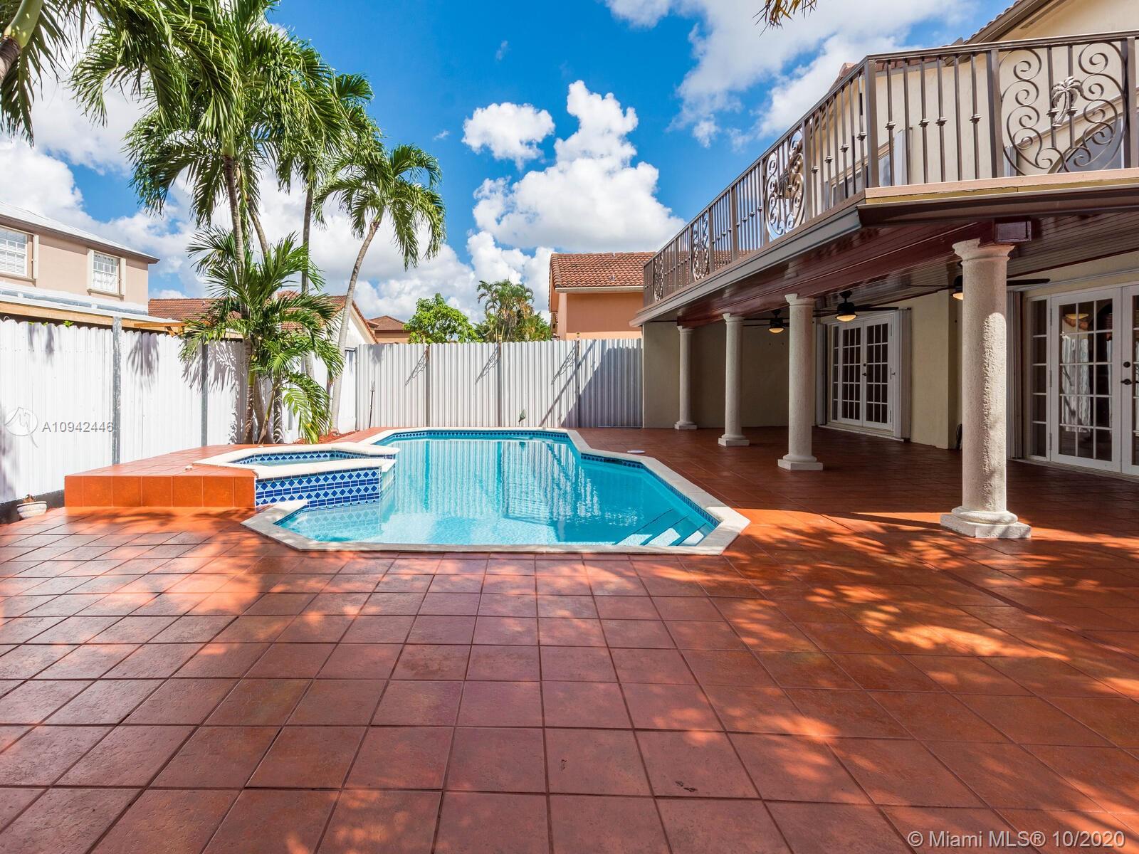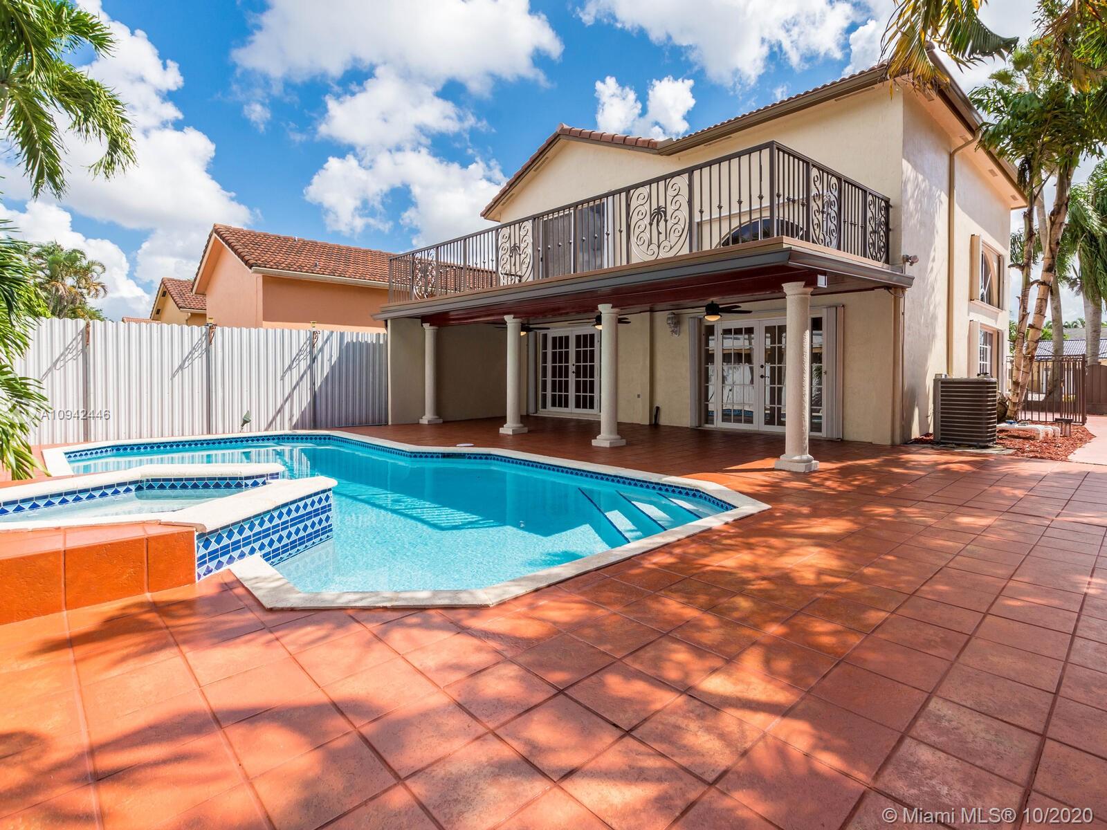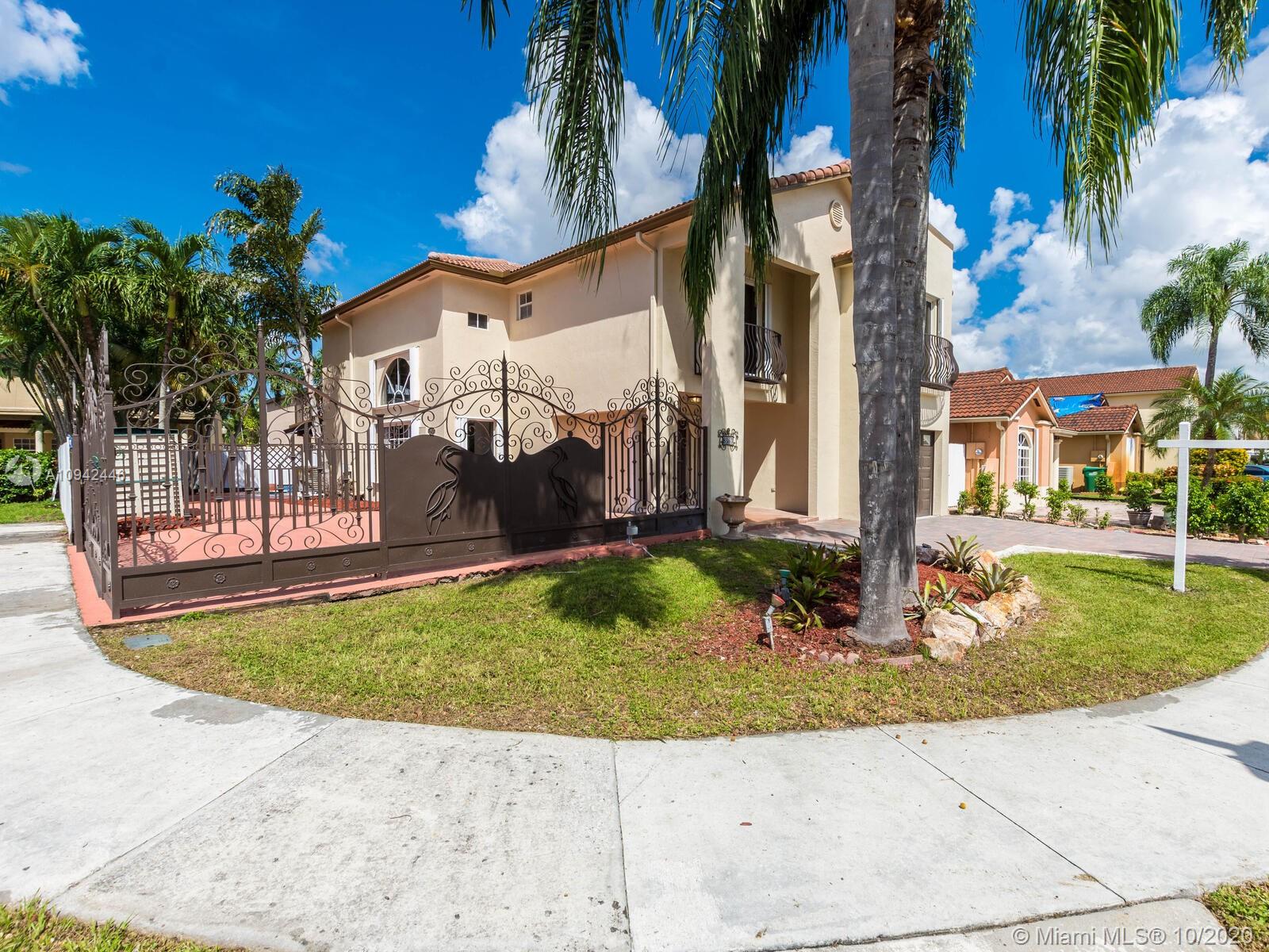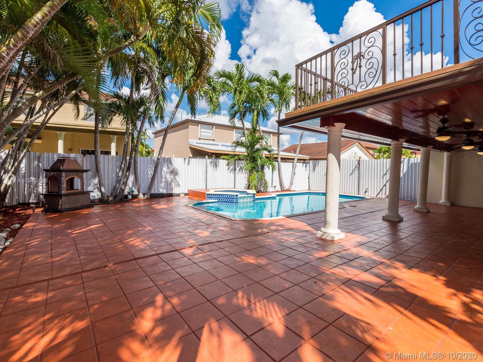 Absolutely stunning luxury estate located in a desirable neighborhood offering privacy and tranquility. Perfect for a family who is looking for a spacious and lovely 3 bed 2 & 1/2 bath house completely renovated and freshly painted. This nice two-story home has tile on the first floor and newly installed wood on the second floor with an open area and a loft. Large, bright, and beautiful Eat-in kitchen newly installed with dark wood cabinet and granite countertops equipped with top of the line black stainless steel appliances, large master bedroom with a private large balcony to enjoy the south Florida weather with a stunning pool view newly resurface with a spa. House completely fenced with high iron gates with nice design. windows are protected with accordion shutters.ready to move in.