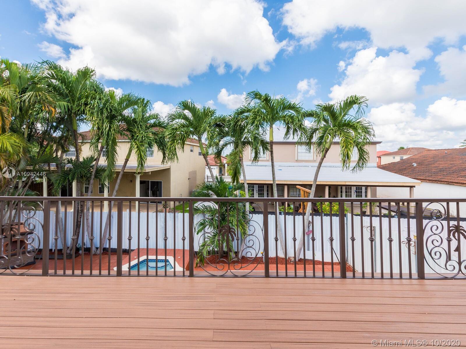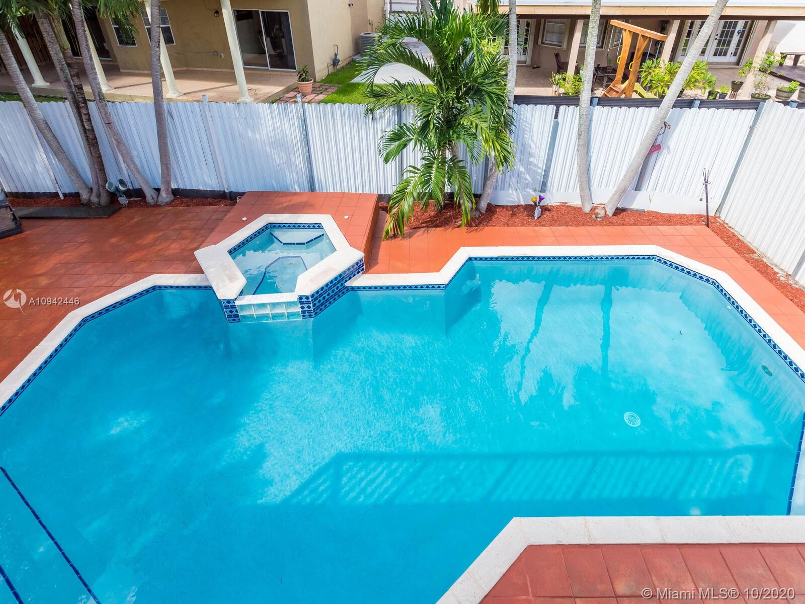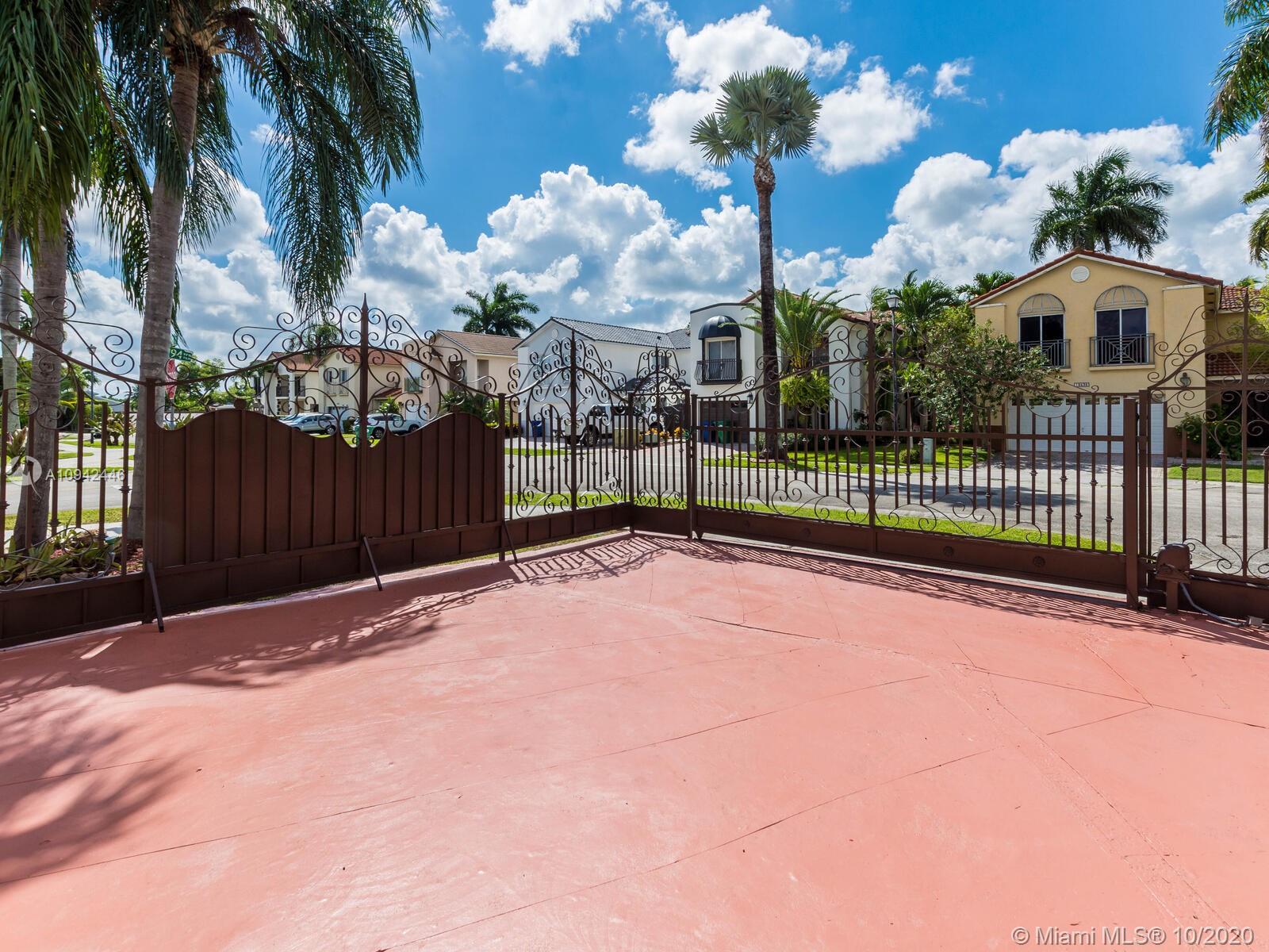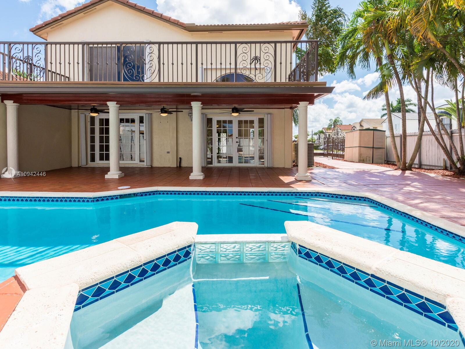 Absolutely stunning luxury estate located in a desirable neighborhood offering privacy and tranquility. Perfect for a family who is looking for a spacious and lovely 3 bed 2 & 1/2 bath house completely renovated and freshly painted. This nice two-story home has tile on the first floor and newly installed wood on the second floor with an open area and a loft. Large, bright, and beautiful Eat-in kitchen newly installed with dark wood cabinet and granite countertops equipped with top of the line black stainless steel appliances, large master bedroom with a private large balcony to enjoy the south Florida weather with a stunning pool view newly resurface with a spa. House completely fenced with high iron gates with nice design. windows are protected with accordion shutters.ready to move in.