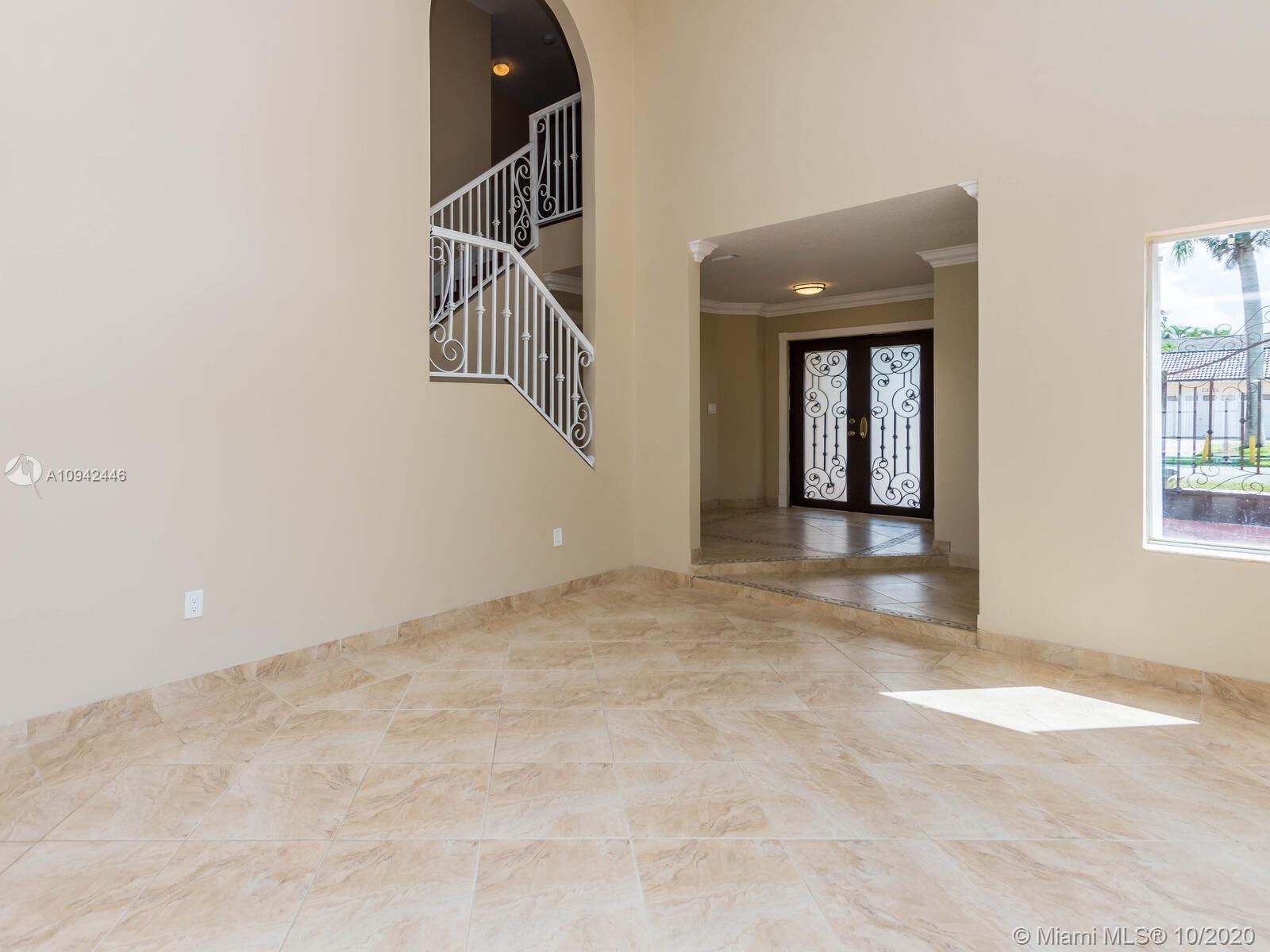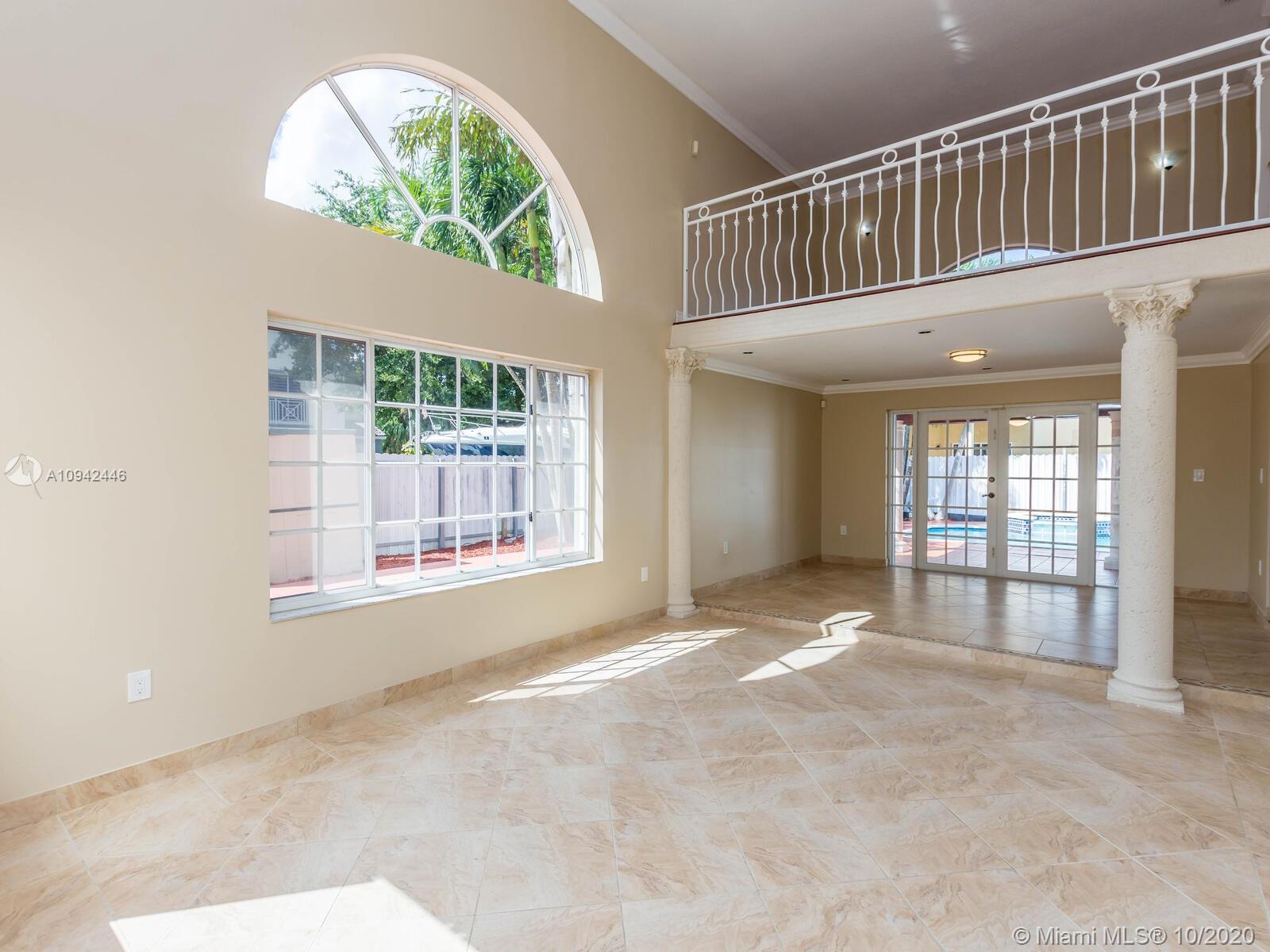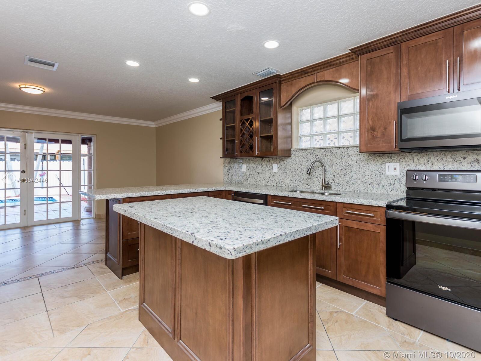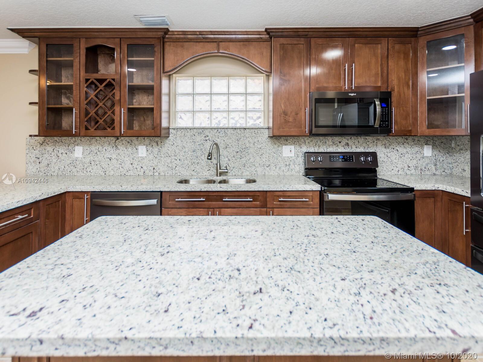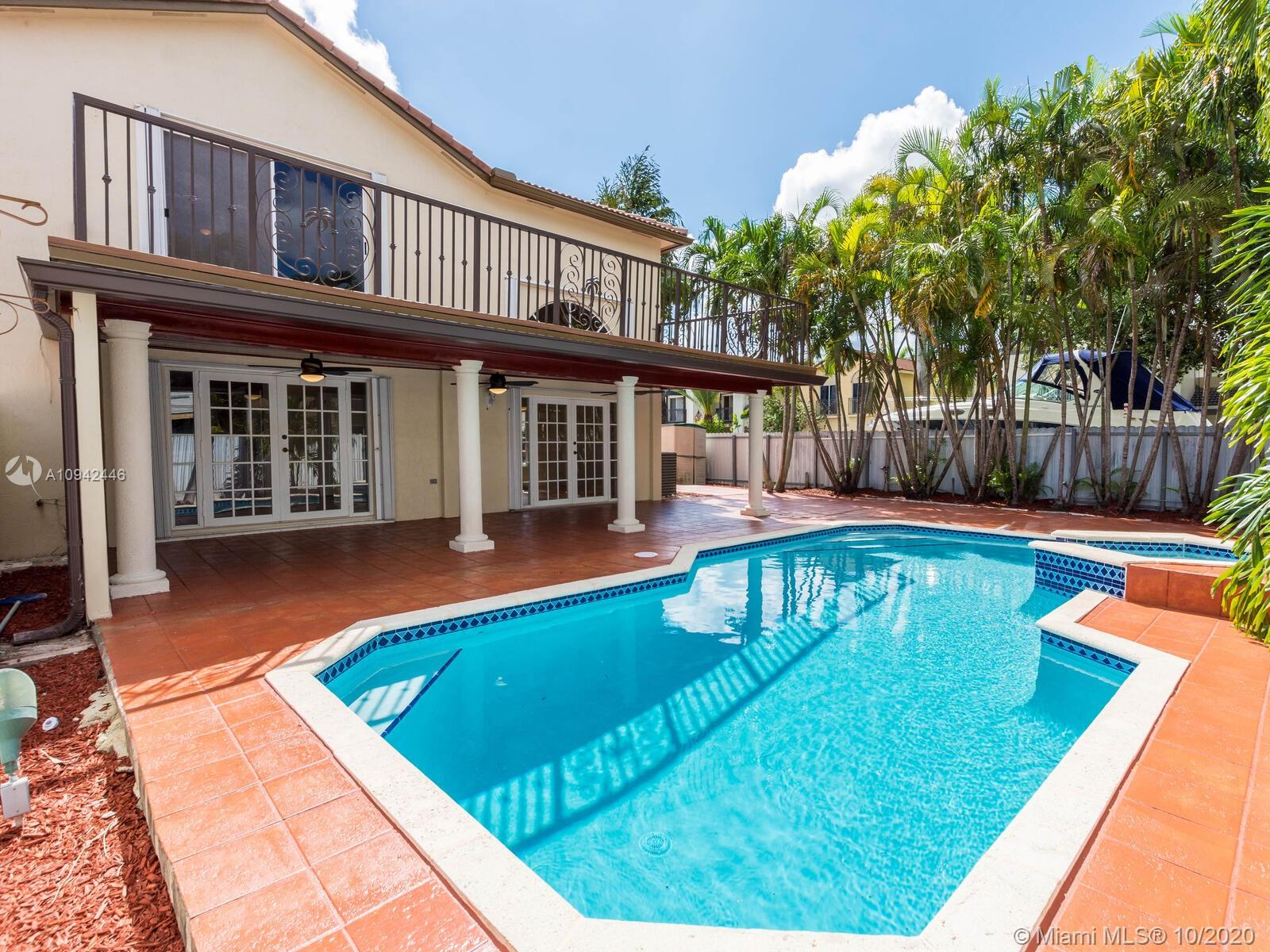 Absolutely stunning luxury estate located in a desirable neighborhood offering privacy and tranquility. Perfect for a family who is looking for a spacious and lovely 3 bed 2 & 1/2 bath house completely renovated and freshly painted. This nice two-story home has tile on the first floor and newly installed wood on the second floor with an open area and a loft. Large, bright, and beautiful Eat-in kitchen newly installed with dark wood cabinet and granite countertops equipped with top of the line black stainless steel appliances, large master bedroom with a private large balcony to enjoy the south Florida weather with a stunning pool view newly resurface with a spa. House completely fenced with high iron gates with nice design. windows are protected with accordion shutters.ready to move in.