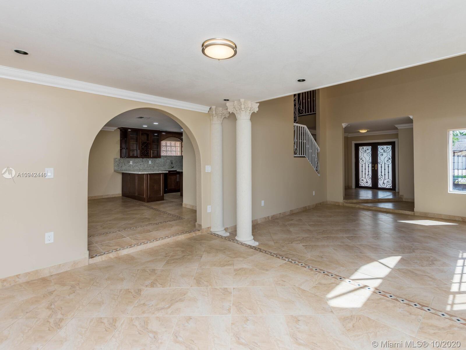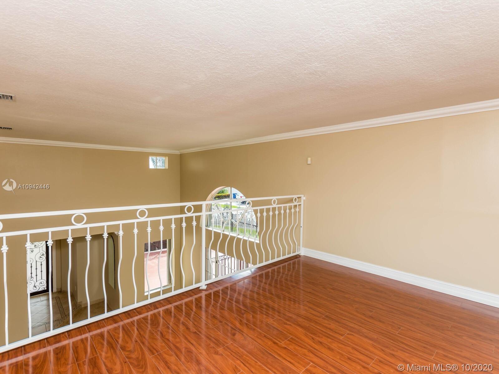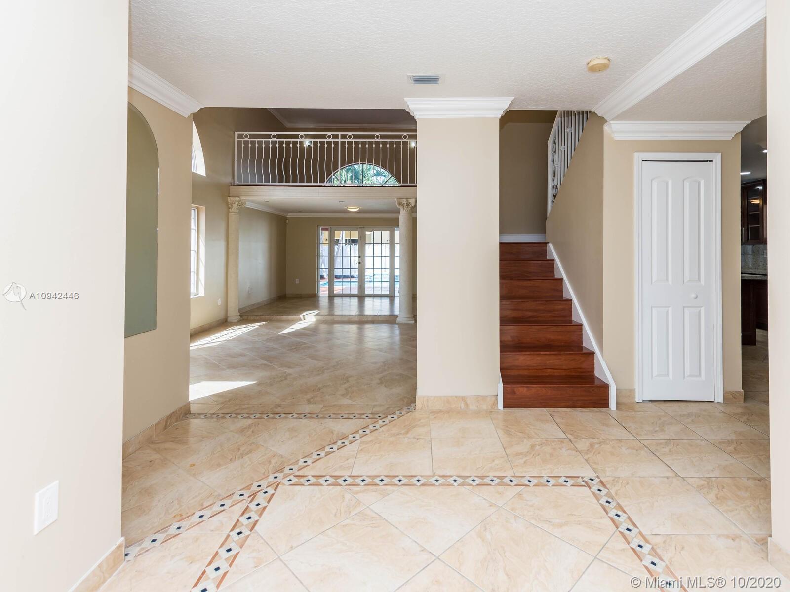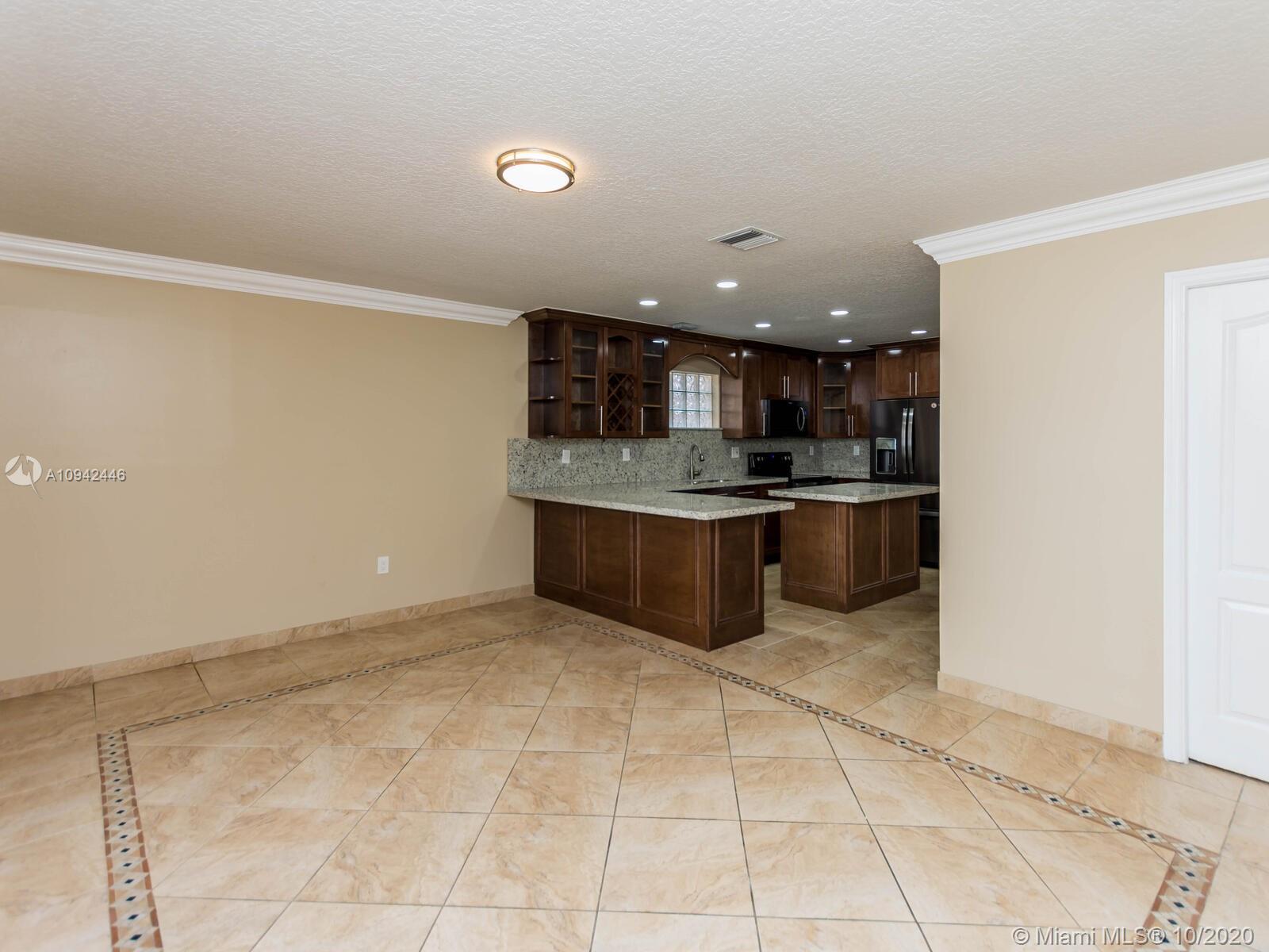 Absolutely stunning luxury estate located in a desirable neighborhood offering privacy and tranquility. Perfect for a family who is looking for a spacious and lovely 3 bed 2 & 1/2 bath house completely renovated and freshly painted. This nice two-story home has tile on the first floor and newly installed wood on the second floor with an open area and a loft. Large, bright, and beautiful Eat-in kitchen newly installed with dark wood cabinet and granite countertops equipped with top of the line black stainless steel appliances, large master bedroom with a private large balcony to enjoy the south Florida weather with a stunning pool view newly resurface with a spa. House completely fenced with high iron gates with nice design. windows are protected with accordion shutters.ready to move in.