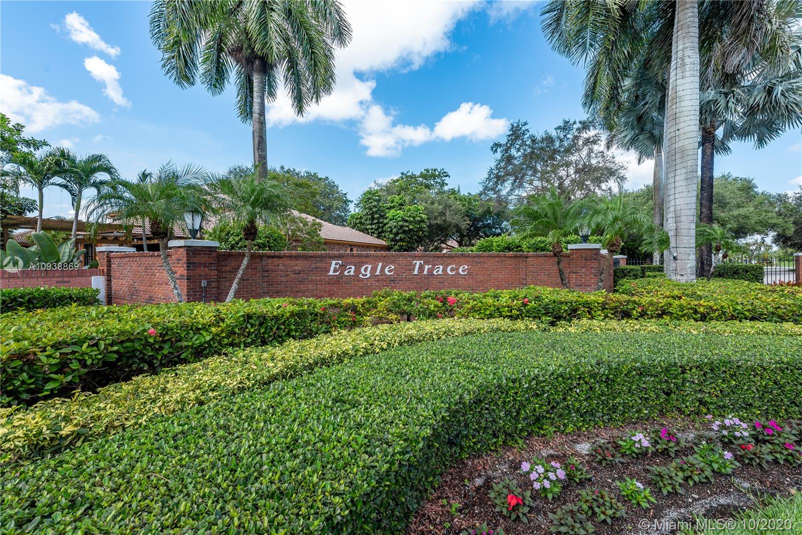 Welcome to Eagle Trace, the Estates. Amazing home, open concept, large lot, pool & spa, great for entertaining. *Master suite upstairs with sitting area and open balcony, walk in closet. Loft/office. First floor 2 bedrooms with 1 bath on one side and 1 bedroom with 1 bath private suite on the other. Amazing marble floors throughout main living area and kitchen* Huge center island kitchen with granite counter tops and stainless steal appliances* fireplace, impact windows. Very quite street, surrounded by million dollar homes, gated community includes tennis court, pick-ball, basketball courts, 24/7 security patrol, low HOA $210/month. Renowned Eagle Trace golf club optional membership.