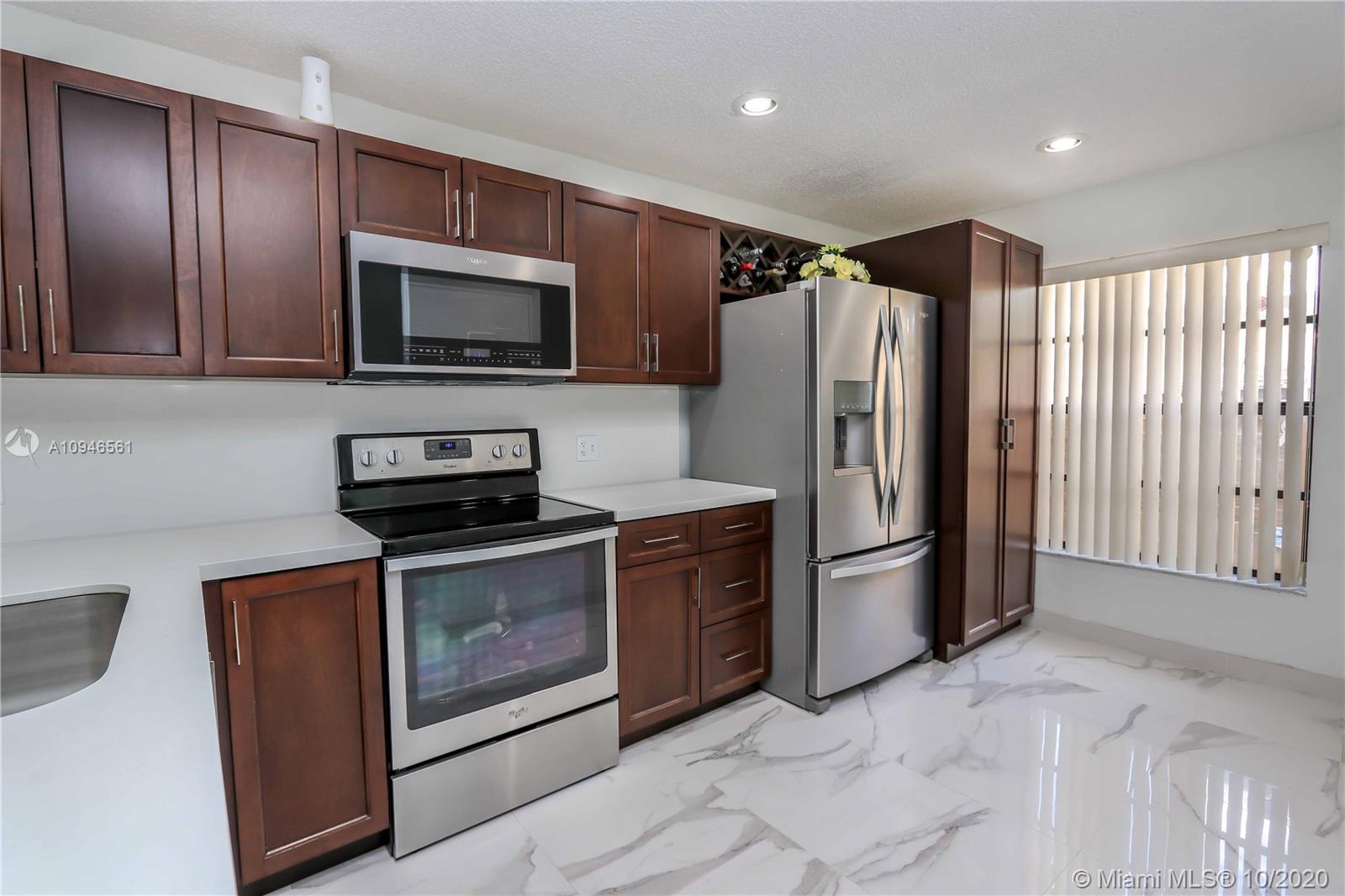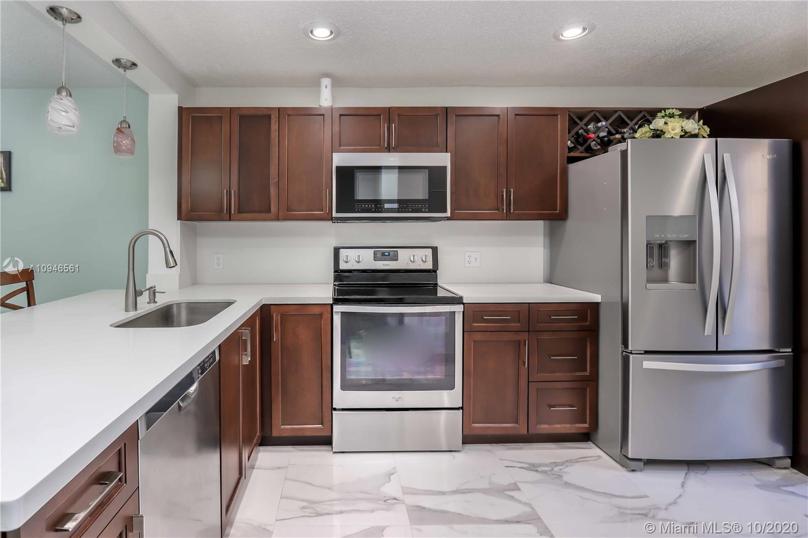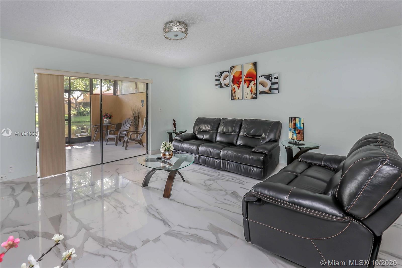 Impeccable and very nicely upgraded 2-story townhouse in the heart of Pembroke Pines. Large Italian porcelain floors on the 1st floor. A gorgeous upgraded open-kitchen with Quartz countertops, modern lighting, upgraded cabinets and appliances that are about 1yr old. The Stairs and second story feature engineered wood imitation floors that are scratch resistant. Master Bedroom is so spacious, you will not know what to do with all the space!! it also has a peaceful lake view. The second bedroom is like a mini master suite, very large with ensuite bathroom. Outside you will find an awesome covered patio with tile and an extra full size fridge that is included. Its the perfect space for a gatherings. Accordion shutters, plenty of storage.. Condo association requires min 20% down payment