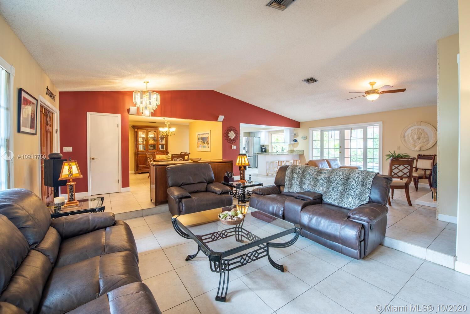 Come and see this beautiful 4/2 pool home with wonderful curb appeal outside and garden lanai area before entering the double front doors. This single story home features: 2005 roof, new flat roof and patio knockdown, 2016 A/C, circular driveway, hurricane rated garage door, (3) French-doors to screened patio, solar hot water heater, updated eat-in kitchen with white cabinets, granite counters, stainless steel appliances, reverse osmosis under sink, updated master and guest bathrooms, formal dining, living room, family room, double door entry to master bedroom and wide hallway to bedrooms, tile throughout living area and bedrooms, decorative fireplace with built in shelving, euro-tile for sidewalk, cool deck patio-pool area with tropical garden foliage for your backyard privacy and no HOA!
