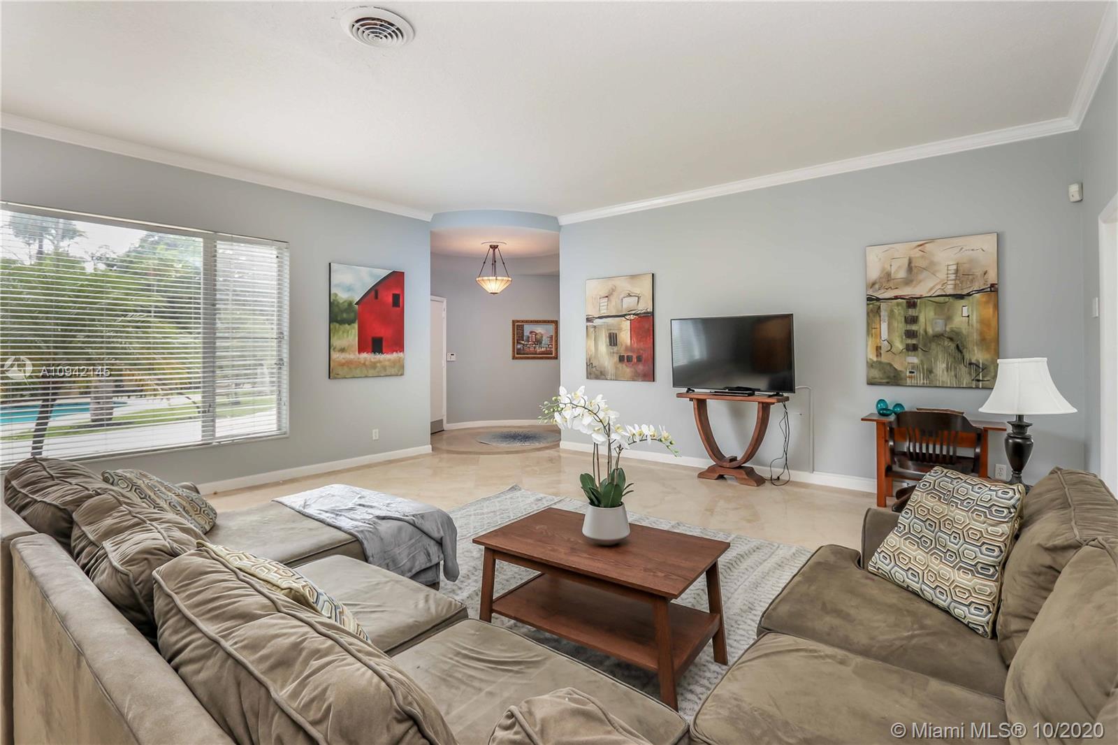 Stunning Art Deco 3 bedroom /2 bath home in Hollywood Lakes area. This double corner lot features a 2 car garage and a long circular driveway. Gorgeous marble flooring and the home is fully furnished down to the bedding and kitchen utensils. Move right in and immediately enjoy the Florida indoor/outdoor lifestyle. Eat in kitchen and separate raised circular dining area along with beautiful and unique Art Deco curves throughout the home. Heated pool surrounded with lush tropical landscaping. Walk through the French doors and enjoy the fabulous circular covered patio out back. New barrel tile roof installed in 2019. New garage doors and openers installed in June 2020 and the Interior and exterior has been freshly and expertly painted.