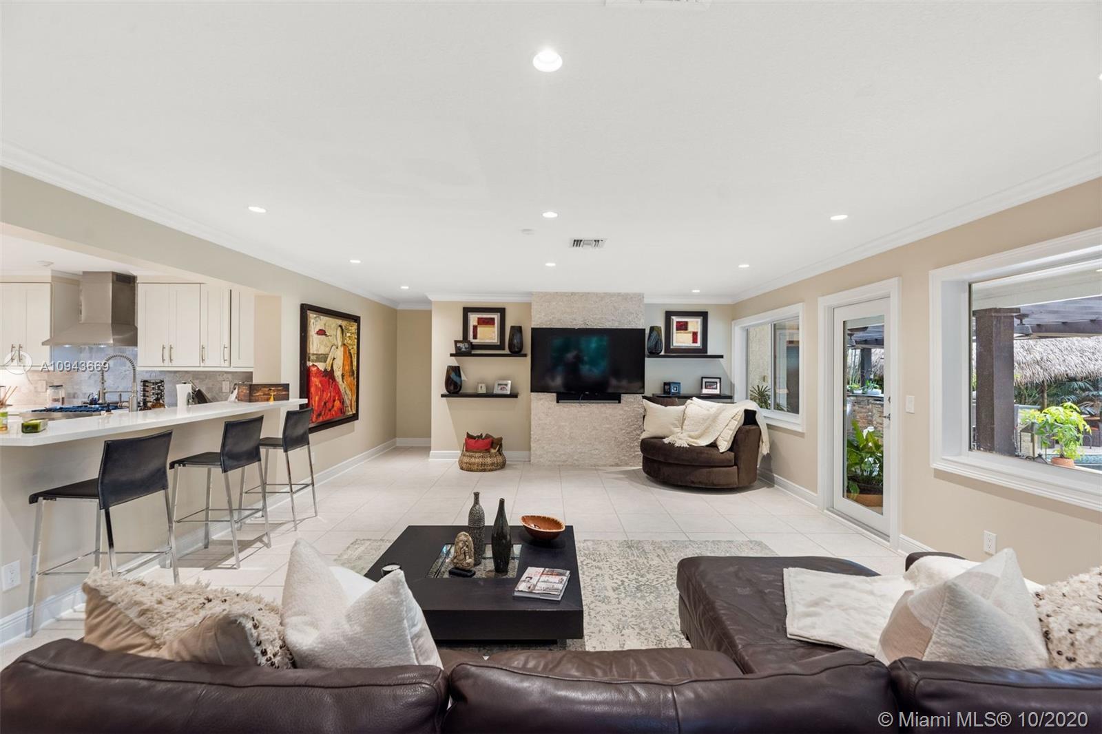 A must see turn key home, one of a kind completely remodeled with meticulous attention to detail.Designer custom kitchen with large center island quartz counter top, marble backsplash top of the line appliances including Gas range. Impact windows and doors.Neutral tile floors through out, wood floors in all bedrooms.Master bathroom has custom dual sinks with designer shower. Large living, dinning and family room with view to the most spectacular back yard with cabana bath. Tropical Oasis back yard feels like you're on vacation.Custom oversized pool with water fall, custom bar and out door kitchen.Pizza oven, separate area with spa and bar.Amazing koi ponds.Professionally designed landscaped yard. Large barn style workshop with private paved drive way. House back up generator. Gated entry .