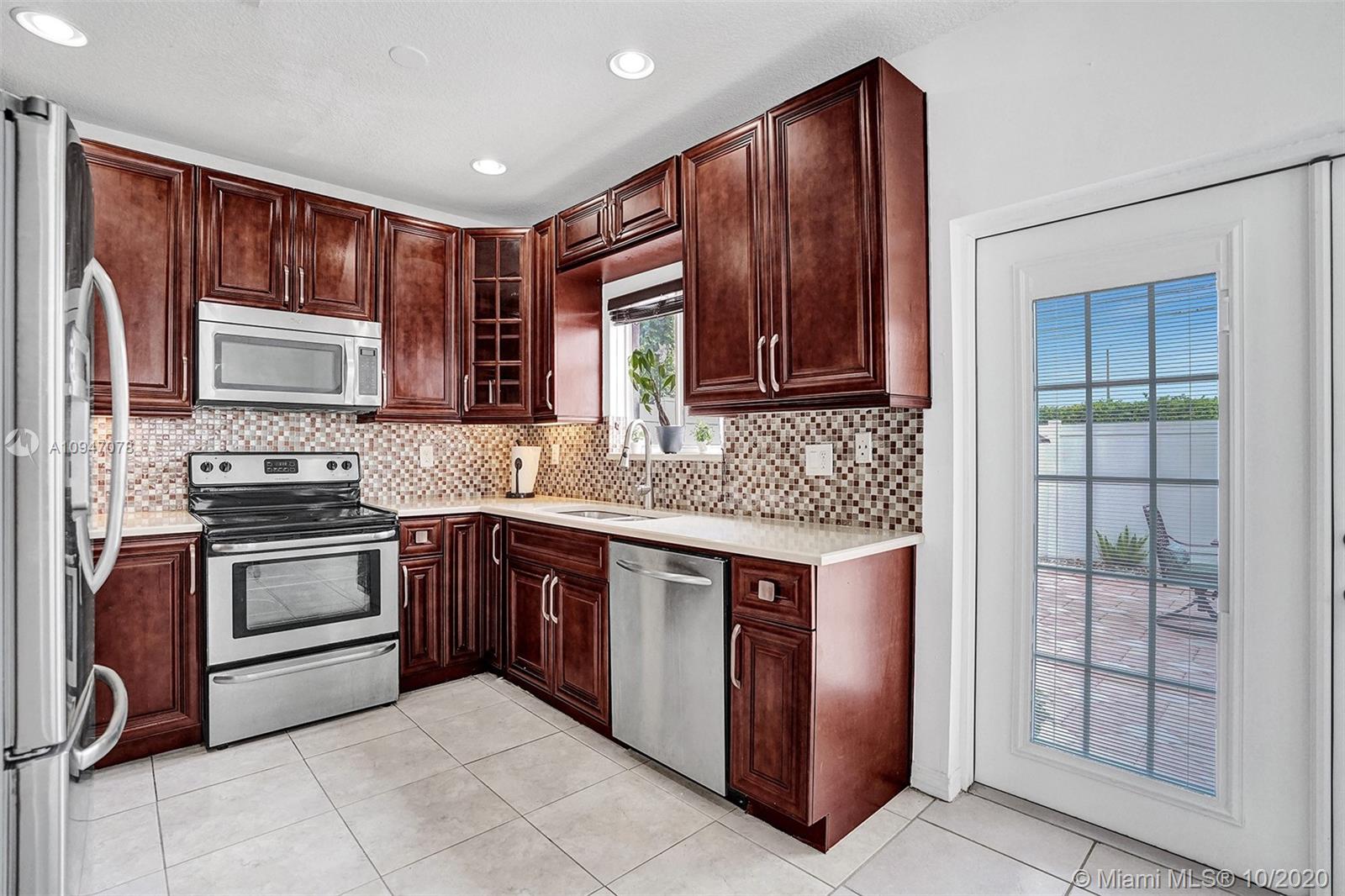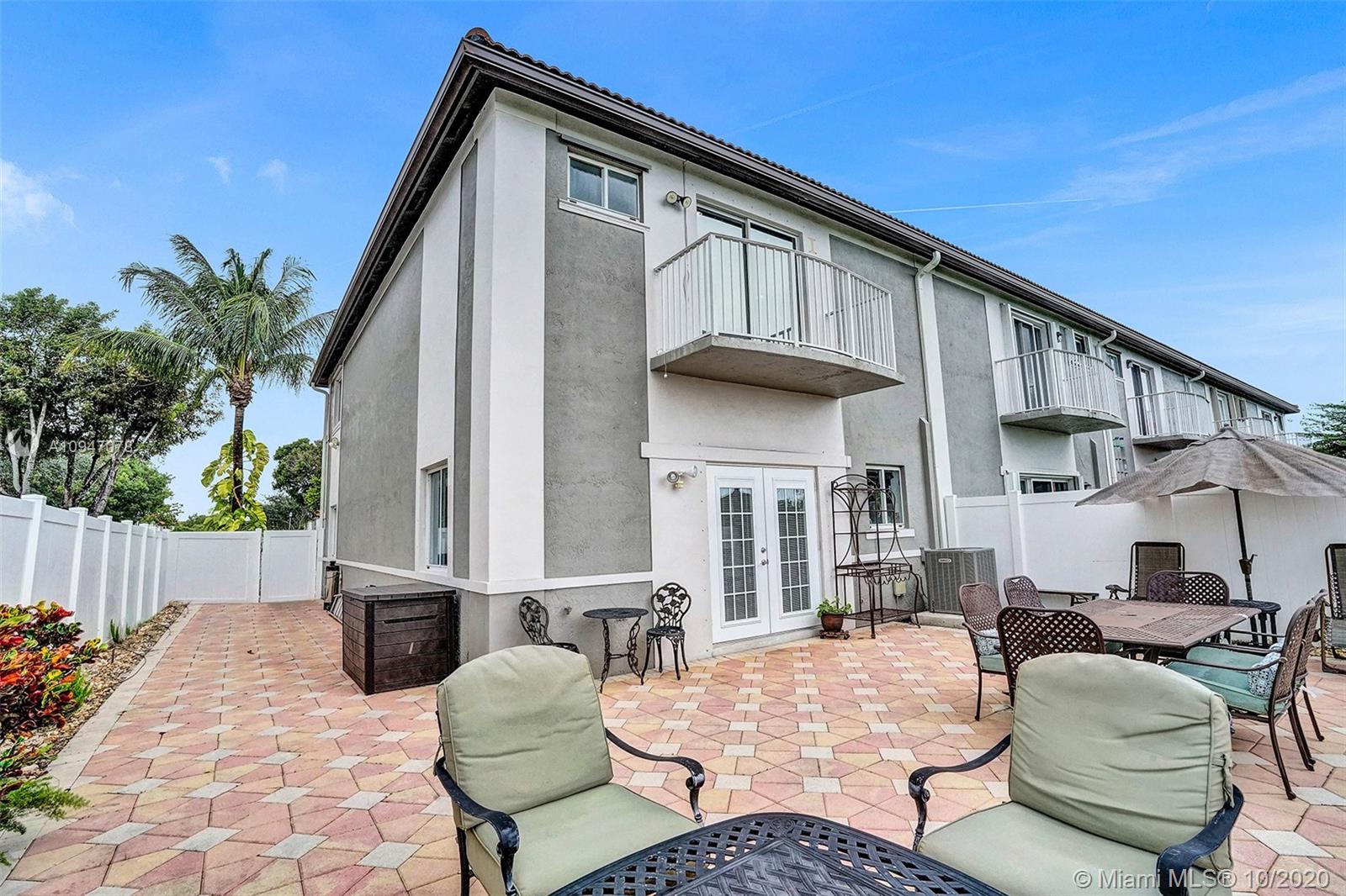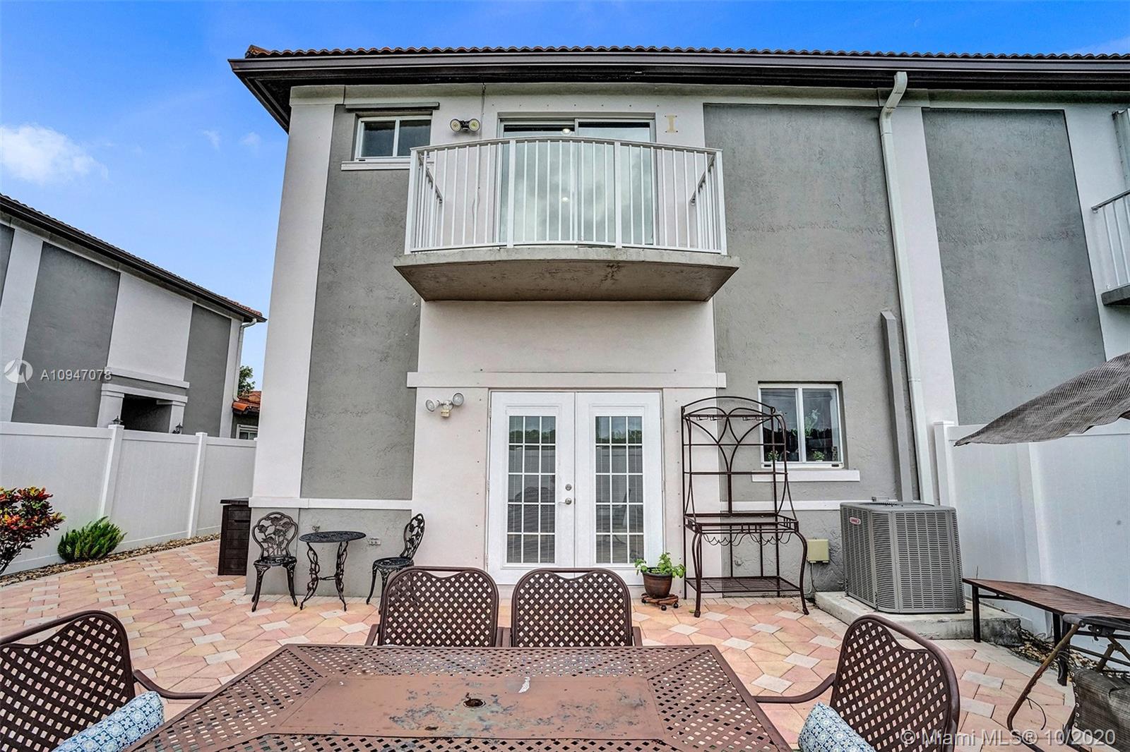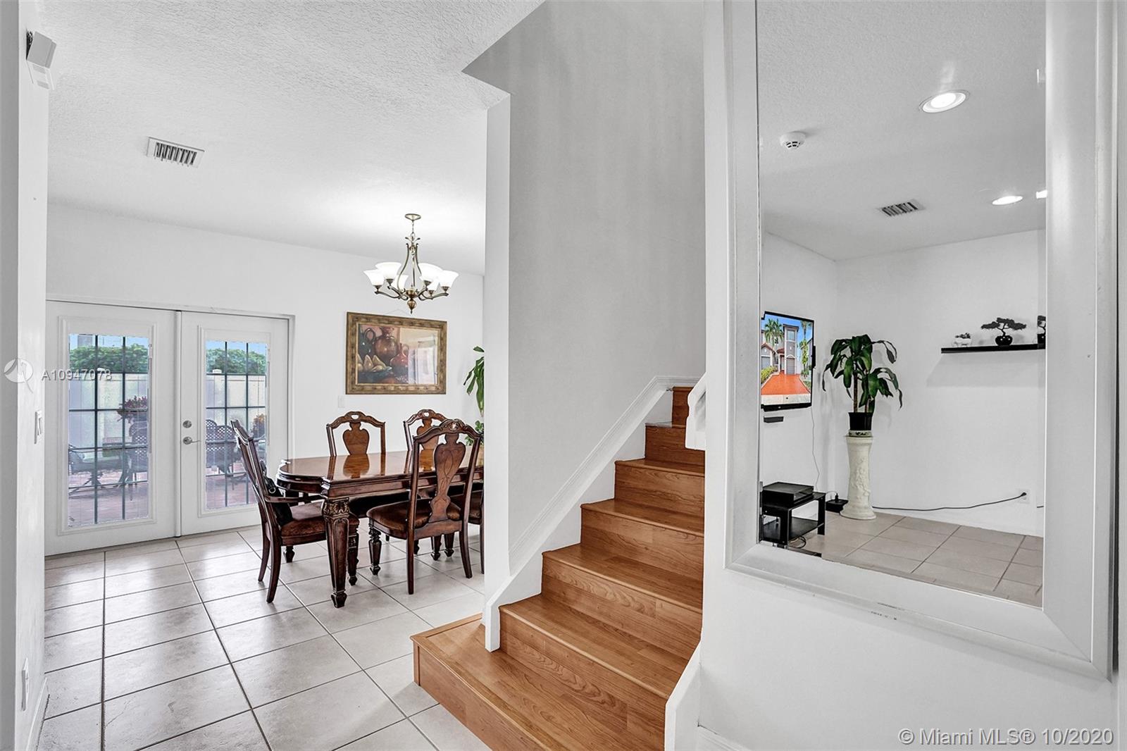 two-story corner unit townhome with three bedrooms, two and a half bathrooms, and a den with a closet that can be used as a home office, fourth bedroom or additional storage. The home features an updated kitchen with stainless steel appliances, recessed lighting along with sizable cabinets for storage. The beautiful French doors off the kitchen lead out to an inviting spacious patio with plenty of room to entertain. Bathrooms have been updated as well with upgraded fixtures such as rain shower heads, mosaic tile and glass shower doors. Master suite features a walk in closet, and a balcony that can accommodate a bistro table set. Recently repainted driveway provides ample parking for two cars. Excellent location, easy access to I-75 and the Turnpike making commuting that much easier.