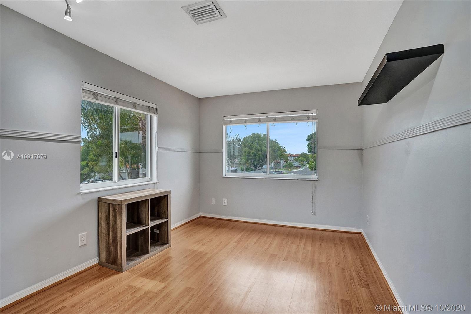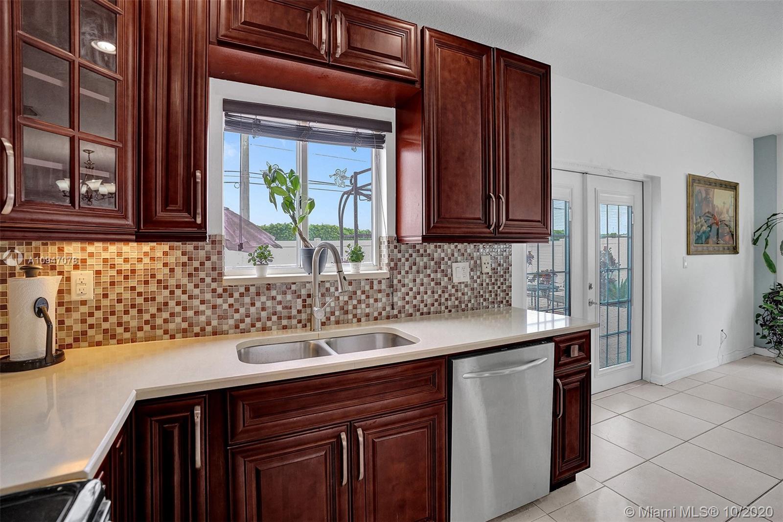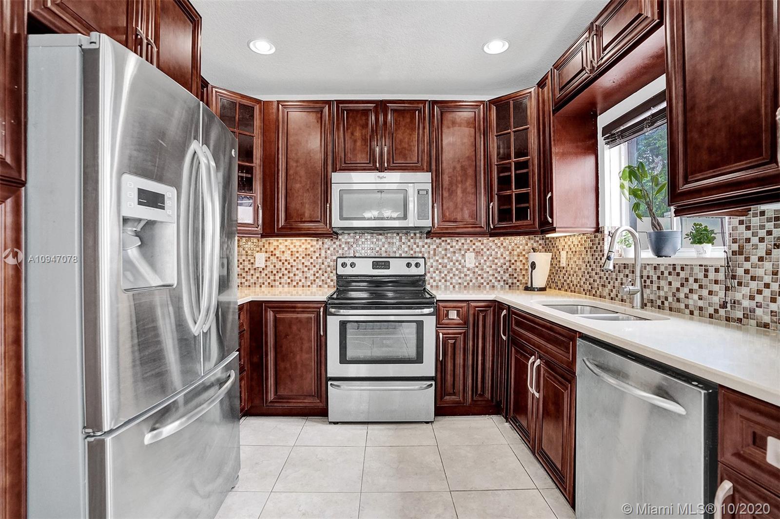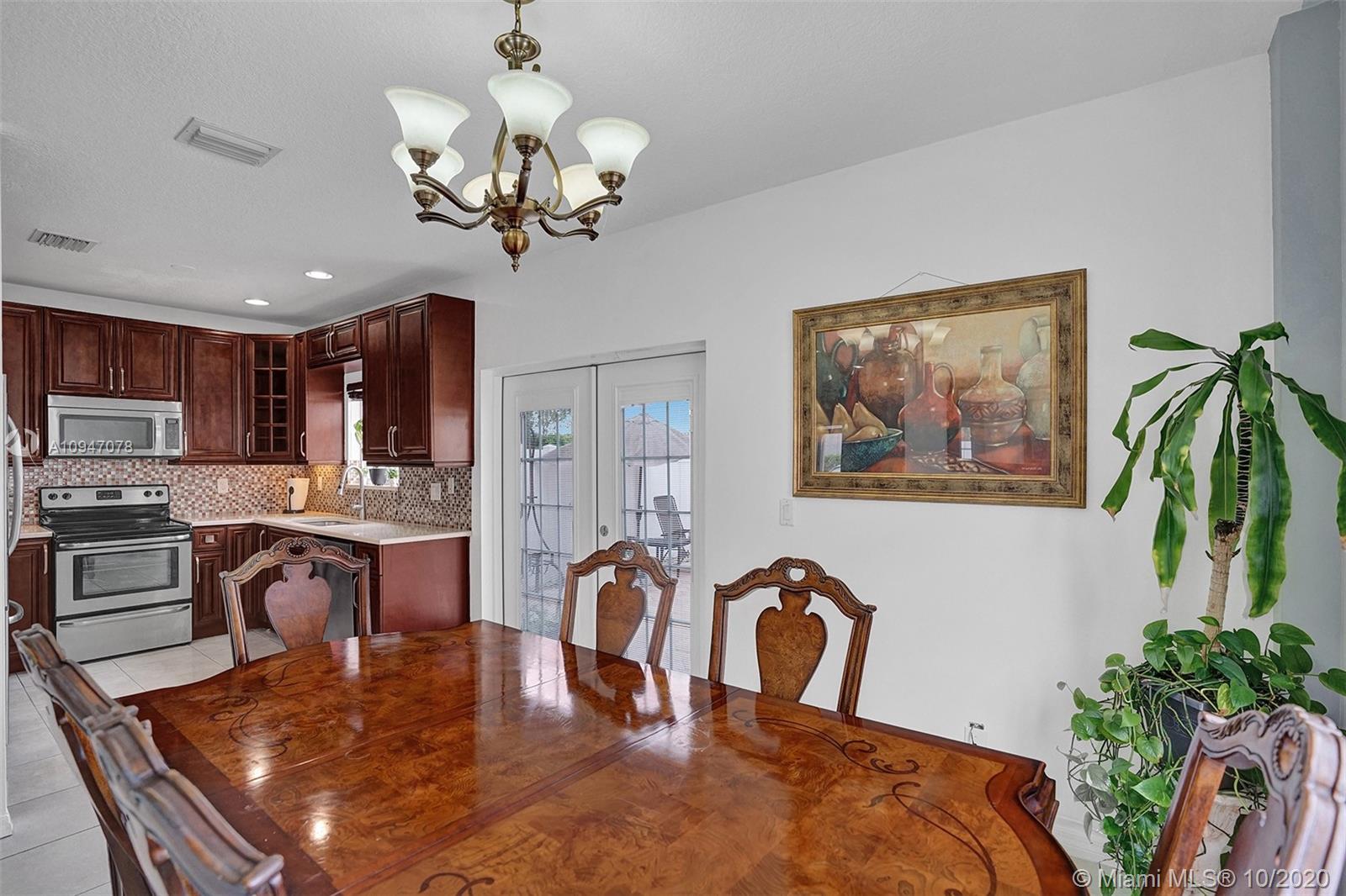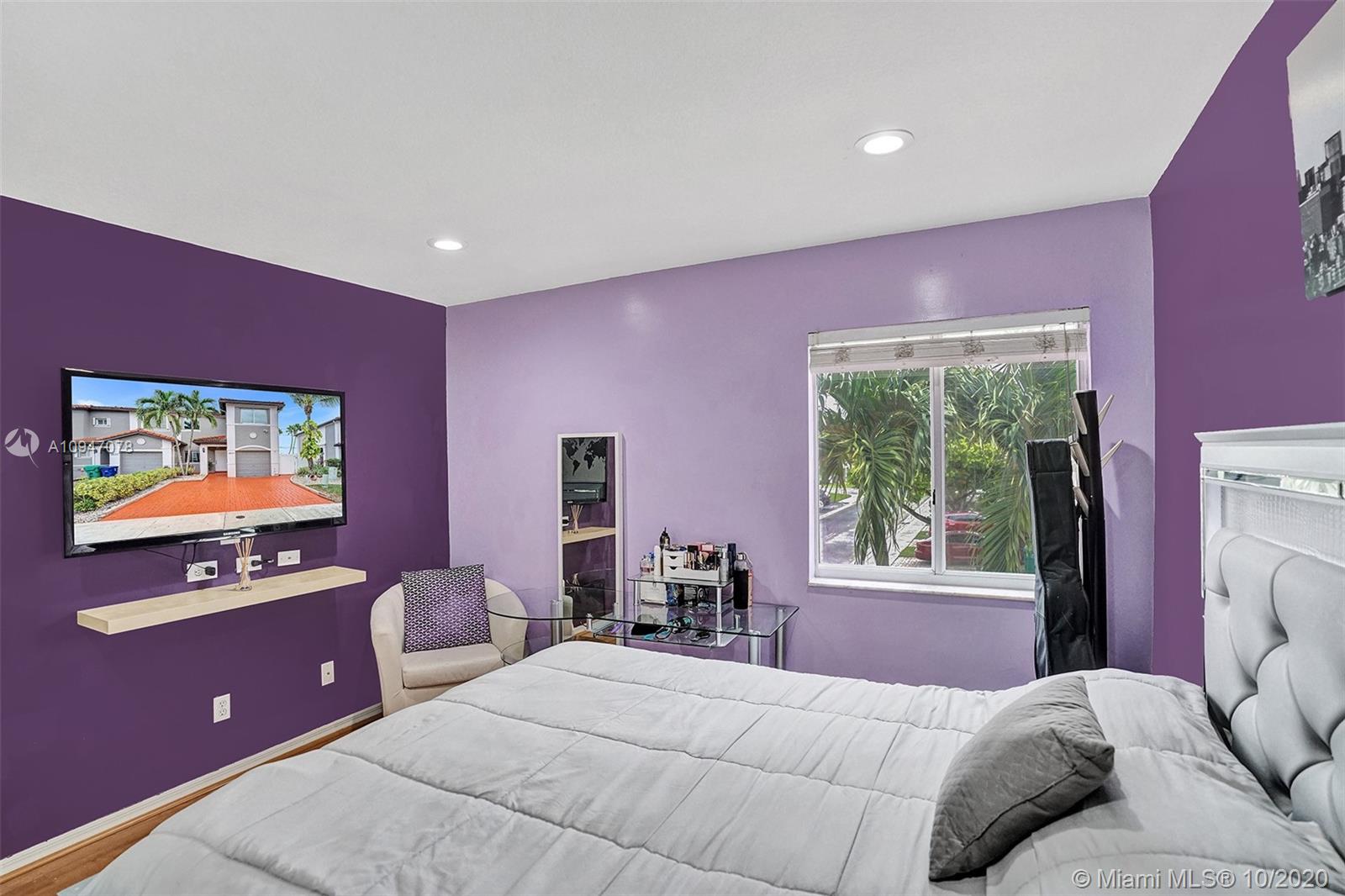 two-story corner unit townhome with three bedrooms, two and a half bathrooms, and a den with a closet that can be used as a home office, fourth bedroom or additional storage. The home features an updated kitchen with stainless steel appliances, recessed lighting along with sizable cabinets for storage. The beautiful French doors off the kitchen lead out to an inviting spacious patio with plenty of room to entertain. Bathrooms have been updated as well with upgraded fixtures such as rain shower heads, mosaic tile and glass shower doors. Master suite features a walk in closet, and a balcony that can accommodate a bistro table set. Recently repainted driveway provides ample parking for two cars. Excellent location, easy access to I-75 and the Turnpike making commuting that much easier.