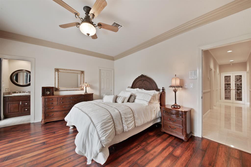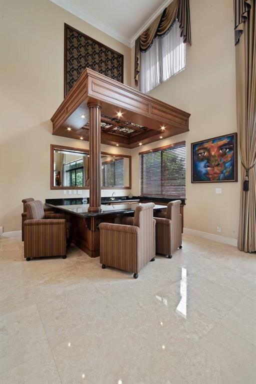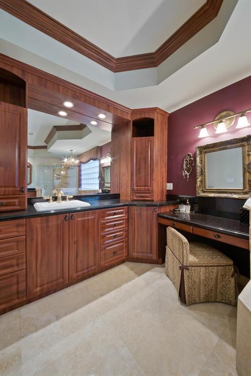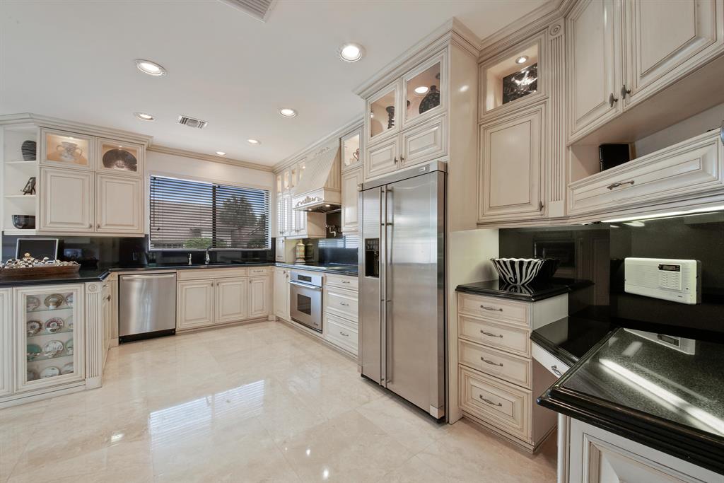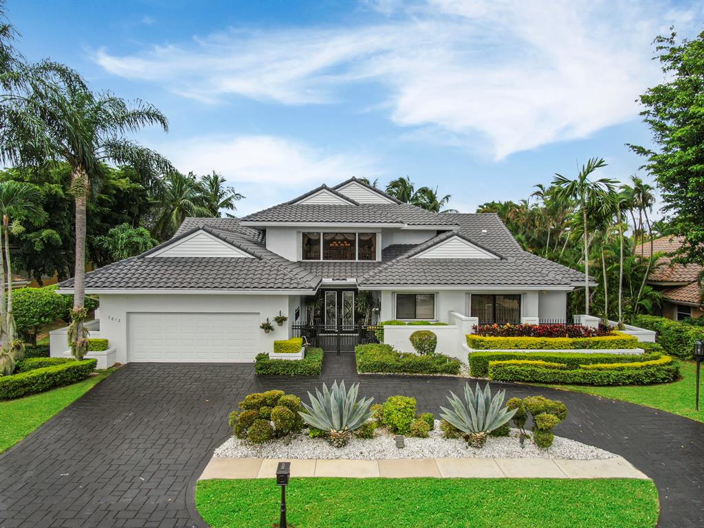 Exquisitely appointed estate home in the exclusive Boca Grove community. This astounding 4 bedroom, 4 bath home has a 4,252 SqFt floorplan designed for entertaining on a grand scale with a formal living room, formal dining room, a loft and a family room with a custom bar. The gourmet kitchen will inspire your inner chef with top-of-the-line stainless steel appliances, a center island, stacked cabinets with lighting, granite counter tops, full granite backsplash, a pot filler and off-white cabinetry with decorative molding. Through the double door entrance of the divine main retreat lies a vaulted wood ceiling, slider to patio and his and hers custom closets. Opulent main bath features dual sinks, jetted tub and a walk-in shower with dual shower heads