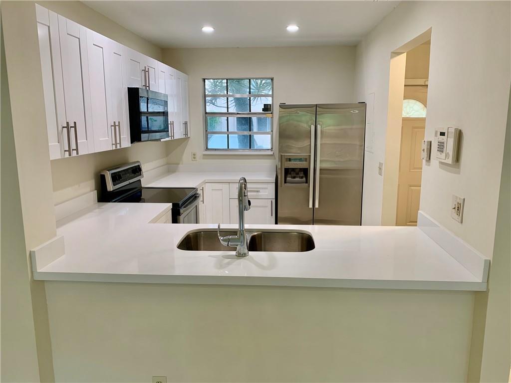 New Roof in progress. No words to describe this beauty! Completely Remolded and Freshly Painted! Brand New All white real wood kitchen cabinet with soft close. Top of the line Quartz countertop, Stainless Steel Appliances. Washer & Dryer. Recessed Lighting in the kitchen. New Premium Porcelain Floor and Wall Tile in bathrooms. 3 Bathrooms completely Remodeled! Real wood bathroom vanities with marble top and soft close. Tile on the first floor. New Laminate Flooring upstairs. Brand New Ceiling Fans with remote. New Smoke Detectors. Two Large Primary bedroom upstairs with spacious closet space and two full bathroom. Gated Backyard for your privacy, patio area, storage room. Low HOA fees. Community Pool! Golf course across the street! Near shopping! No Rental Restrictions!
