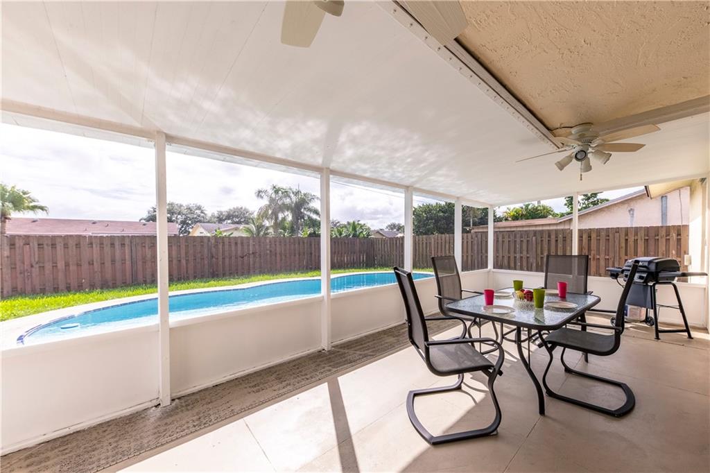 Immaculately kept home with pool in Sunrise! This one-owner home features 3 bedrooms, 2 bathrooms and a one car garage. You will find vaulted ceilings and a lot of natural light coming in throughout. Tile and carpet floors. Enjoy a quiet afternoon in the fenced-in yard by a gorgeous free form pool. Sprinkler system, AC's and roof have been routinely checked and maintained to prolong their lives. Custom sized Miami Dade code approved hurricane shutters, washer and dryer, an alarm system, a large screened in patio and newer electrical box installed by an FPL certified technician are only some of the comforts of this home. Convenient location near major roadways and only a few minutes from Sawgrass Mall, where you will find shopping, dinning, entertainment and much more.