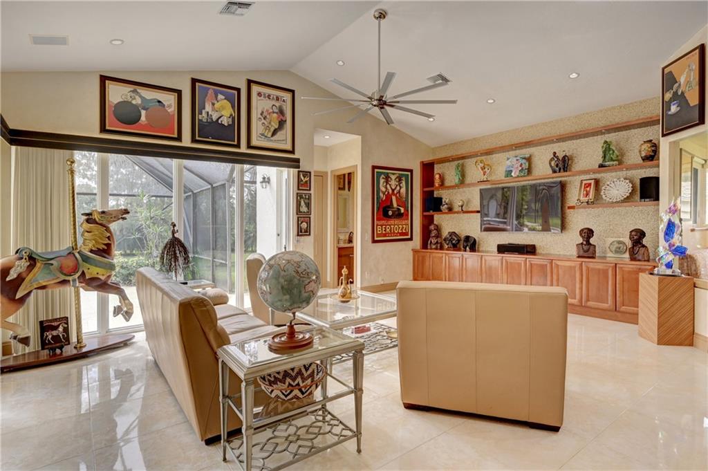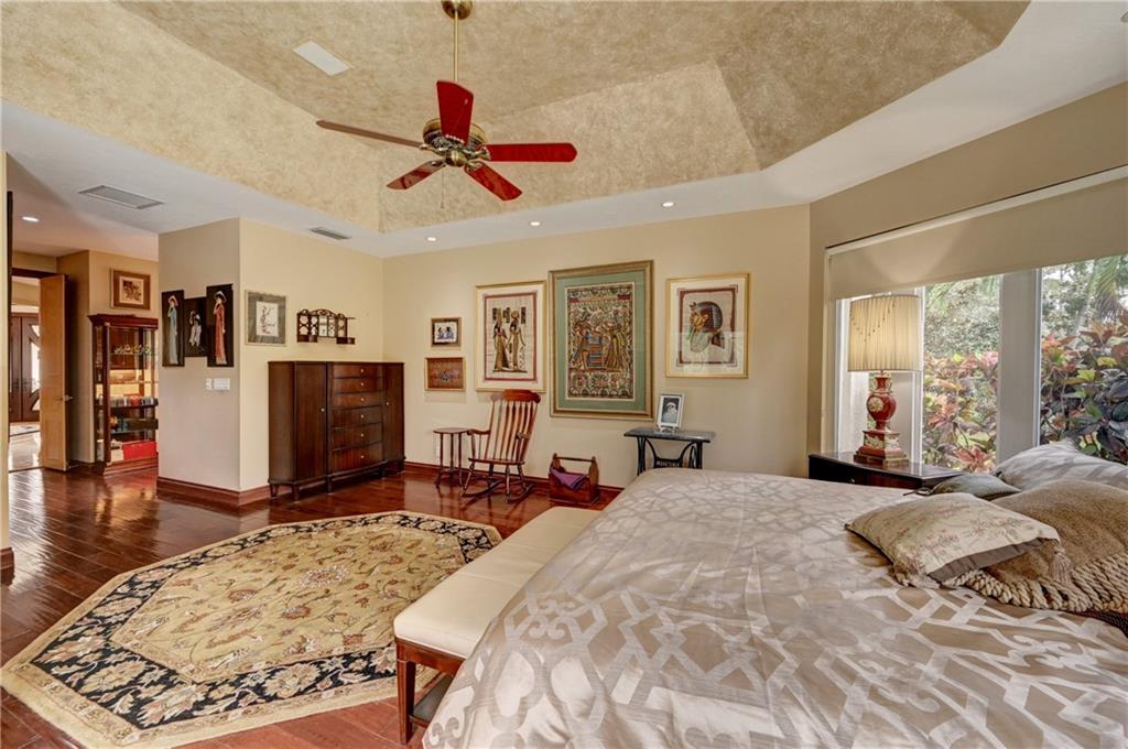 Spectacular 5/4.5 pool home +bonus room situated on an oversized corner lot in the prestigious Whispering Woods. Luxury & sophistication at every turn starting w/the grand foyer leading into a spacious living area with high volume ceilings, recessed lights, real fireplace, formal dining room, family room overlooks the updated eat-in kitchen w/granite, SS appliances, wall oven, cooktop stove, wine cooler & breakfast nook, all upgraded bathrooms, large laundry room w/sink & plenty of storage, spacious master boasts tray ceiling, hardwood floors, His/Her sinks, Jacuzzi tub & walk-in shower, bonus room off master (no closet), French doors open to the screened-in/covered patio area w/lush landscaping surrounding the pool/spa & built-in Summer kitchen. Impact windows & doors. Triple split A/C.