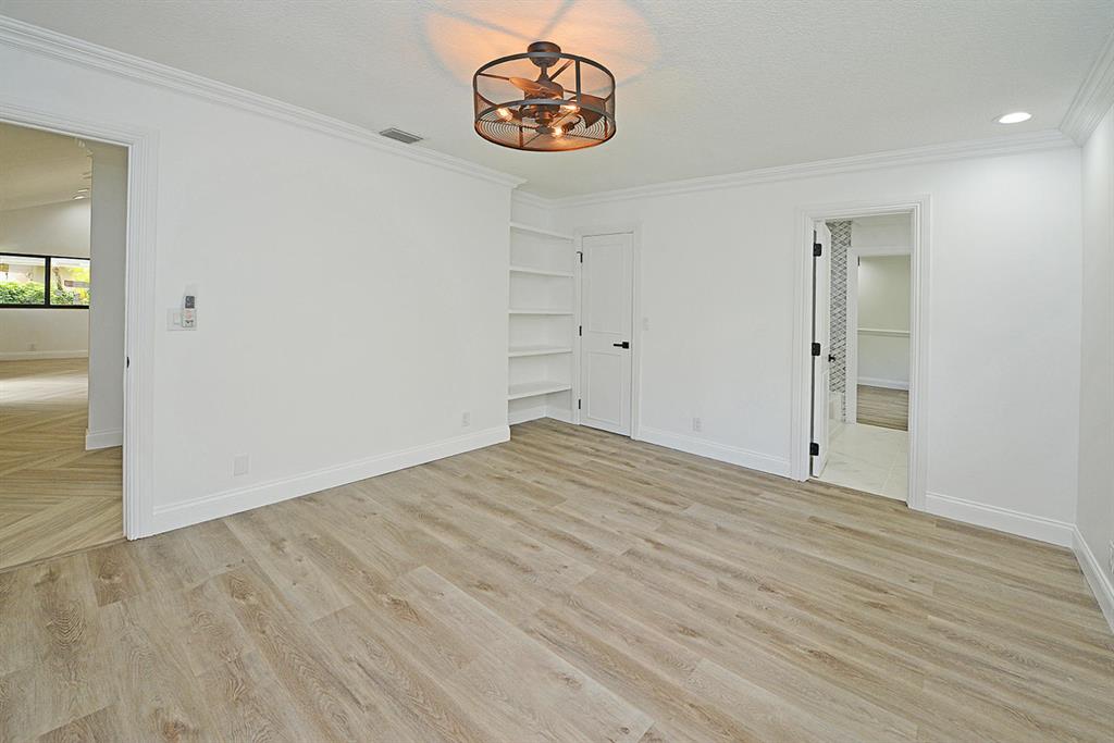 Completely renovated and beautifully redesigned 4 bedroom residence situated on a scenic lake and golf lot in Boca Grove. This home features an open floor plan and is perfect for entertaining, both inside and out. The Chef's Kitchen, which opens to both the living room and family room, boasts quartz countertops, a 48 inch gas cooktop with six burners, custom cabinetry and a farmhouse sink. The luxurious master suite offers his/her closets and a lavish master bath with separate tub. Three guest bedrooms with renovated baths complete the first floor. There is a second story loft with a small balcony and scenic vistas overlooking the golf course. Impact Glass, renovated baths, and a newer (2 yr old) roof, complete the package. Come and experience all that Boca Grove has to offer.