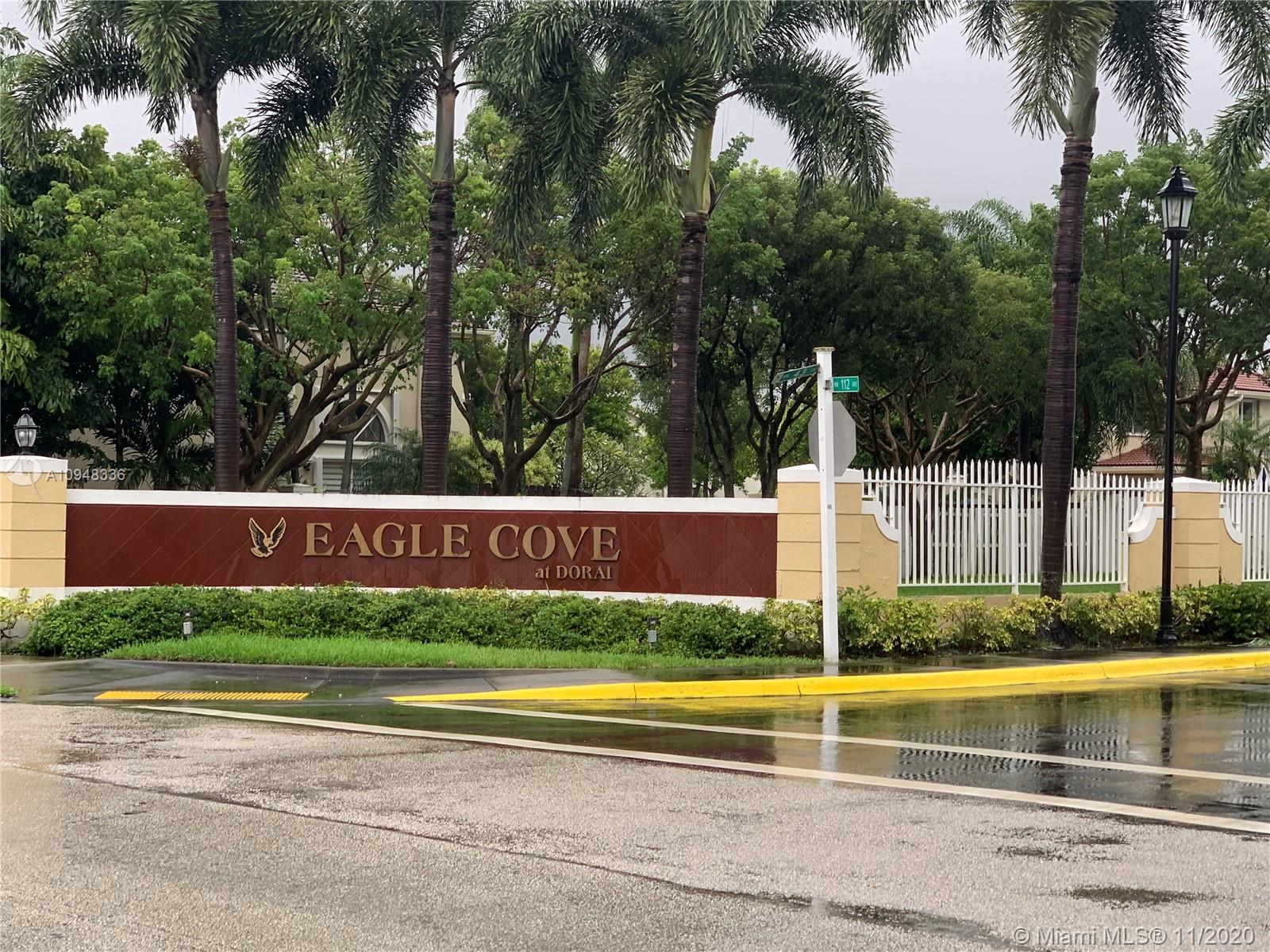 Beautiful 2-story Townhouse in the desirable gated-community of Eagle Cove at Doral. Bright and Spacious with a functional layout floor plan, accommodating 2 Master Suites on upper level and an open concept living-dining-kitchen area on the ground level. The garage has been converted on a Studio or playroom. No carpet, all hard-wood flooring throughout. The community offers a community pool, a green area and controlled gated entrance. One of the cheapest Association fees in Doral. Location, Location, Location, this is a Must See...!
