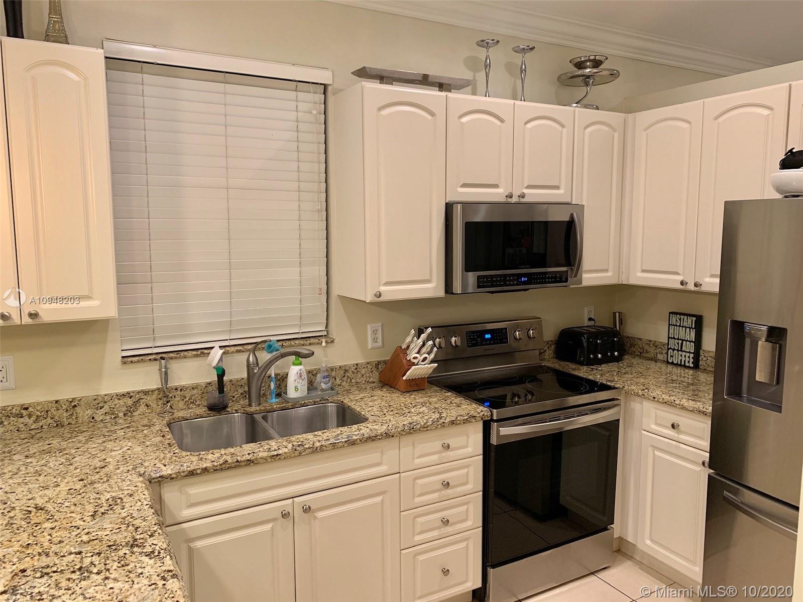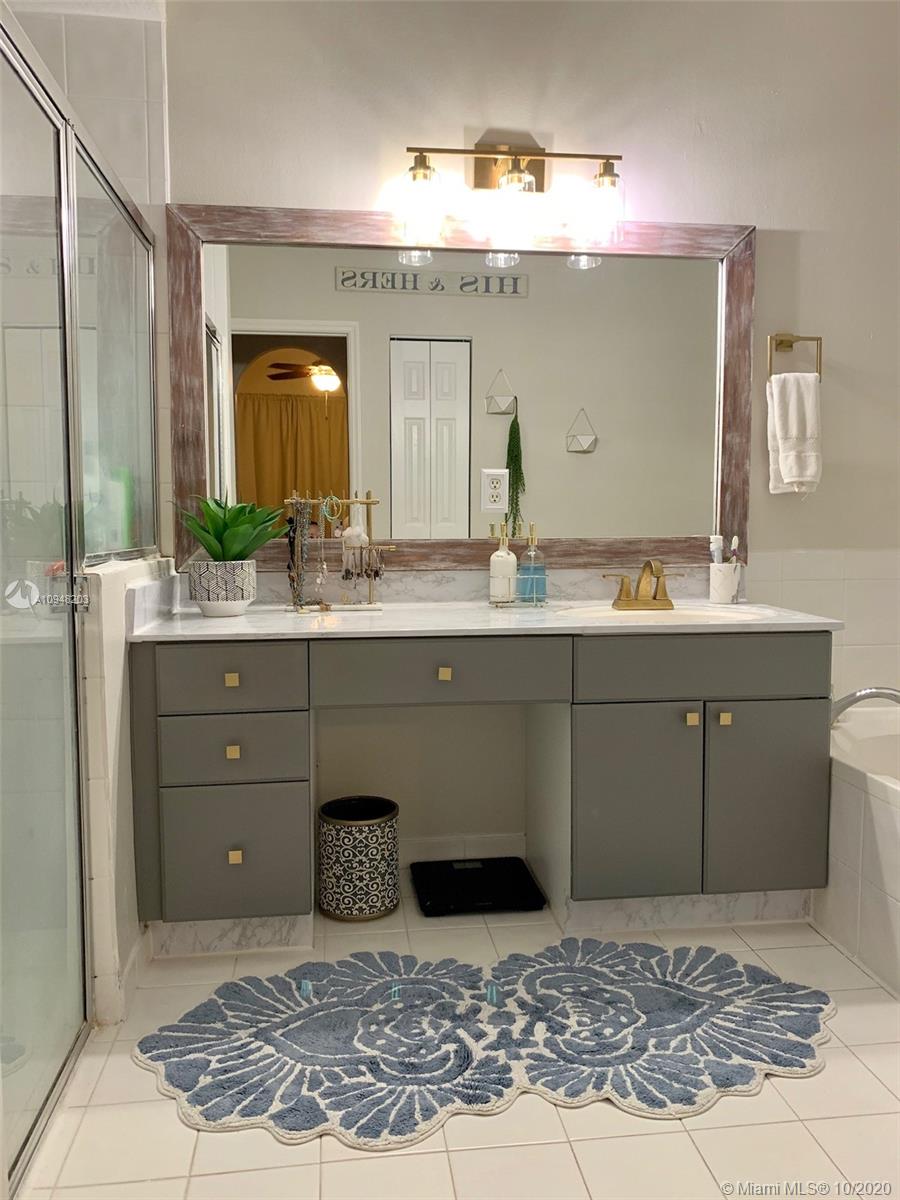 Beautiful 3 bedroom 2 bath home in the gated community of Vizcaya . The kitchen features granite counters with brand new stainless appliances that are less than 2 months old. Nice family room and separate living and dinning area. The master bedroom and bath is generous and has walk in closet, roman tub and separate shower. All closets have built in closet organizers. Laminate flooring installed in the master bedroom and guest bedroom. Recessed lighting throughout the entire family room, living room and kitchen. Crown Molding