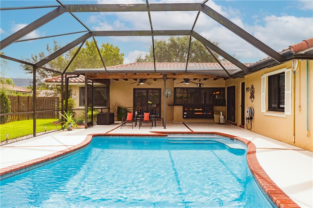 Don't wait! See the only spacious 5/2 with open-concept dining, kitchen and family room in the sought after Oakwood community. Feel safe with the newer impact windows and doors; plus a 6ft. wooden privacy fence that encloses a beautifully landscaped backyard. Behind the gates, relax and take refuge from the hustle and bustle of everyday life in the newly resurfaced, custom, screened, solar heated pool. The split bedroom floorplan with the primary in-suite bedroom and bath off the formal living room is ideally suited for a family. Any of the additional bedrooms could be used as 'home office space, gym, or hobby room. Don't procrastinate...this one won't last. And no HOA. Call listing agent's cell number for an appointment. 24 Hour notice needed.