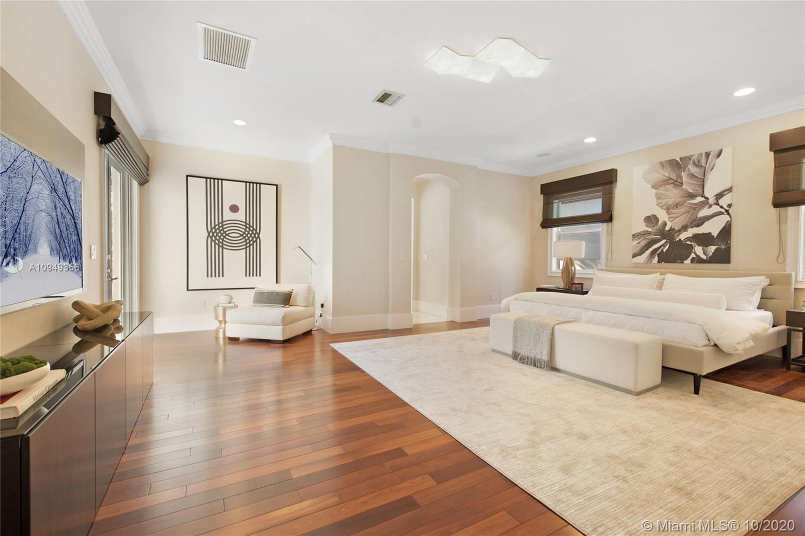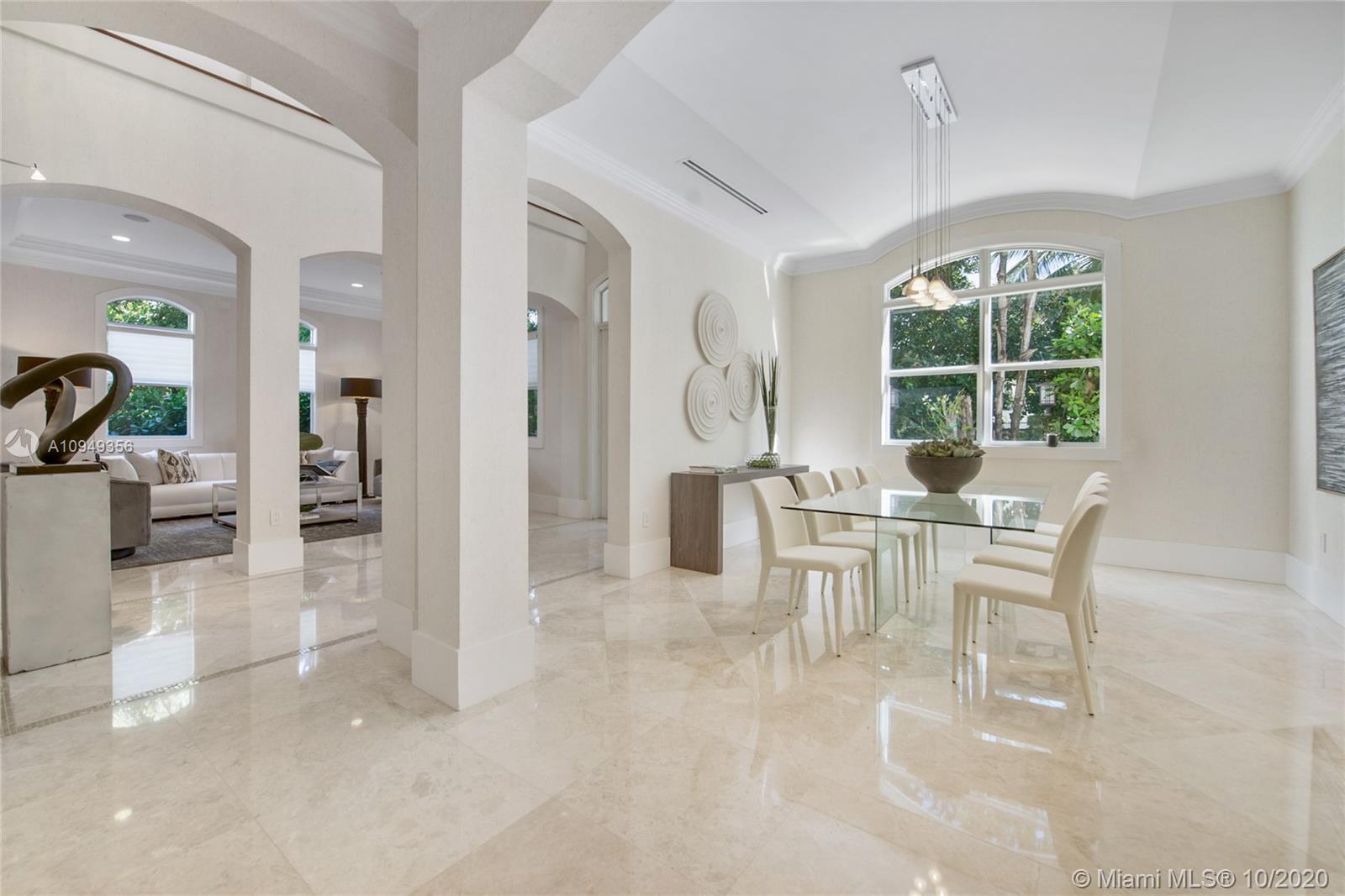 Stunning, magazine quality home in prestigious North Coconut Grove. Walk to bayfront parks & marinas, yet located at one of the highest sea-level elevations in South Florida. Totally walled & gated for ultra-privacy. Light-filled living spaces offer double-height ceilings and a blending of classic architectural details with a modern vibe. Expansive formal living & dining rooms for entertaining. Family room with custom built-ins, opens to the spectacular high-end kitchen w/white-lacquered cabinetry, walk-in pantry, professional gas range & adjacent breakfast area. Incredible master suite features his/hers walk-in closets (hers: 12’ X 19’), luxurious bath w/soaking tub & private terrace overlooking the garden & tranquil pool. Minutes to the Grove village center, MIA, downtown & the Beaches.