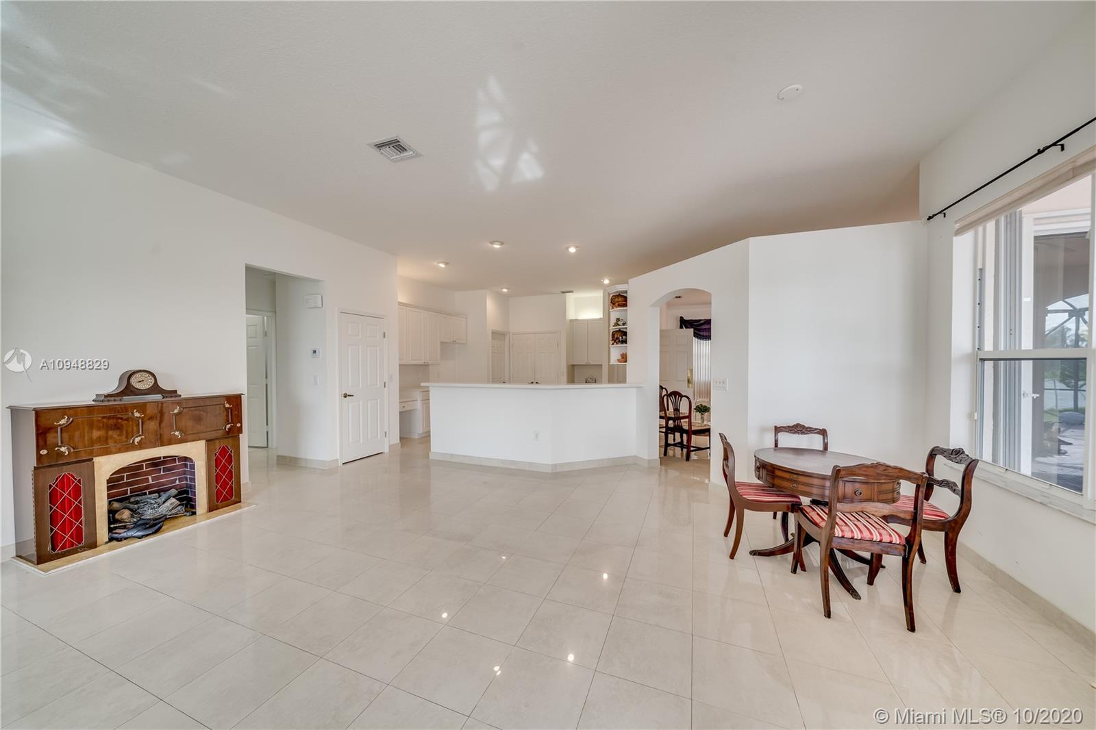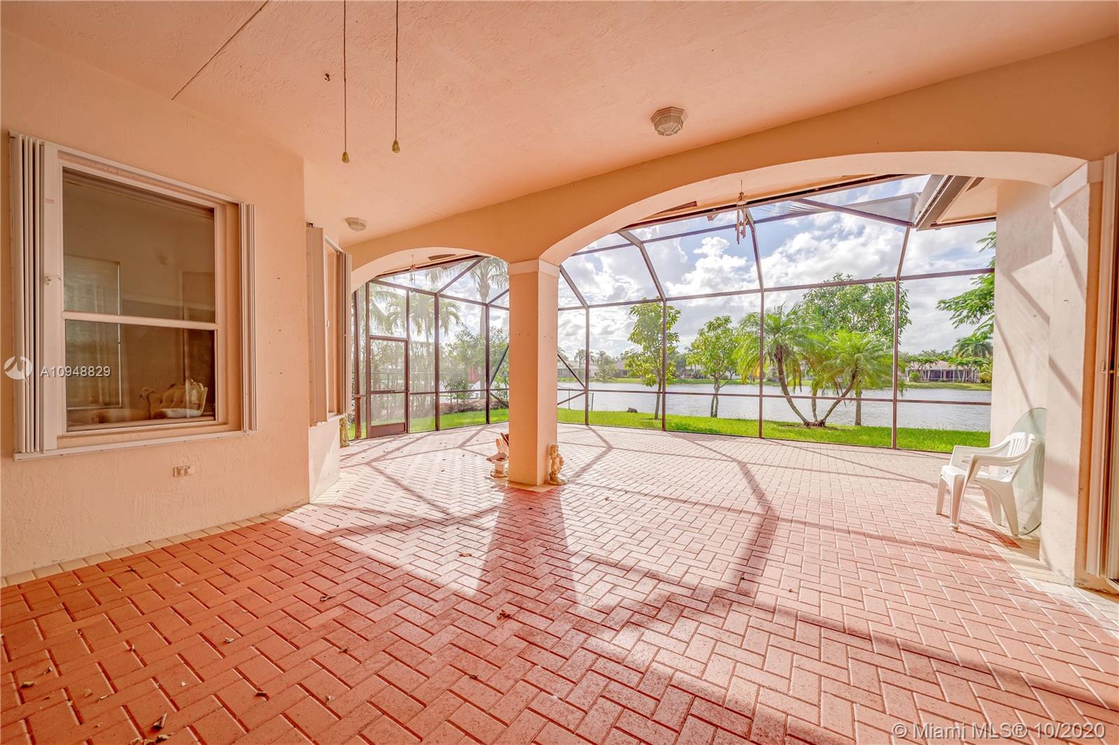 Amazing water views where you can watch the beautiful sunsets from almost every room in this 4/3+ an office in fabulous gated Estates of Pembroke Shores. Just over 3k sqft in this open floor plan with gorgeous tile throughout. Large master suite with sitting areas and dual walk-in closets and spacious master bath. Kitchen overlooks the spacious family room featuring Corian countertops, white cabinets, and appliances. Big secondary bedrooms. Big extended screened in patio with amazing water views. New A/C, accordion shutters, and the list goes on.