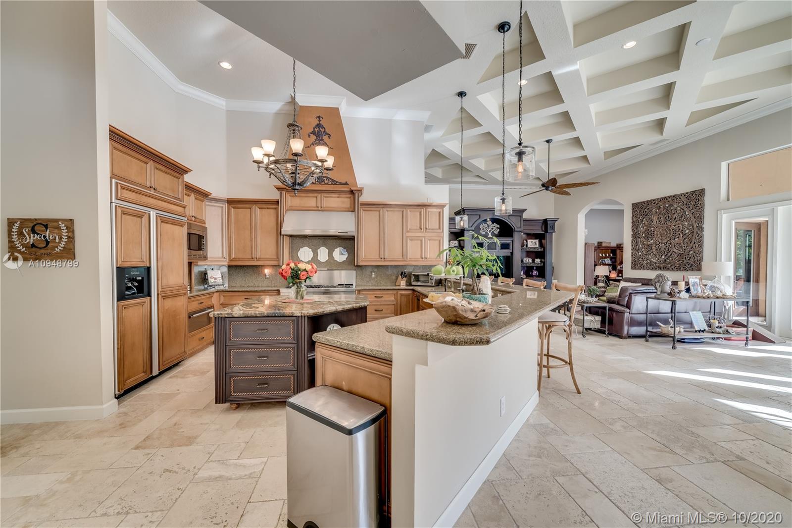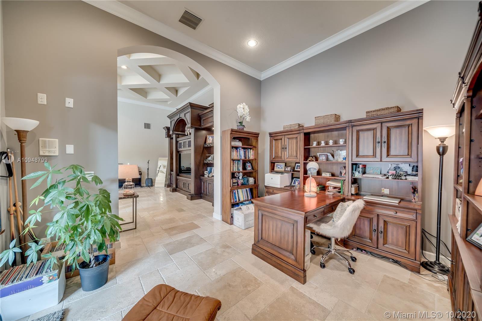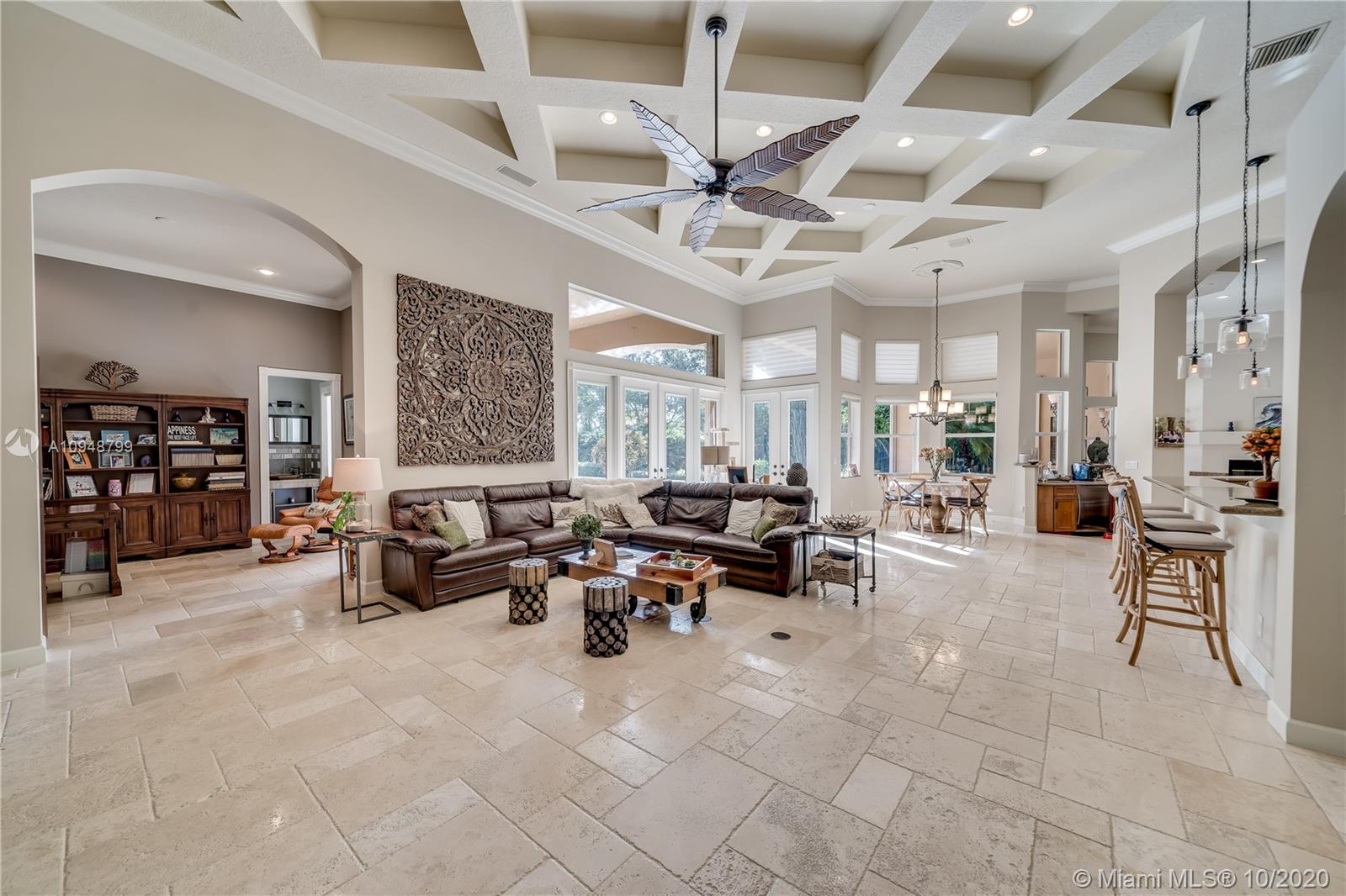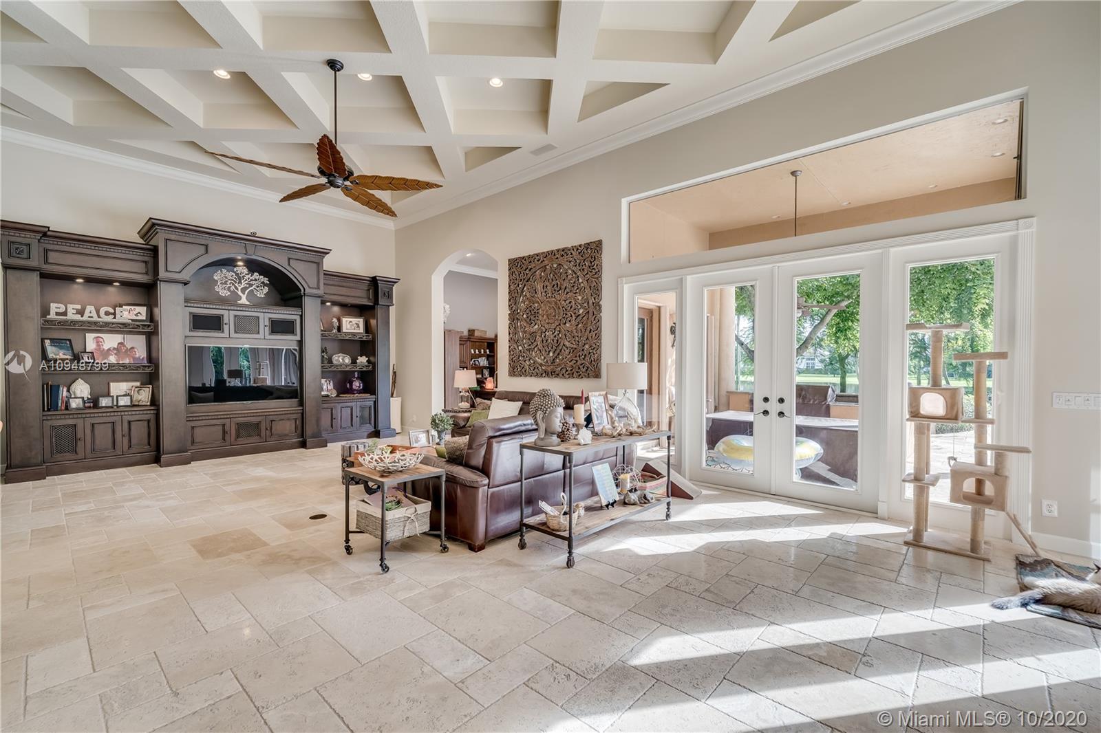 Wow just under 5k sqft of living space in this 6/6.5+office on a gorgeous builder's acre water lot in fabulous Emerald Springs. Expansive & dramatic open floor plan with high ceilings, beautiful Jerusalem stone floors in all main living areas, office & one bedroom. Open chef's kitchen overlooks the family room& breakfast nook, & features center prep island, gas stove, double oven, bread warmer, microwave, and walk-in pantry. Large master suite features sitting area, plantation shutters, wood flooring, two huge walk-in closets with built-in's and grand mater bath. Big secondary bedrooms 2 that include en-suite. Mediterranean style backyard w/summer kitchen, oversized pool, and covered patio overlooking the lake. Whole house generator, accordion shutters, basketball court and more.