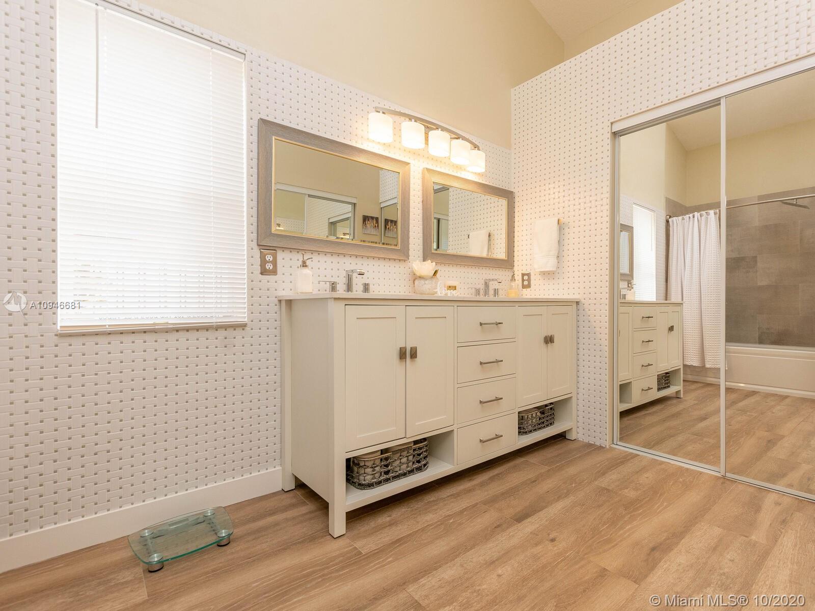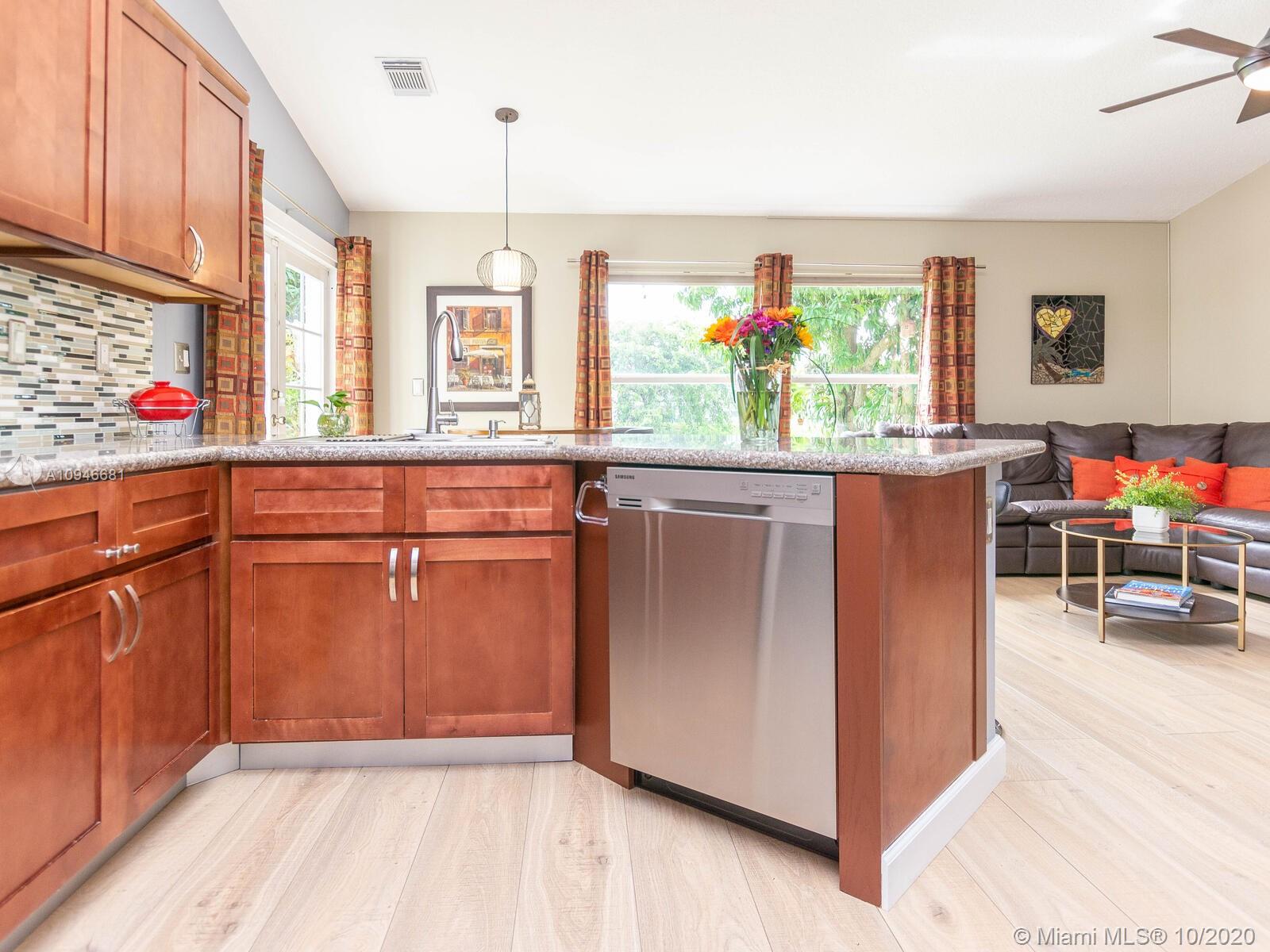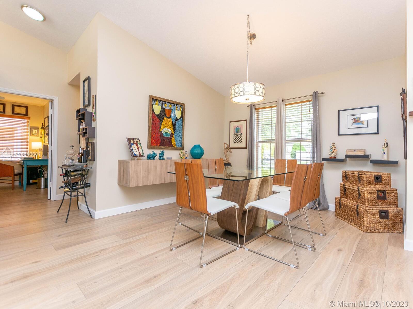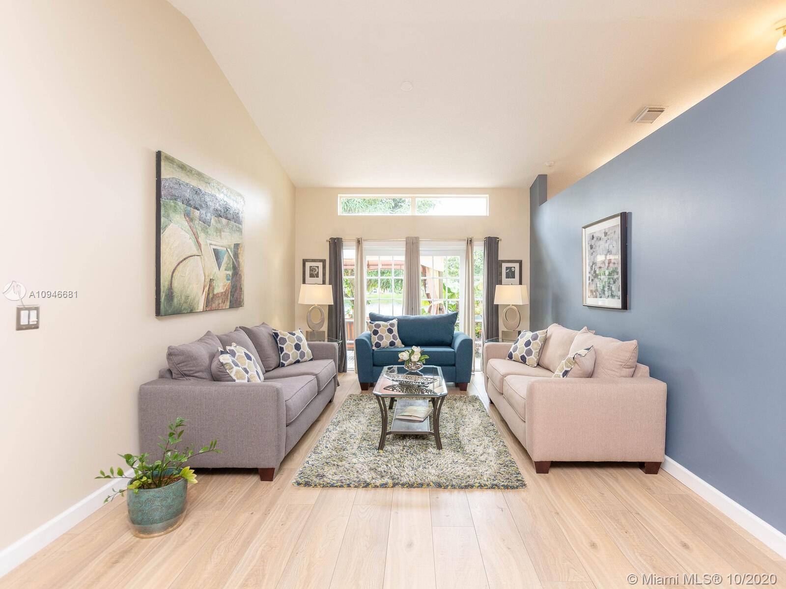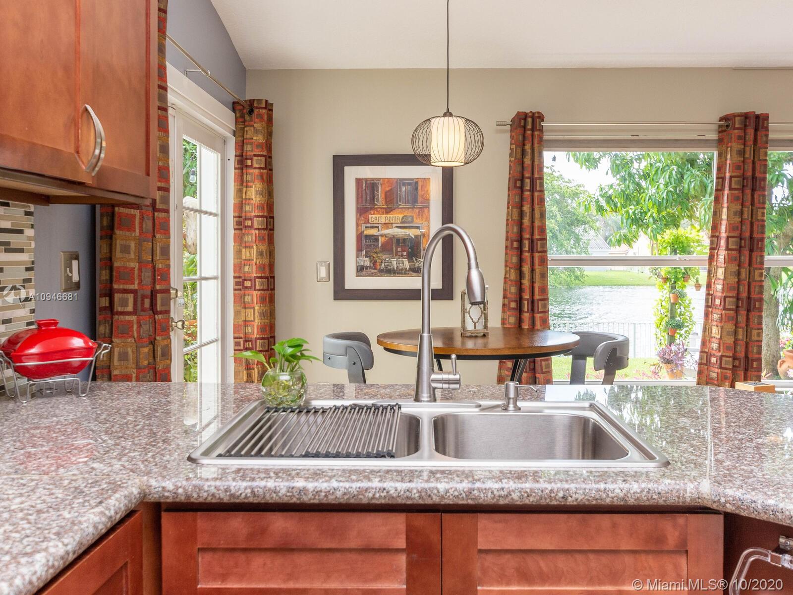 Stunning water front home in the quiet Trilogy neighborhood in Miramar. This modern updated home features 3 bedrooms, 2 fully upgraded bathrooms, updated wooden kitchen cabintets w/granite countertops and stainlesss steel appliances, formal dining room opens to formal living and 2 car garage. The bathrooms have top of the line fixtures and fittings, floors have water resistant laminate throughout the house. The hugh backyard is paved and has fruit/mango trees and healthy tropical plants which gives a tropical feel while enjoying the spectular view of the lake. Home is freshly painted and just waiting for the perfect family. Roof is approximately 8 years old. Sellers are taking their Washer and Dryer. You have to see this property. HOA is only $60 per month.
