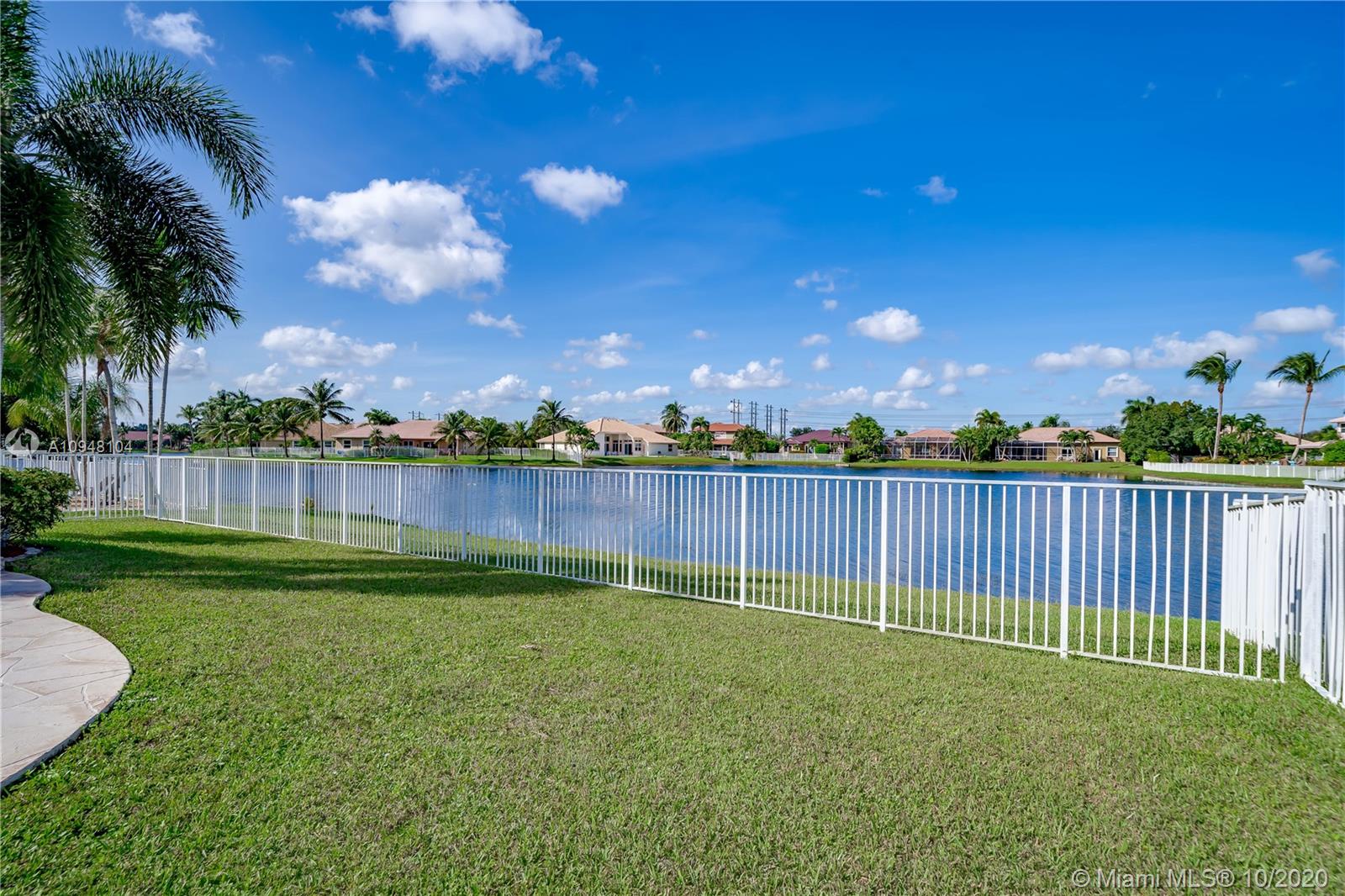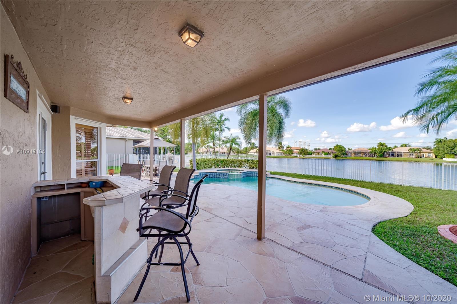 WIDE LAKE VIEW** best location on the lake, Guard Gated Community, pool & jacuzzi. Great for entertaining. Large yard and covered area w/ Summer Kitchen & Bar. Lots of windows with great View. 1st floor: Living Room, Dining room, Family Room, Granite, Wood, Stainless Steel Kitchen w breakfast area. Plantation Shutters, Tile floors, powder room. 2nd level: wood floors, large master suite plus additional 3 beds 2 full baths. AC 2017, ROOF 2007, New water heater 2020, Accordion Shutters on 2nd floor, Panels for 1st floor. Low HOA $205 /mnth includes Basic Cable, Alarm, Tennis, Park.