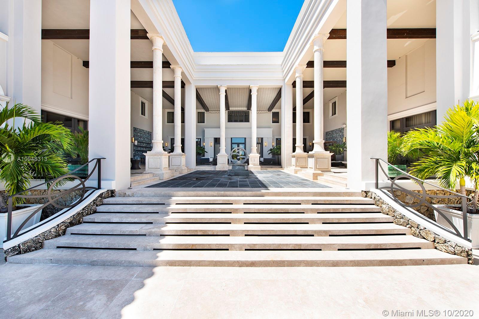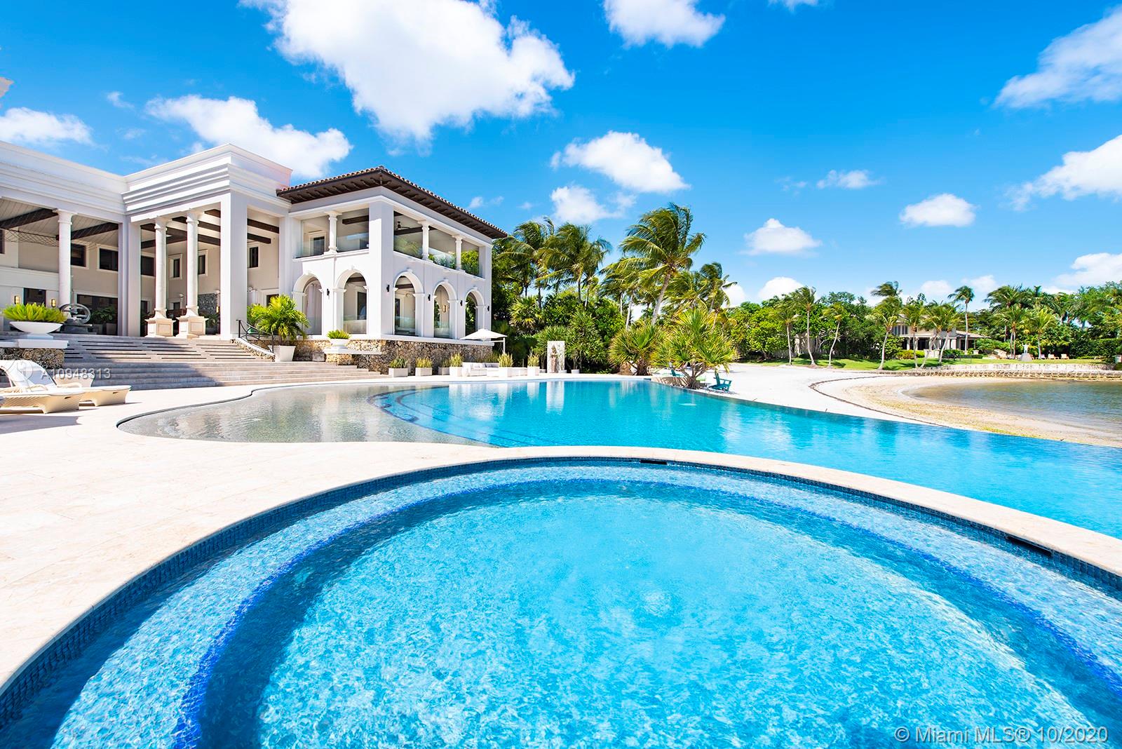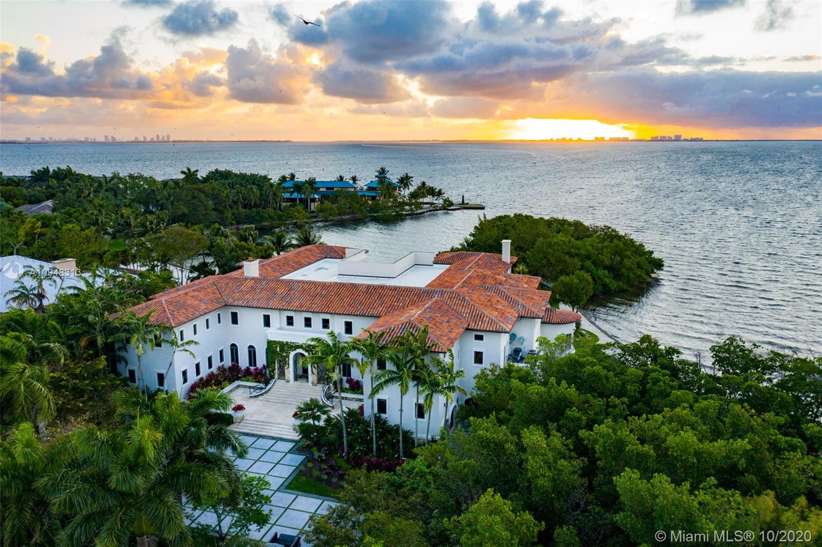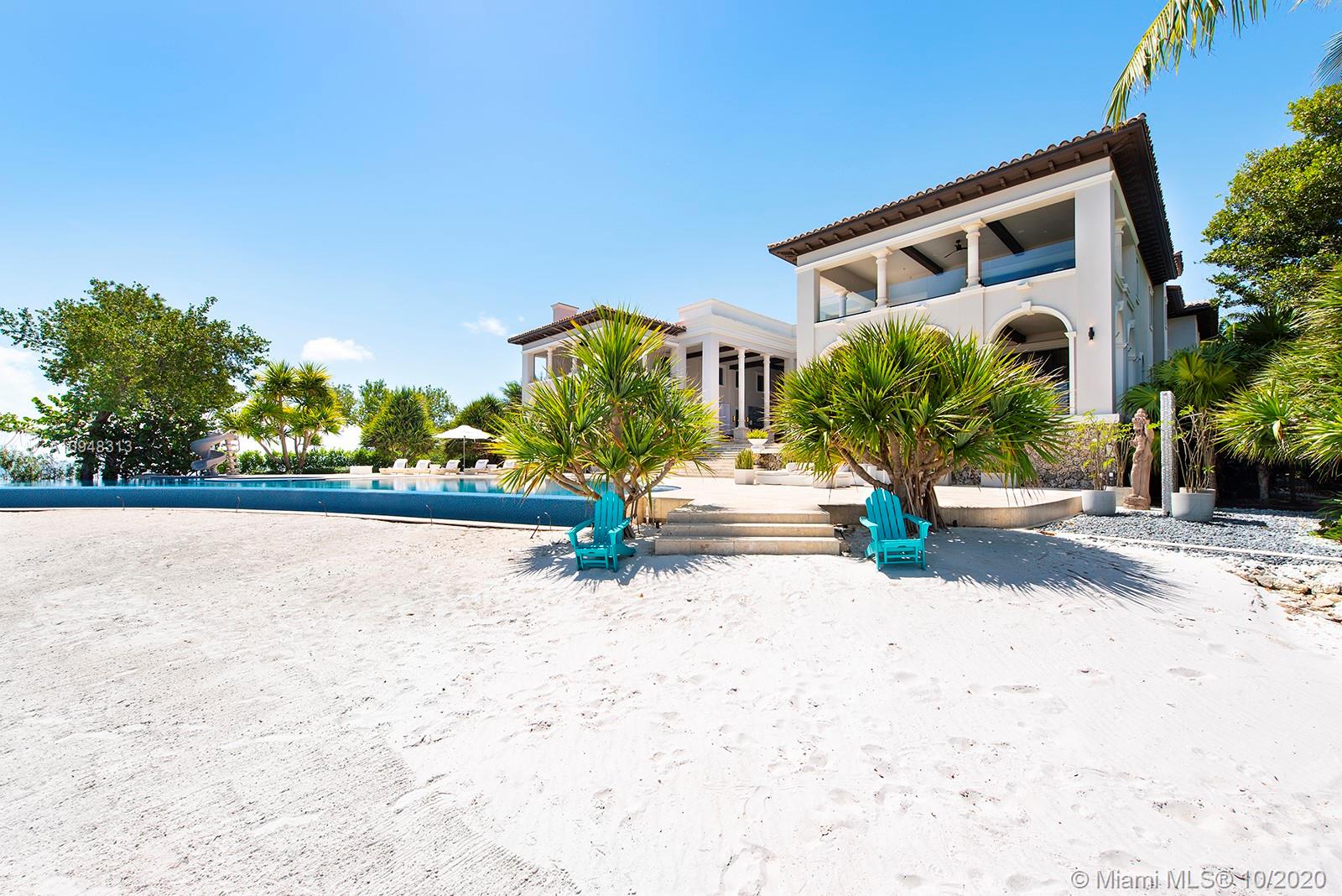 Paradise island estate complete with your very own sandy beach in the most exclusive gated community, Tahiti Beach. Find your secluded luxury lifestyle here. Located on a 1.5 acre peninsula with over 530 feet of open bay views. One of only 26 residences on this private island. Mesmerizing unobstructed views from nearly every corner. Nothing short of grand, the resort style backyard features marble throughout and cathedral inspired covered terraces equipped to entertain. 10 bedrooms, 10.5 bathrooms, designed by architect Ramon Pacheco and completely renovated in 2016. Soaring ceilings, elevator, fully loaded theater, heated pool. Your paradise awaits.