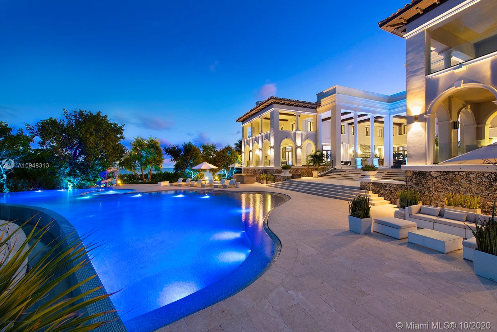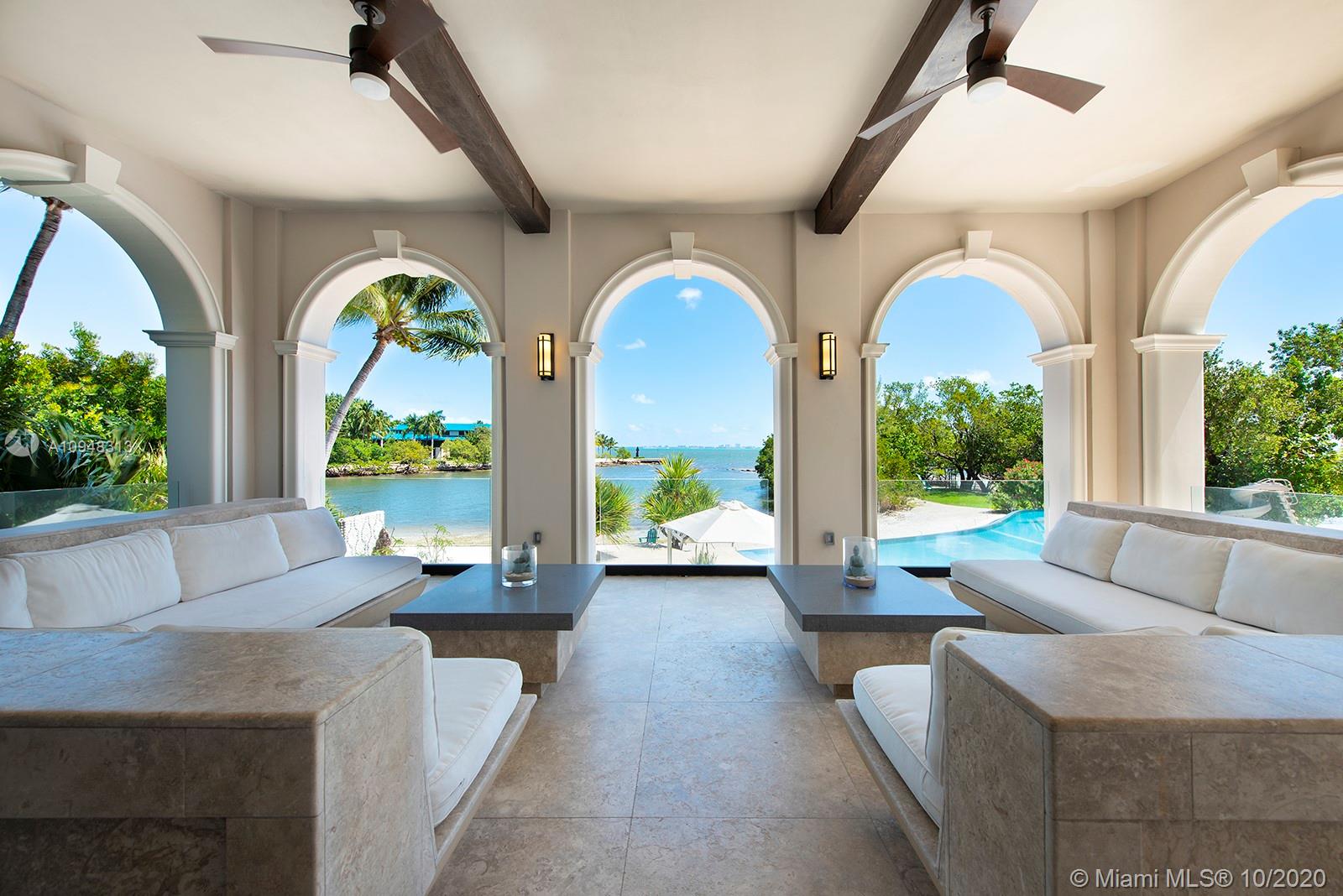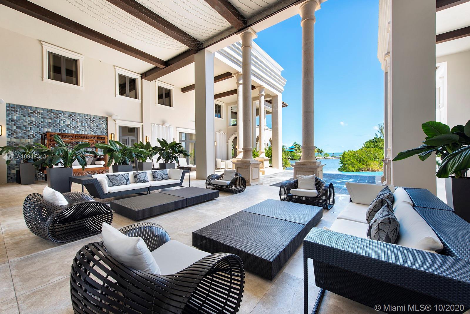 Paradise island estate complete with your very own sandy beach in the most exclusive gated community, Tahiti Beach. Find your secluded luxury lifestyle here. Located on a 1.5 acre peninsula with over 530 feet of open bay views. One of only 26 residences on this private island. Mesmerizing unobstructed views from nearly every corner. Nothing short of grand, the resort style backyard features marble throughout and cathedral inspired covered terraces equipped to entertain. 10 bedrooms, 10.5 bathrooms, designed by architect Ramon Pacheco and completely renovated in 2016. Soaring ceilings, elevator, fully loaded theater, heated pool. Your paradise awaits.
