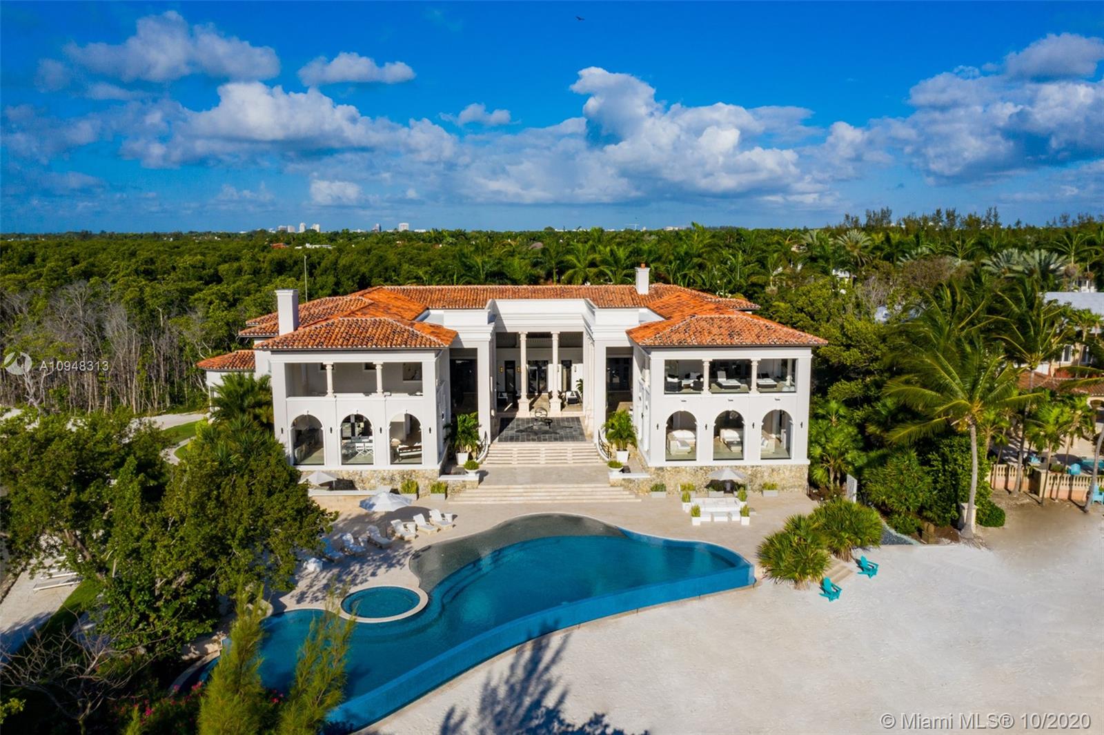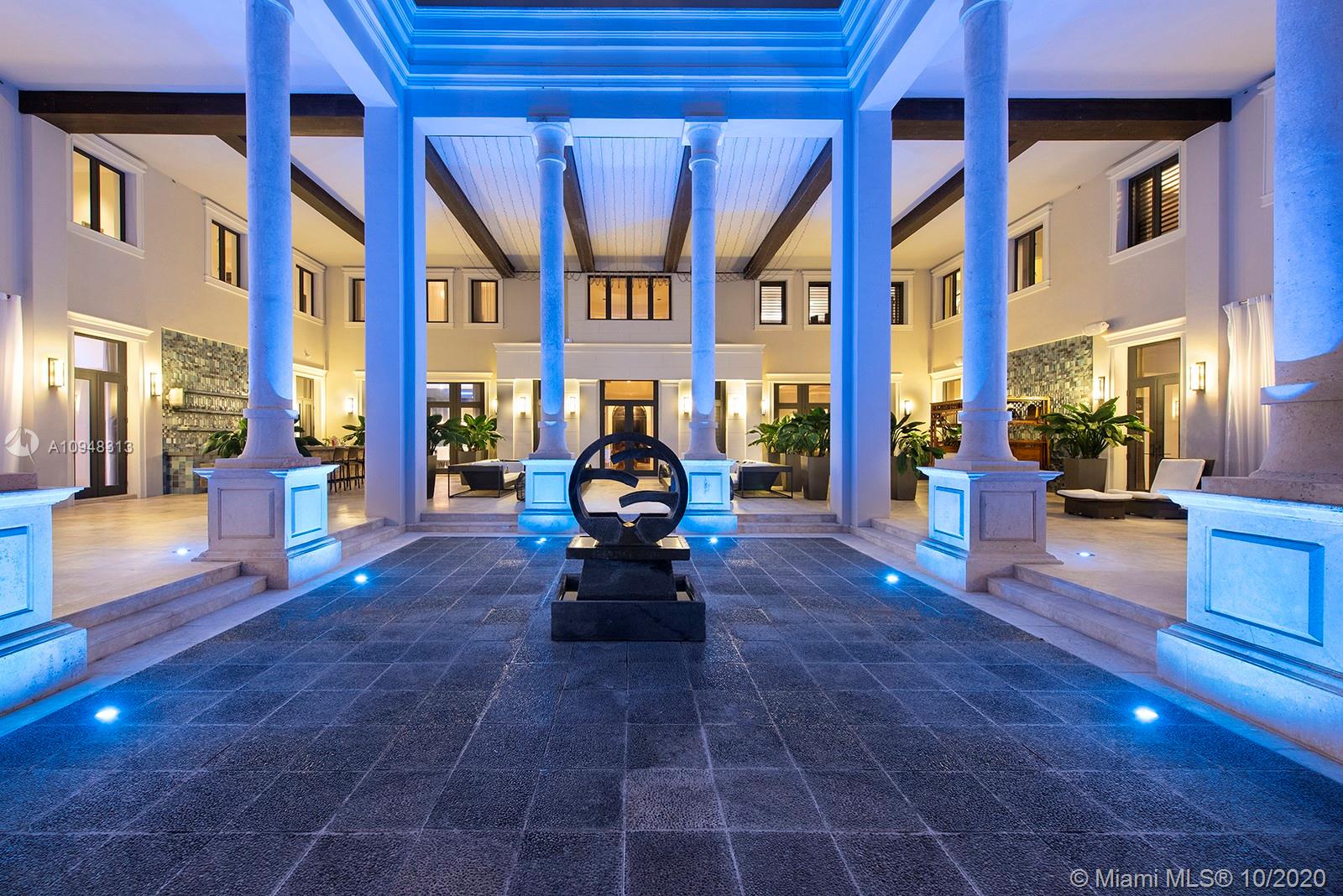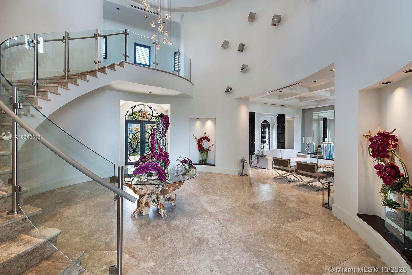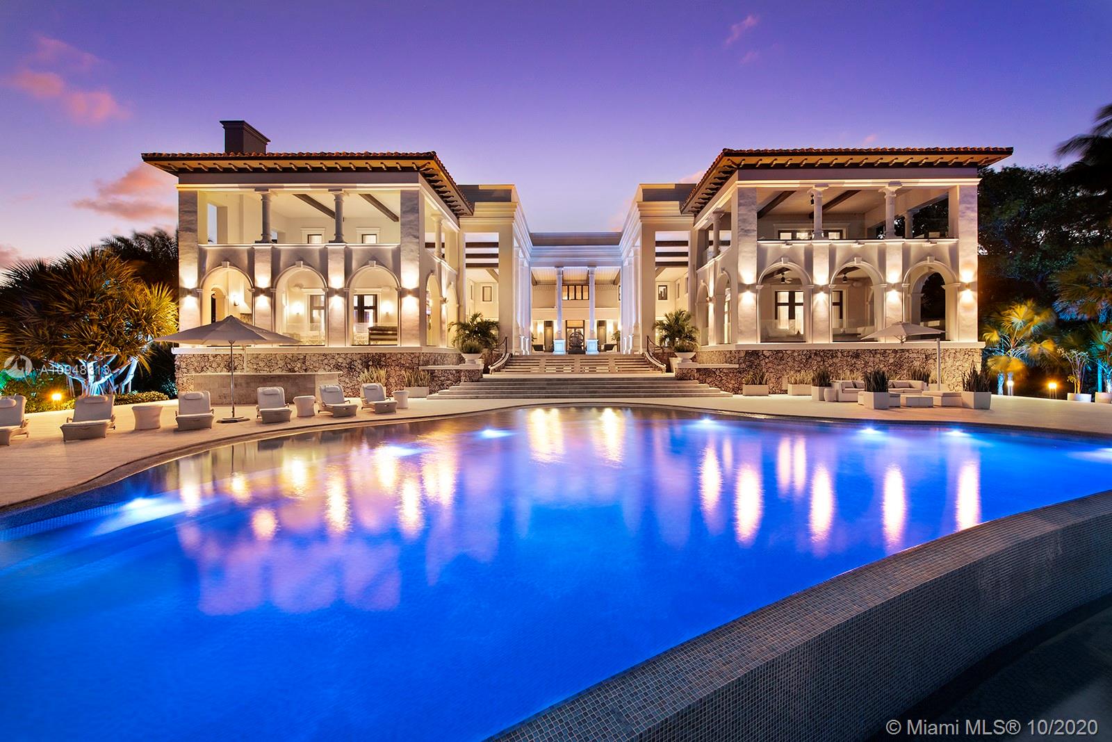 Paradise island estate complete with your very own sandy beach in the most exclusive gated community, Tahiti Beach. Find your secluded luxury lifestyle here. Located on a 1.5 acre peninsula with over 530 feet of open bay views. One of only 26 residences on this private island. Mesmerizing unobstructed views from nearly every corner. Nothing short of grand, the resort style backyard features marble throughout and cathedral inspired covered terraces equipped to entertain. 10 bedrooms, 10.5 bathrooms, designed by architect Ramon Pacheco and completely renovated in 2016. Soaring ceilings, elevator, fully loaded theater, heated pool. Your paradise awaits.