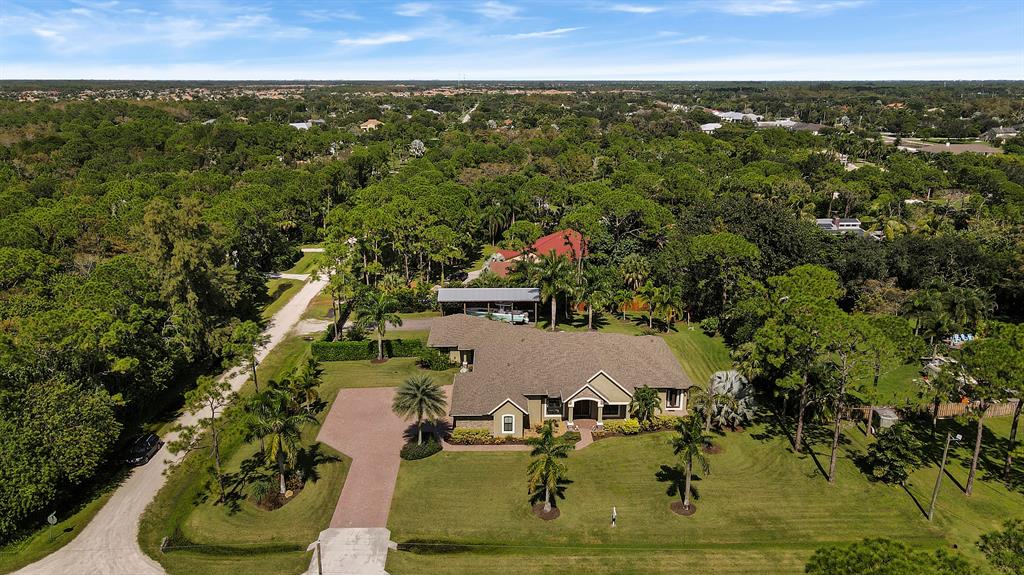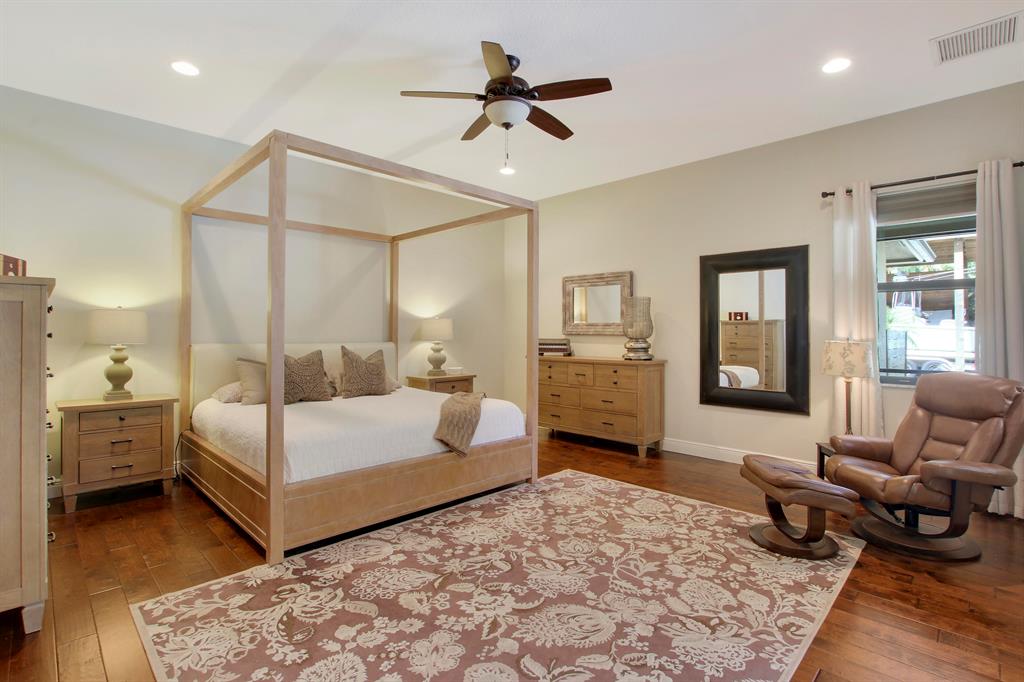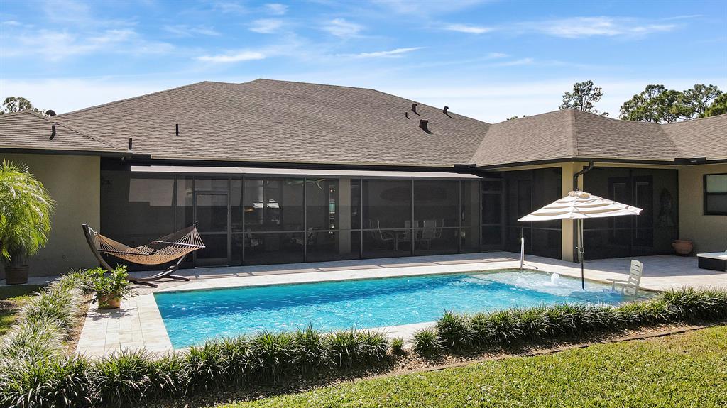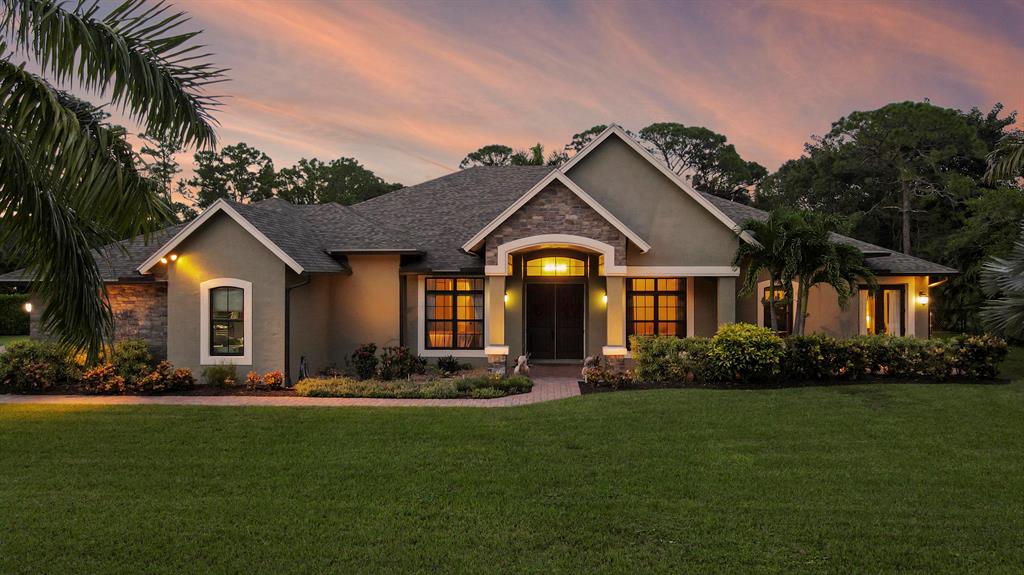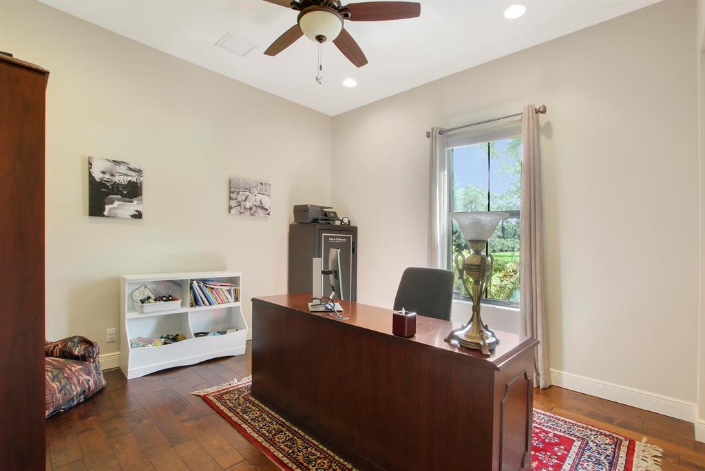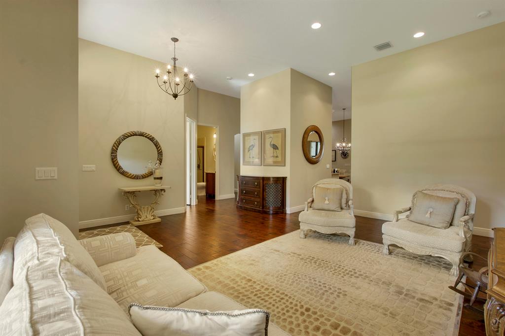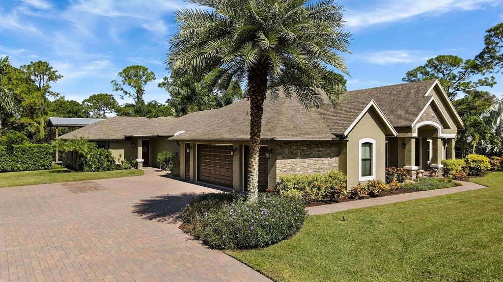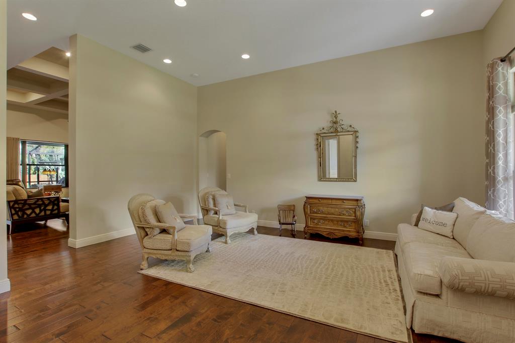 This stunning estate home is built on an oversized 1.32 acre corner lot on a paved road in the highly desirable community of Palm Beach Country Estates. This 6 bedroom, 5 bath pool home has a formal living room, spacious family room, complete custom chefs kitchen, 2 huge master suites, impact windows, 20 foot ceilings and gorgeous wood floors throughout. The gourmet custom kitchen boasts custom soft close cabinets, granite counters, GE Monogram series 6 burner with griddle, Frigidaire professional full size refrigerator and freezer, Custom Thermador built-in coffee/espresso maker, ice maker, Haier wine cooler, custom backsplash and huge kitchen Island with electric, sink and cabinets. Both master suites have custom designed bathrooms and huge custom built walk-in closets for any wardrobe.
