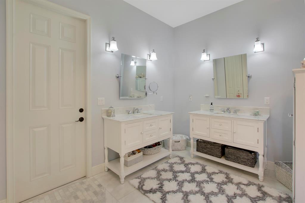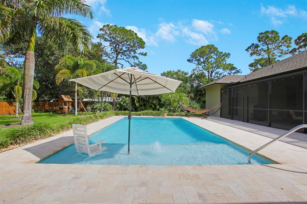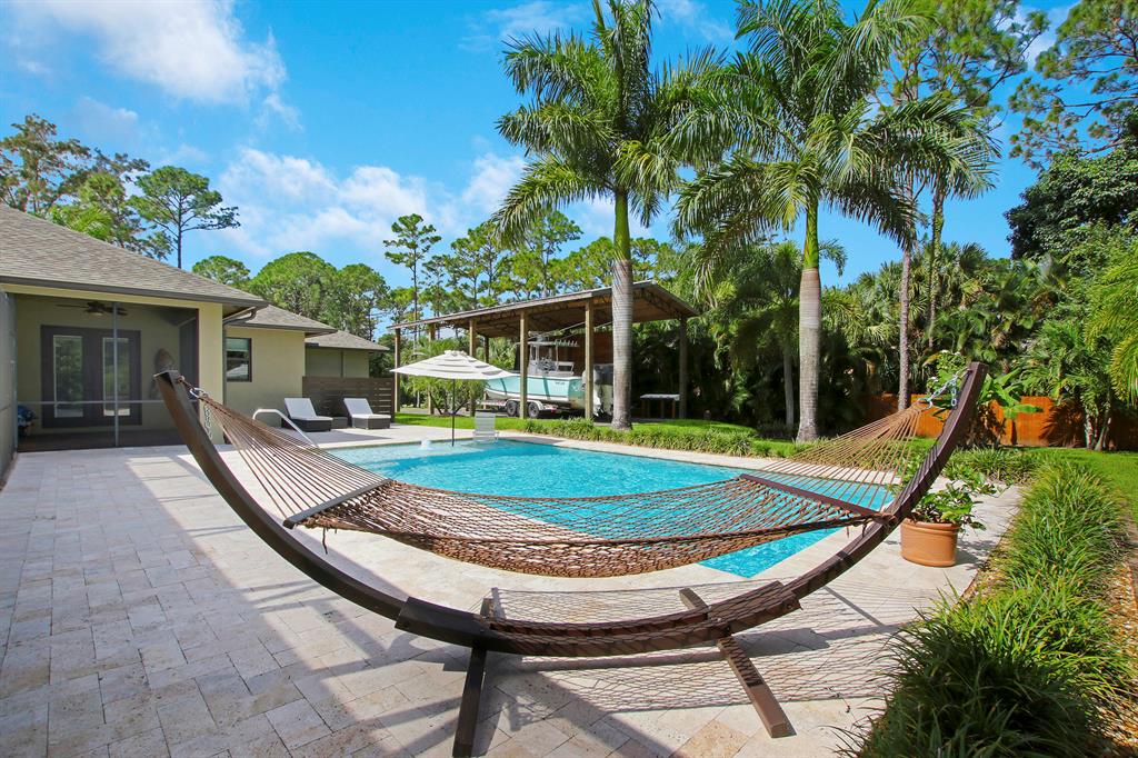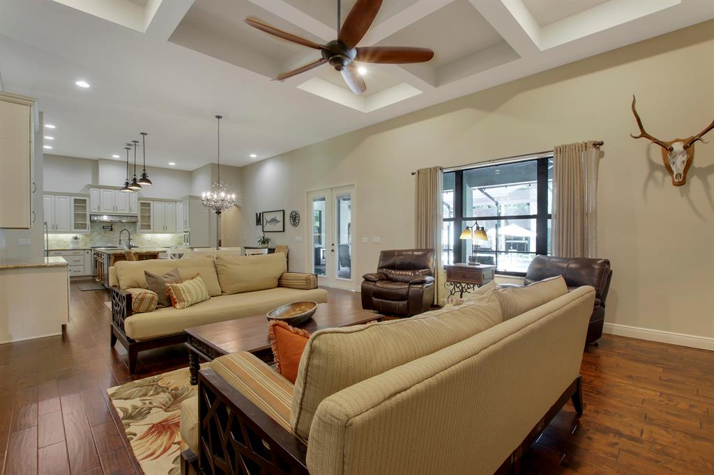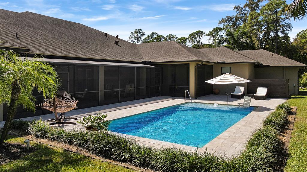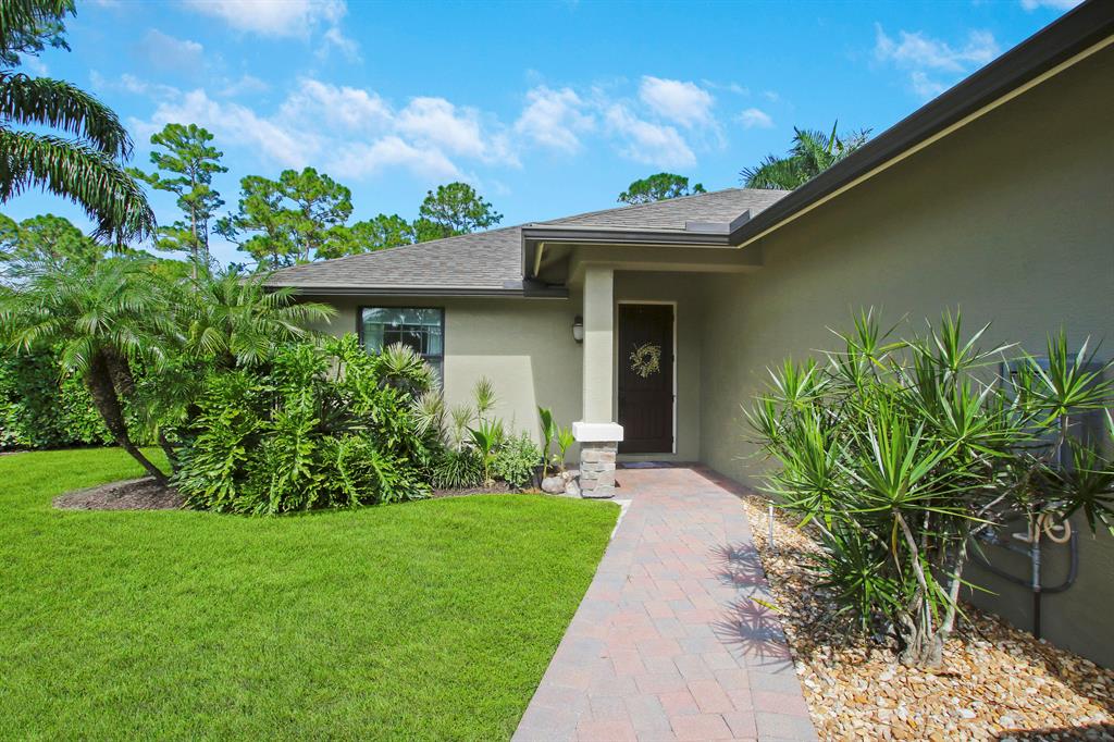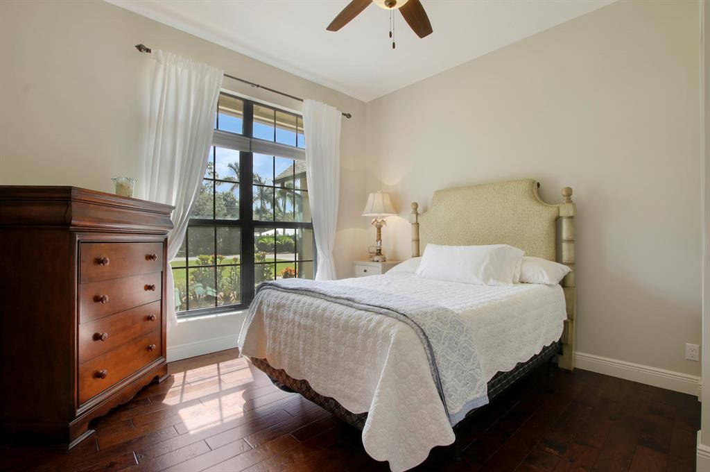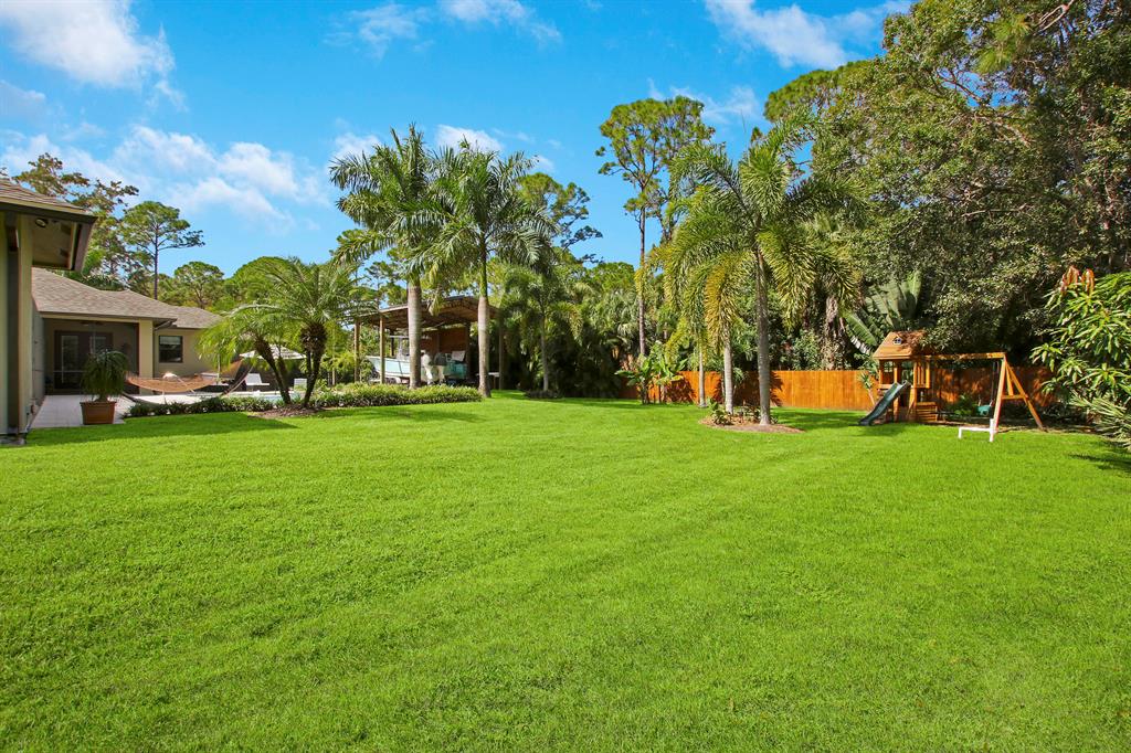 This stunning estate home is built on an oversized 1.32 acre corner lot on a paved road in the highly desirable community of Palm Beach Country Estates. This 6 bedroom, 5 bath pool home has a formal living room, spacious family room, complete custom chefs kitchen, 2 huge master suites, impact windows, 20 foot ceilings and gorgeous wood floors throughout. The gourmet custom kitchen boasts custom soft close cabinets, granite counters, GE Monogram series 6 burner with griddle, Frigidaire professional full size refrigerator and freezer, Custom Thermador built-in coffee/espresso maker, ice maker, Haier wine cooler, custom backsplash and huge kitchen Island with electric, sink and cabinets. Both master suites have custom designed bathrooms and huge custom built walk-in closets for any wardrobe.