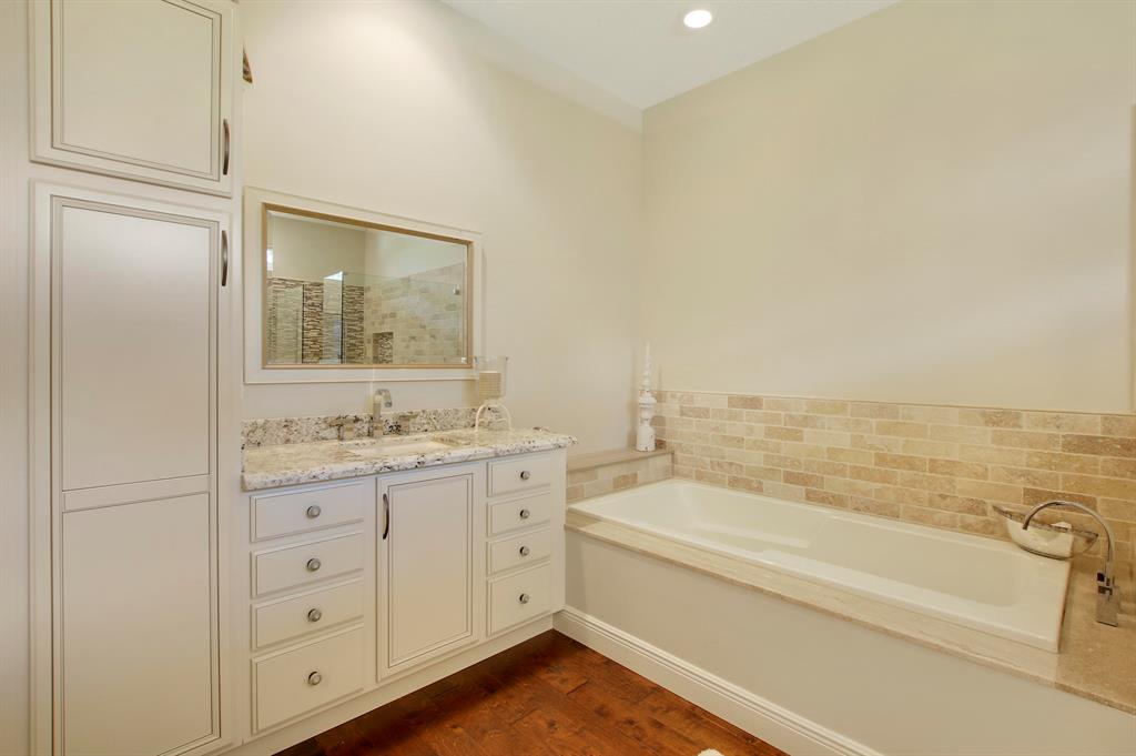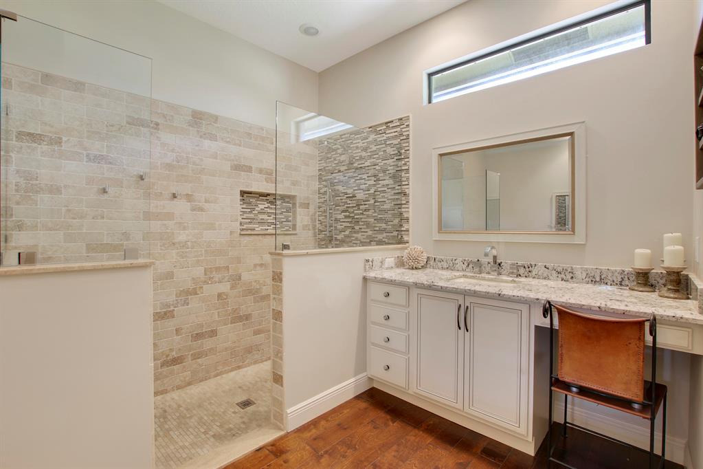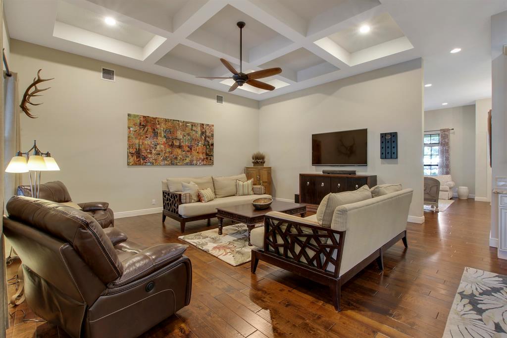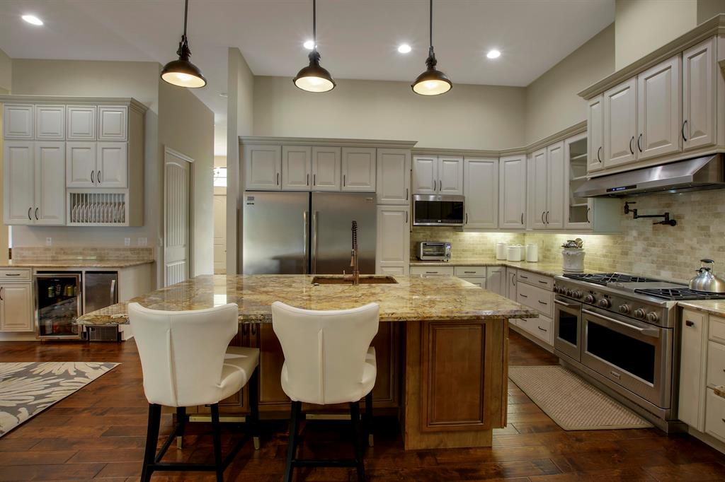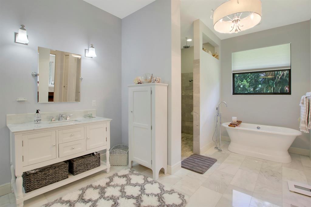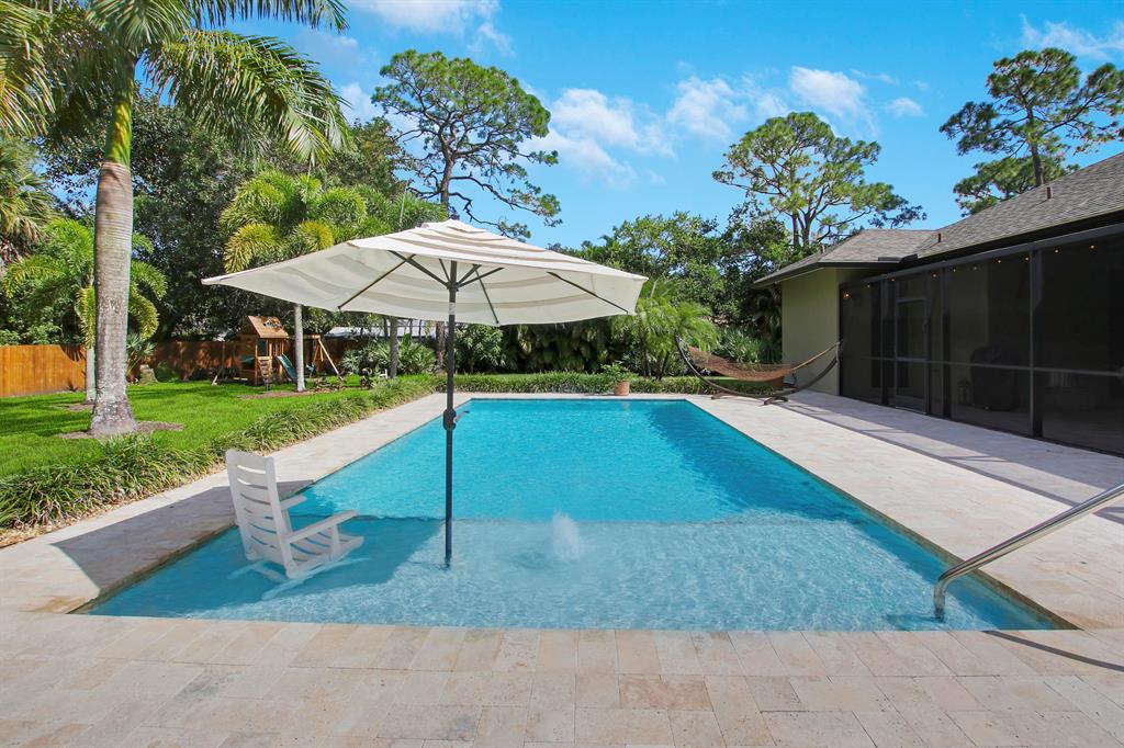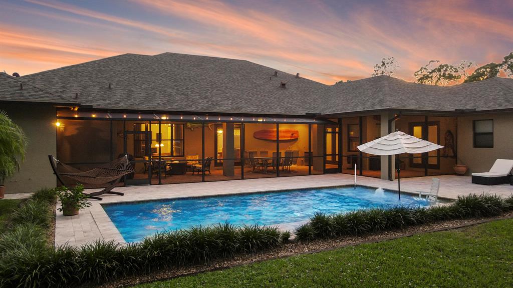 This stunning estate home is built on an oversized 1.32 acre corner lot on a paved road in the highly desirable community of Palm Beach Country Estates. This 6 bedroom, 5 bath pool home has a formal living room, spacious family room, complete custom chefs kitchen, 2 huge master suites, impact windows, 20 foot ceilings and gorgeous wood floors throughout. The gourmet custom kitchen boasts custom soft close cabinets, granite counters, GE Monogram series 6 burner with griddle, Frigidaire professional full size refrigerator and freezer, Custom Thermador built-in coffee/espresso maker, ice maker, Haier wine cooler, custom backsplash and huge kitchen Island with electric, sink and cabinets. Both master suites have custom designed bathrooms and huge custom built walk-in closets for any wardrobe.
