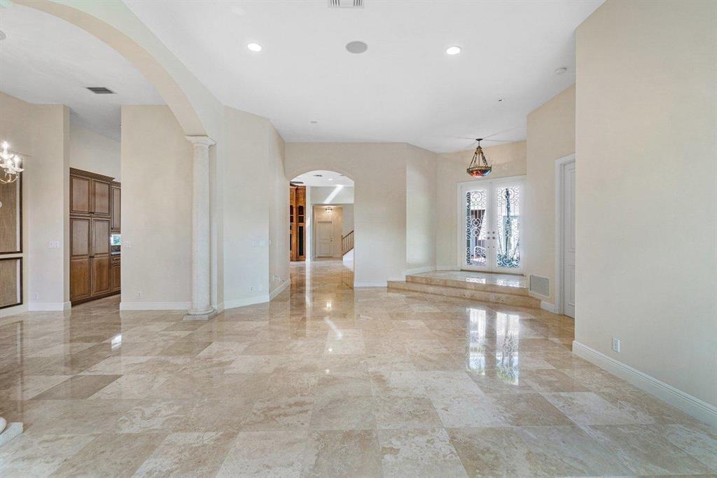 Country Club living at its finest! Gorgeous Toll Brothers 5/4.5 Courtyard Estate Home featuring a Grand entrance through the Iron Gate Doors. Your recently refinished courtyard freeform pool creates a private oasis setting.The pool house/cabana/in-law suite with full bath is perfect for many needs. It also has a built in grill and bar right outside which is perfect for entertaining! Enter into your new home with marble floors throughout! Master bedroom is downstairs and very spacious with huge closets with built-ins and a master bathroom you will love! Custom French Doors throughout with pocket retractable screens. Beautiful Natural wood built-in cabinets. Gourmet kitchen features granite countertops, wall oven, brand new natural gas cooktop. The formal dining room features