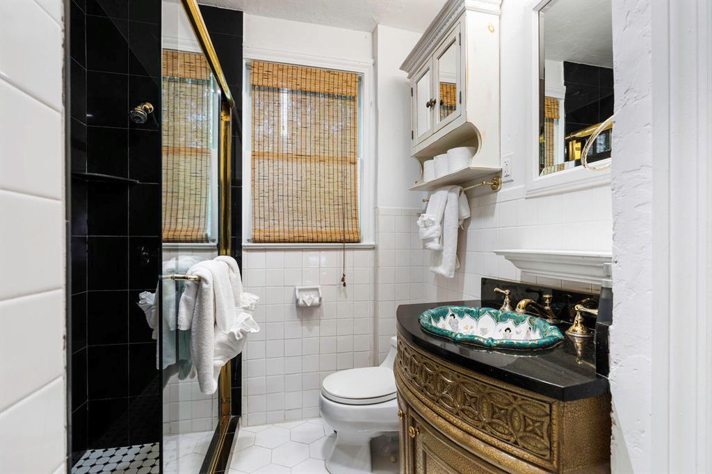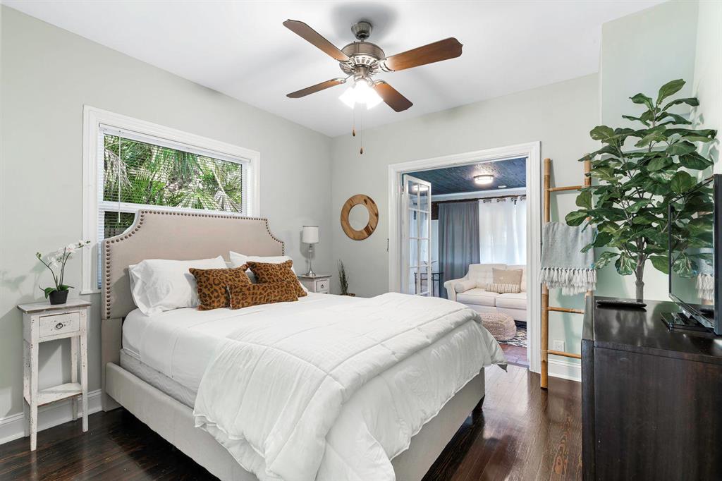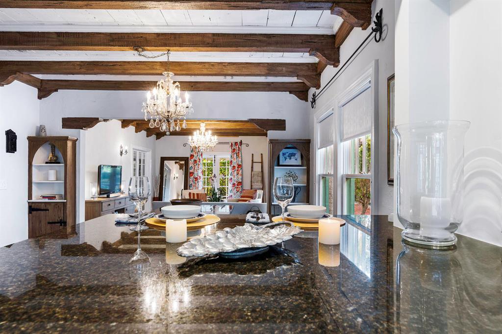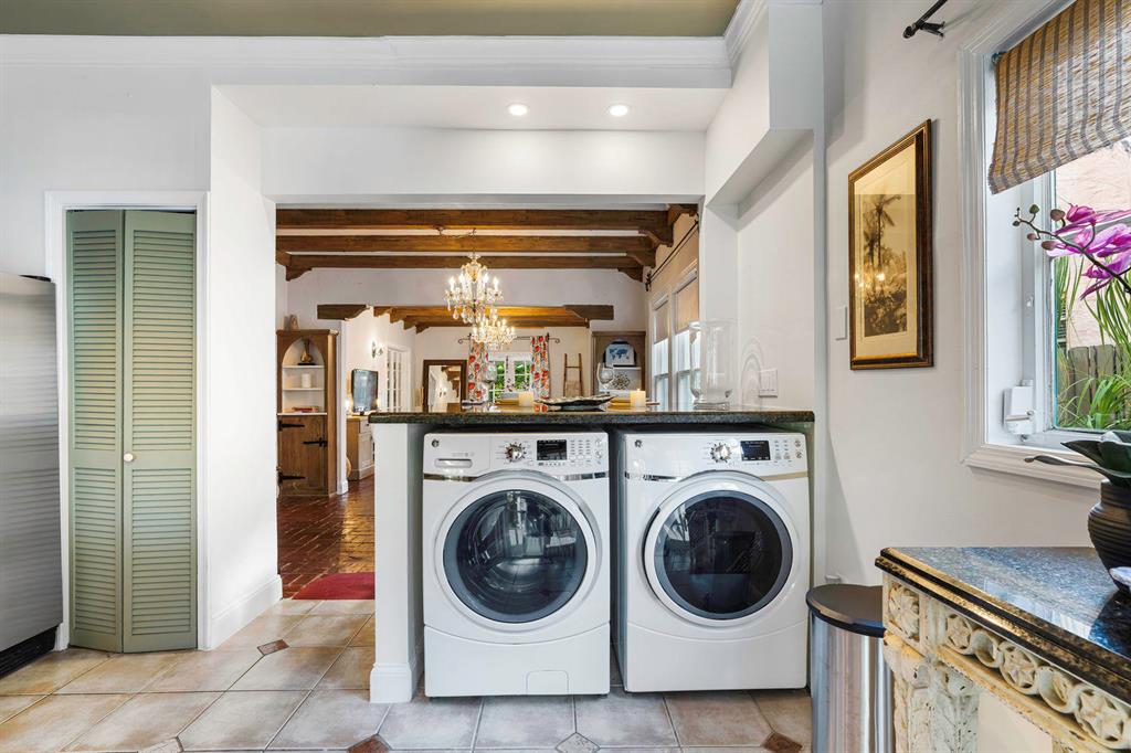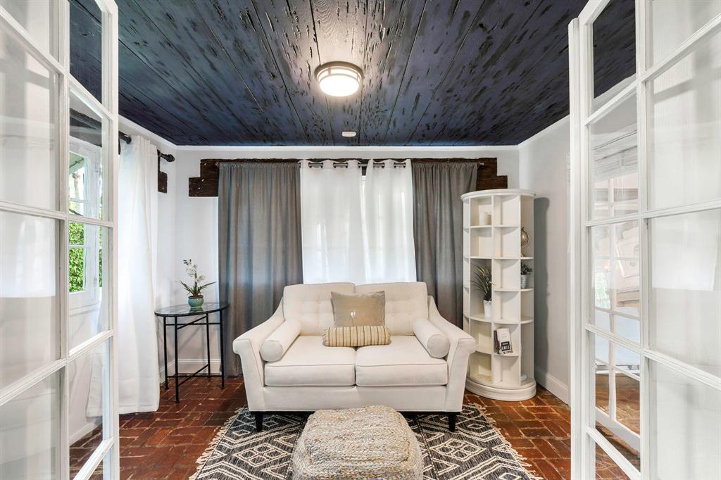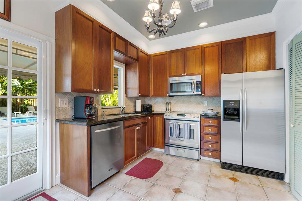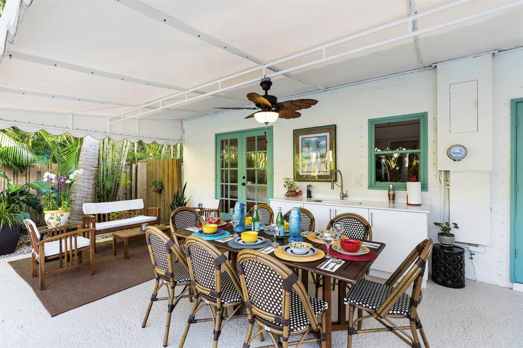 Walk to the intracoastal and Antique Row. Beautifully renovated Mizneresque Spanish Mission with a guest cottage. This home shows like a jewel box, you walk in to the formal living room with Pecky Cypress ceilings and beams, original cast stone fireplace mantel and original brick floors. The main house has 2 bedrooms, the master has a sitting room or office that opens to the living room. The kitchen has been updated and a laundry bar added with a granite top that is also a bar/counter with seats opening to the dining room. The patio is like another family room, with a wet bar, and new covered awning. The pool has been completely re-built w/LED lighting and all new equipment including an electric heater. The guest cottage is a full 1/1 with laundry and a legal rental. Lushly landscaped.