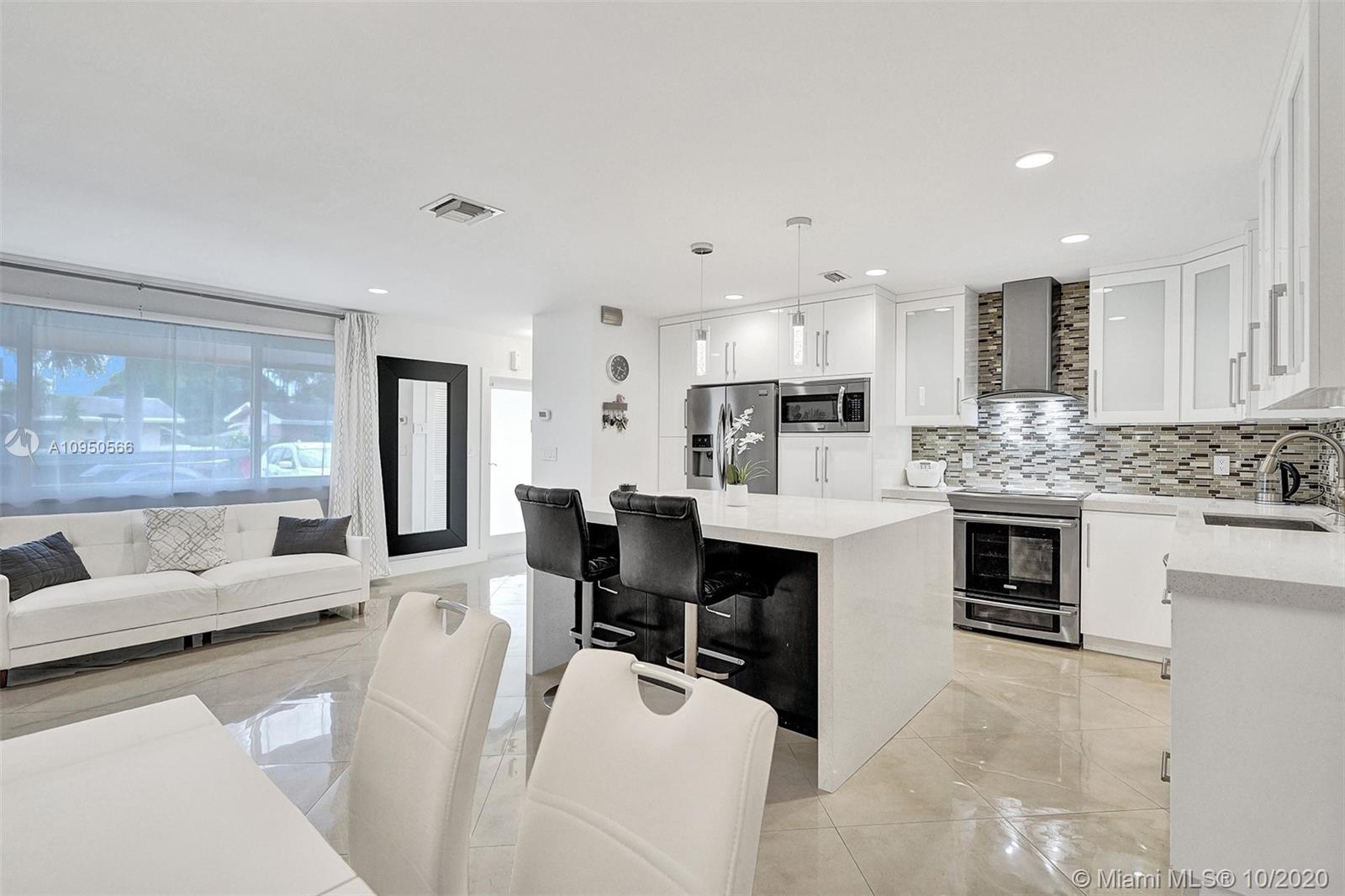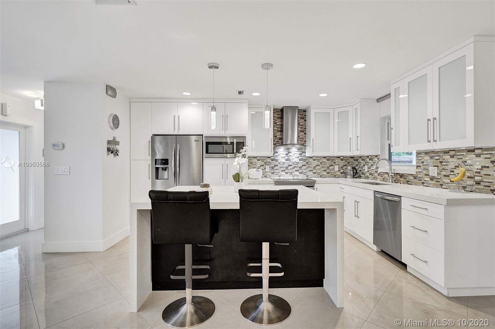 Come fall in love with this Ultra-Modern 3/2 plus built-in Library! This Stunning Home was recently remodeled with over $75,000 in gorgeous custom upgrades! Inside features a bright & spacious floor plan with polished marble floors. The Kitchen is Spectacular w/quartz counter-tops, and a gorgeous Water-Fall Island with an Open Concept layout. The Family Room has a custom built-in wall unit with impressive French doors that open to a Modern Family Library that is perfect for work and play. The Master Bedroom is Dreamy with impressive 36X60 Marble Floors, an Elegant Master Bath, and a walk-in closet. All windows and doors are Impact Resistant, and the house is wired for a back-up generator. A/C is new. The Backyard is oversized with a huge, covered Patio. Large Circular driveway for 6 cars.