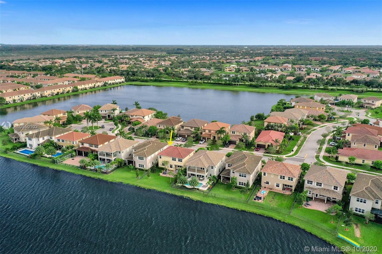 Beautiful 2 story Lake Home at Miralago, a gated community. Move in ready & completely upgraded. This home features a waterfront Premium Lot ($125,000.00), Nest thermostat with doorbell, video, smoke alarm & voice announcement. Gourmet kitchen, GE stainless steel appliances, upgraded cabinets & floors. Hurricane impact throughout, tankless water heater, gas cooktop, refrigerator with Keurig coffee maker, extended patio pavers, retractable patio awning with wind sensor, smooth walls & ceilings without knockdown, new gutters, HOA fee include lawn care front & backyard, gym, heated pool, tennis & basketball courts and playground. Homeowners also have access to Cascata's Clubhouse, which has indoor racket ball & Plus . The Best Resort Style Clubhouse in town. Parkland's top rated A+ Schools.